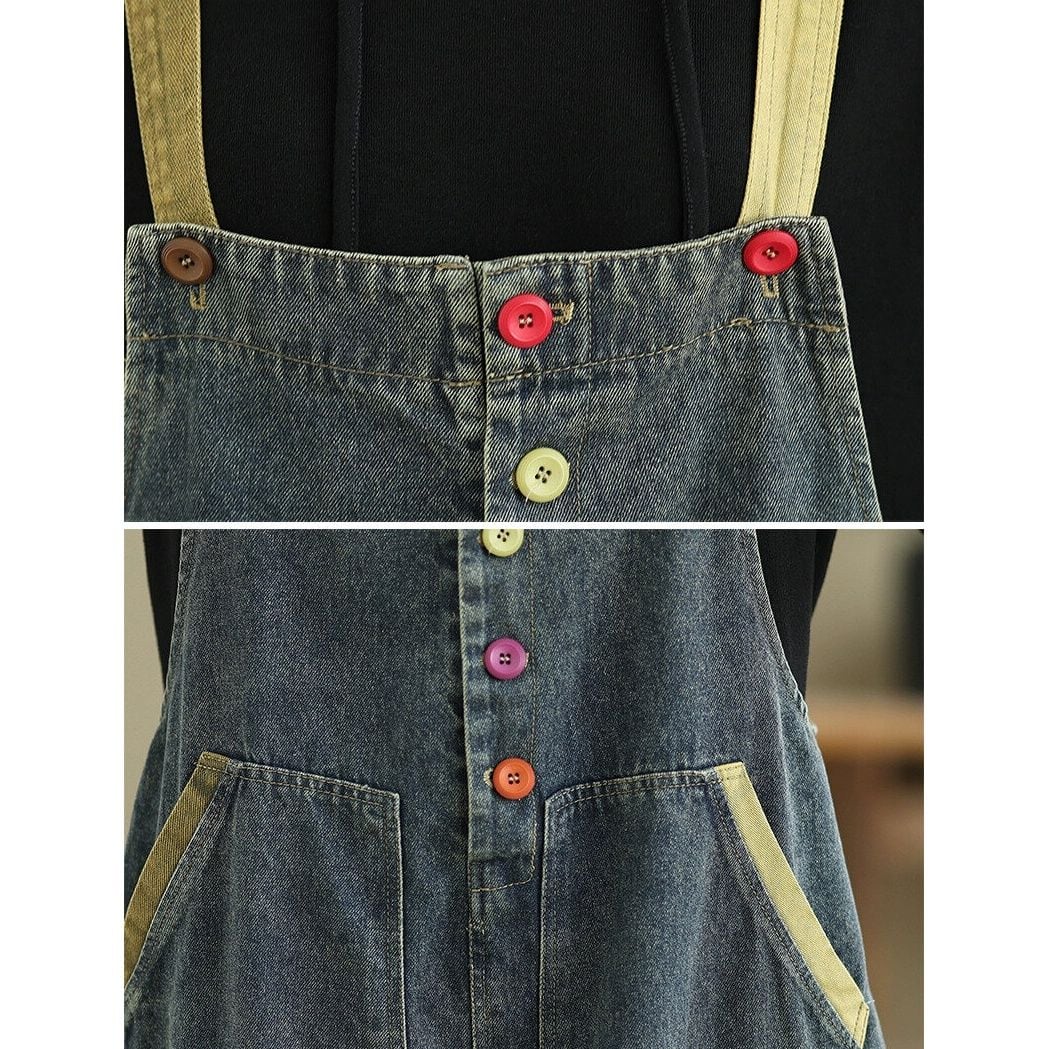 MULTI COLOR BUTTON WIDE LEG DENIM OVERALL 1color M-14503