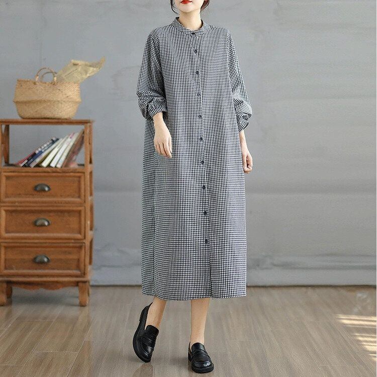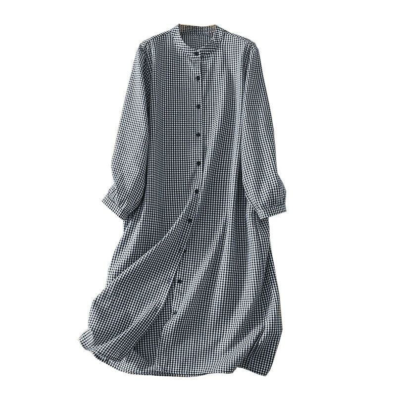 ブラックの細かなギンガムチェック素材でできた、スタンドカラー・長袖・ロング丈のシャツワンピースです。わずかに広がるAラインのシルエットで、シャツジャケットとしても使えるカジュアルアイテムです。 SIZE:※測り方によって2-3cmの差が生じる場合がございます。 【M】バスト90cm 肩幅45cm 袖丈55cm 着丈111cm 【L】バスト96cm 肩幅46cm 袖丈56cm 着丈112cm 【XL】バスト102cm 肩幅47cm 袖丈57cm 着丈113cm 【2XL】バスト108cm 肩幅48cm 袖丈58cm 着丈114cm 【3XL】バスト114cm 肩幅49cm 袖丈59cm 着丈115cm 【4XL】バスト120cm 肩幅50cm 袖丈60cm 着丈116cm COLOR:Design 素材:ポリエステル、その他 モデル着用サイズ:L モデル情報:身長161cm 体重49kg STYLE CALENDAR:春◎ 夏〇 秋◎ 冬〇 お届けについて こちらの商品は海外店舗より直接発送となる為、 ご決済から到着までは、多くの場合【10日-2週間前後】でお届けしております。 ※在庫状況や輸送の混雑により、4週間前後かかる場合がございます。 注意事項 ・商品在庫切れにより注文キャンセルとさせていただく恐れもございますので、予めご了承くださいませ。 ・仕入れ工場を変えることがあるため、記載サイズと若干異なる場合がございます。 ・商品の色味は、お手持ちのスマートフォンの画面によって実物と若干異なる場合がございます。 ・イメージ違いやサイズ交換等、お客さまご都合による交換・返品はご遠慮ください。 送料について 全国一律580円。ただし10,000円以上のご注文で送料無料となります。 お支払い方法について ・クレジットカード決済(VISA/Mastercard/JCB/アメリカン・エクスプレス/ Diners Club) ・コンビニ決済/Pay-easy ※前払いのお支払い方法 ・Pay ID あと払い(コンビニ払い、口座振替) ※あと払いのお支払い方法 ・キャリア決済(d払い/au PAY(auかんたん決済)/ソフトバンク・ワイモバイルまとめて支払い) 管理番号:M-14514