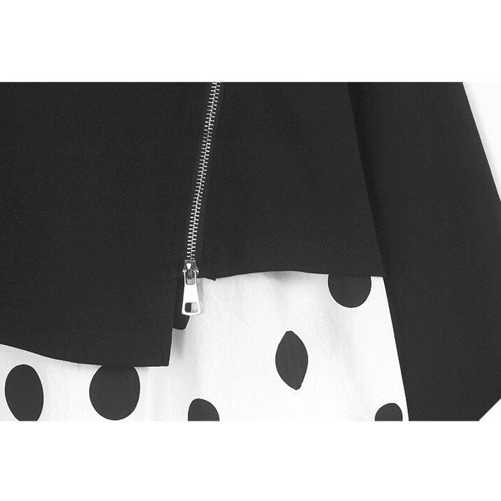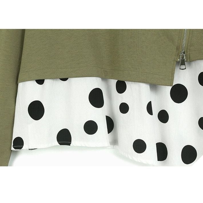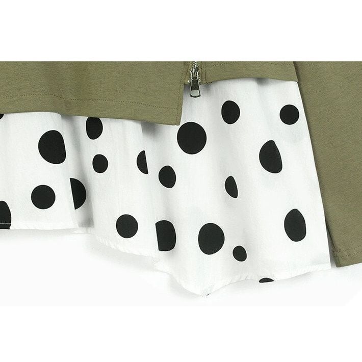 ZIP DETAIL POLKA DOT ASYMMETRIC T SHIRT M-14524