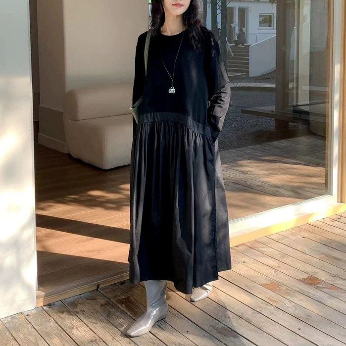 PLEATED LONG SLEEVE RELAXED DRESS M-14529
