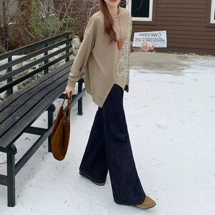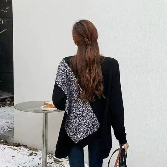 LEOPARD PANEL ASYMMETRIC SWEATSHIRT TOP M-14534