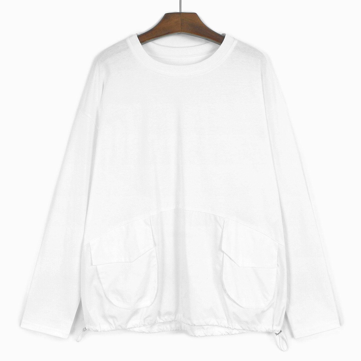 DRAWSTRING POCKET RELAXED LONG SLEEVE T SHIRT M-14546