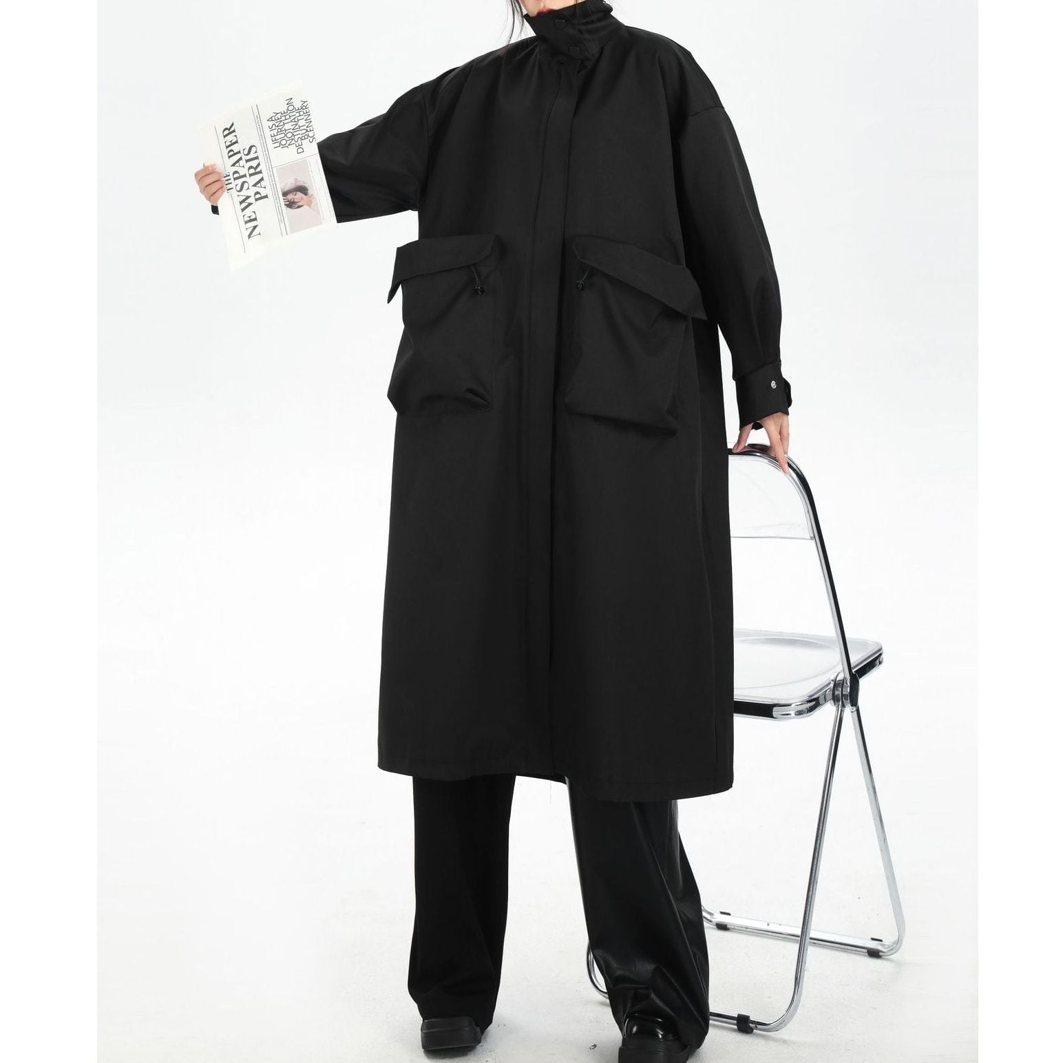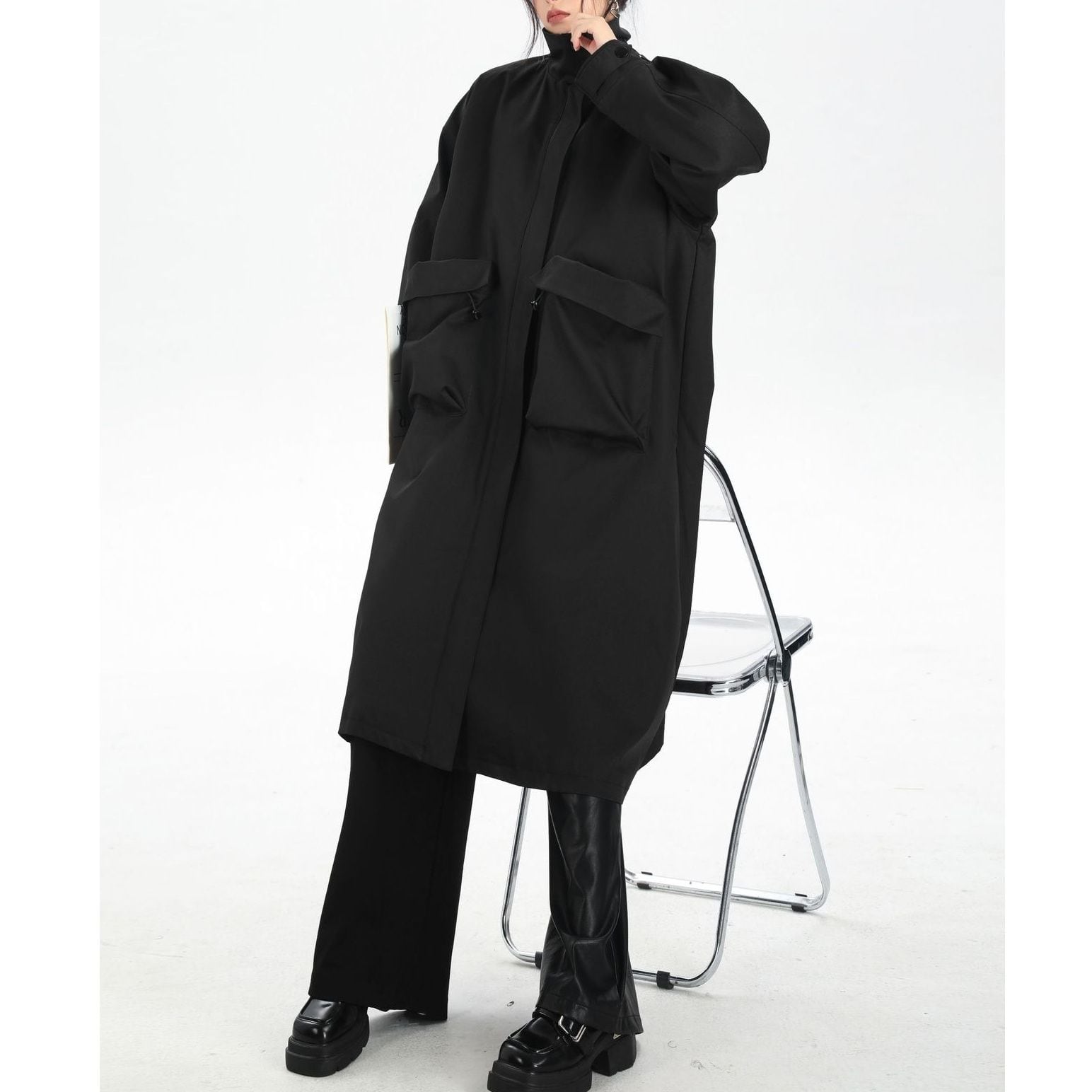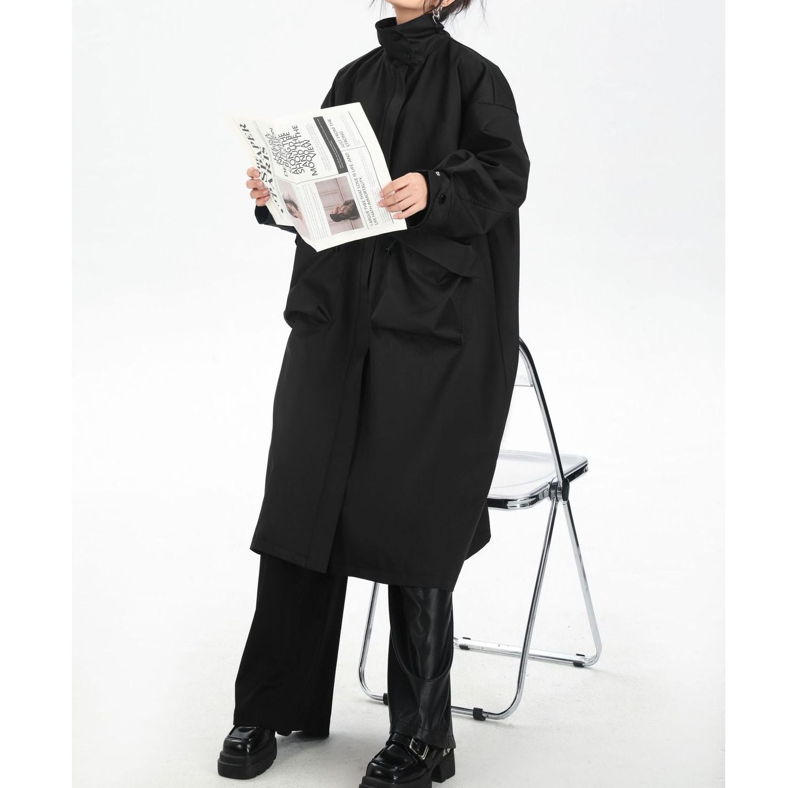 BLACK HIGH COLLAR MIDI FULLZIP CASUAL COAT 1color M-14564