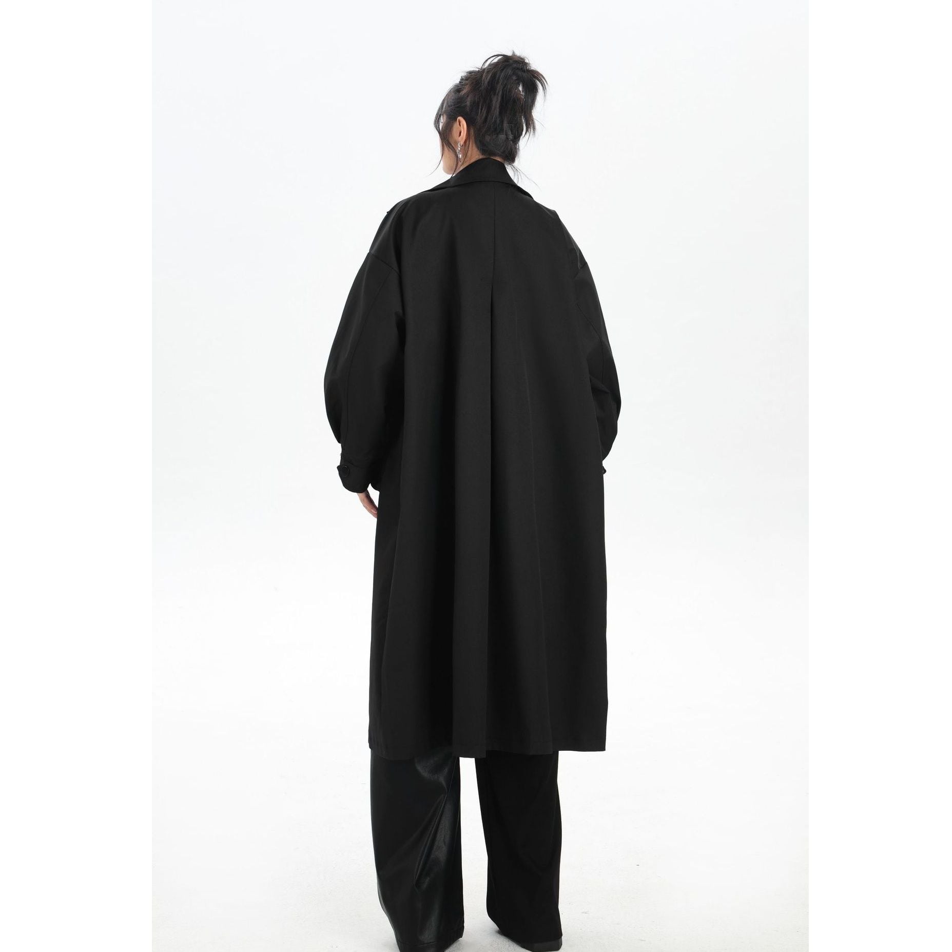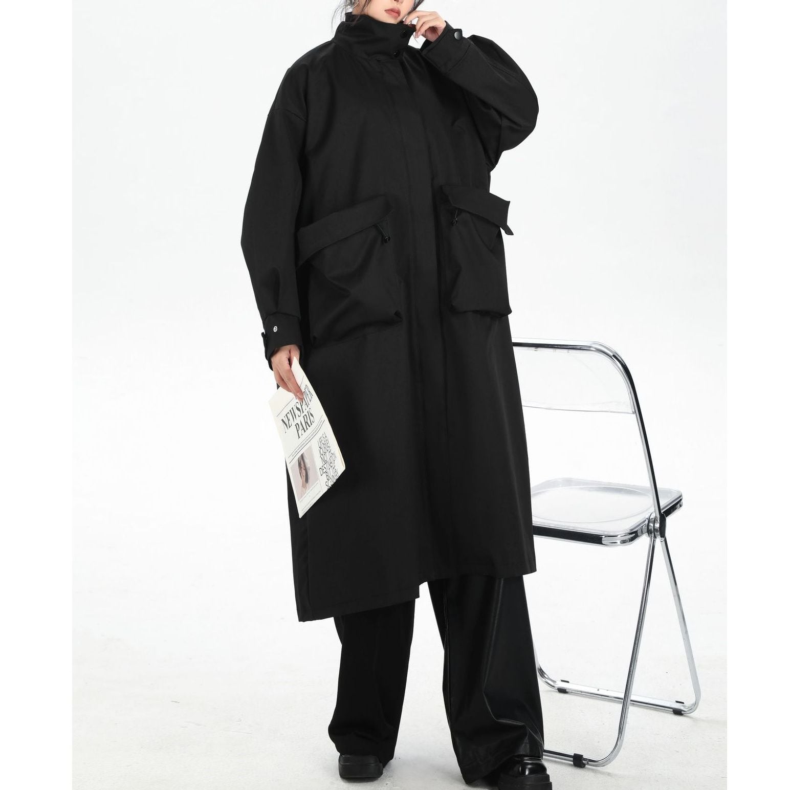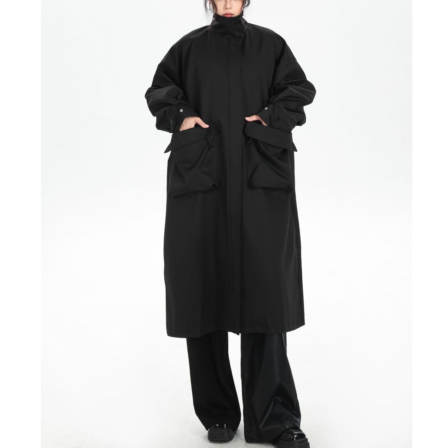 BLACK HIGH COLLAR MIDI FULLZIP CASUAL COAT 1color M-14564