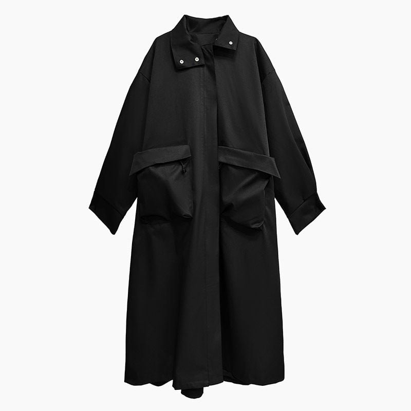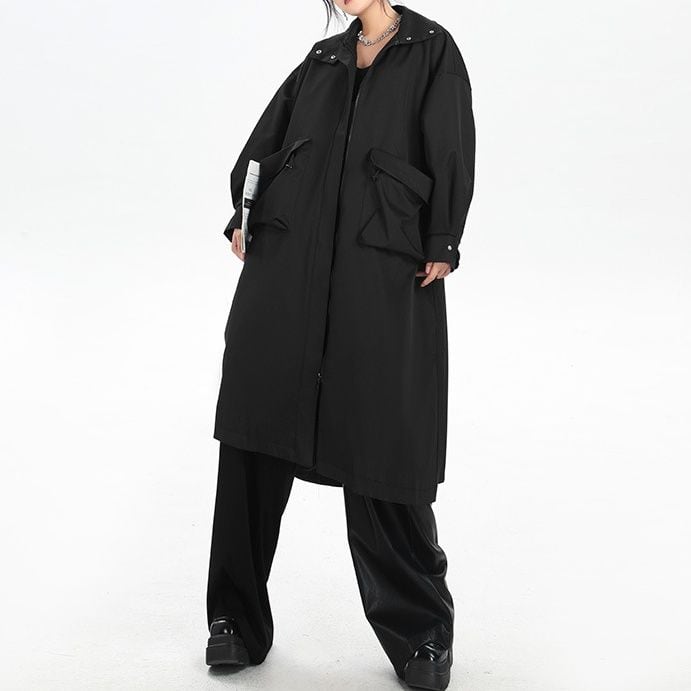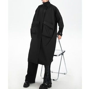 大きな立体ポケットがアクセントになった、ハイネック・長袖・ミドル丈のカジュアルコートです。フルジップとゆったりとしたシルエットに、単色のシンプルなデザインで使いやすいアイテムです。