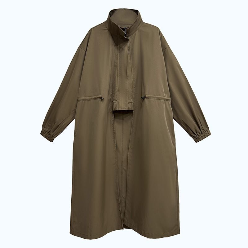 SOLID STAND COLLAR IRREGULAR HEM A-LINE DESIGN COAT 2colors M-14575