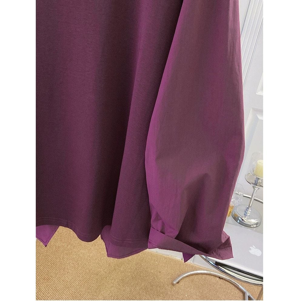 シャツとスウェットのミックスデザインがお洒落な、ラウンドネック・長袖・イレギュラーヘムのプルオーバートップです。バックのシルエットが特徴的な、単色でどんなボトムスとも合わせやすいカジュアルアイテムです。パープルとブラックの2色から選べます。 SIZE:※測り方によって2-3cmの差が生じる場合がございます。 【M】バスト100cm 肩幅42cm 袖丈53cm 着丈67cm 【L】バスト104cm 肩幅43cm 袖丈54cm 着丈68cm 【XL】バスト110cm 肩幅44cm 袖丈55cm 着丈69cm 【2XL】バスト116cm 肩幅45cm 袖丈56cm 着丈70cm 【3XL】バスト122cm 肩幅46cm 袖丈57cm 着丈71cm 【4XL】バスト128cm 肩幅47cm 袖丈58cm 着丈72cm COLOR:Red、Black 素材:ポリエステル、その他 STYLE CALENDAR:春◎ 夏〇 秋◎ 冬〇 お届けについて こちらの商品は海外店舗より直接発送となる為、 ご決済から到着までは、多くの場合【10日-2週間前後】でお届けしております。 ※在庫状況や輸送の混雑により、4週間前後かかる場合がございます。 注意事項 ・商品在庫切れにより注文キャンセルとさせていただく恐れもございますので、予めご了承くださいませ。 ・仕入れ工場を変えることがあるため、記載サイズと若干異なる場合がございます。 ・商品の色味は、お手持ちのスマートフォンの画面によって実物と若干異なる場合がございます。 ・イメージ違いやサイズ交換等、お客さまご都合による交換・返品はご遠慮ください。 送料について 全国一律580円。ただし10,000円以上のご注文で送料無料となります。 お支払い方法について ・クレジットカード決済(VISA/Mastercard/JCB/アメリカン・エクスプレス/ Diners Club) ・コンビニ決済/Pay-easy ※前払いのお支払い方法 ・Pay ID あと払い(コンビニ払い、口座振替) ※あと払いのお支払い方法 ・キャリア決済(d払い/au PAY(auかんたん決済)/ソフトバンク・ワイモバイルまとめて支払い) 管理番号:M-14584