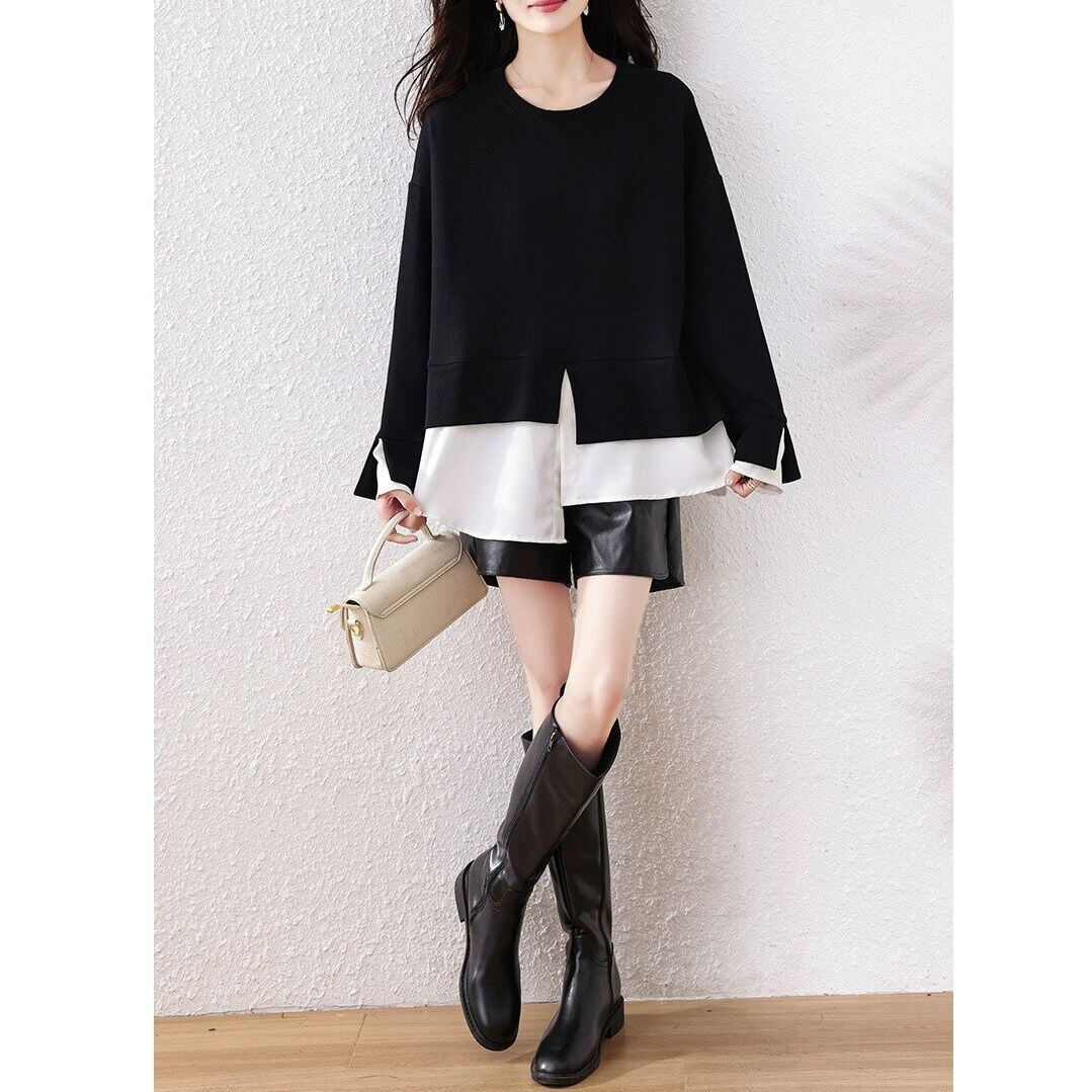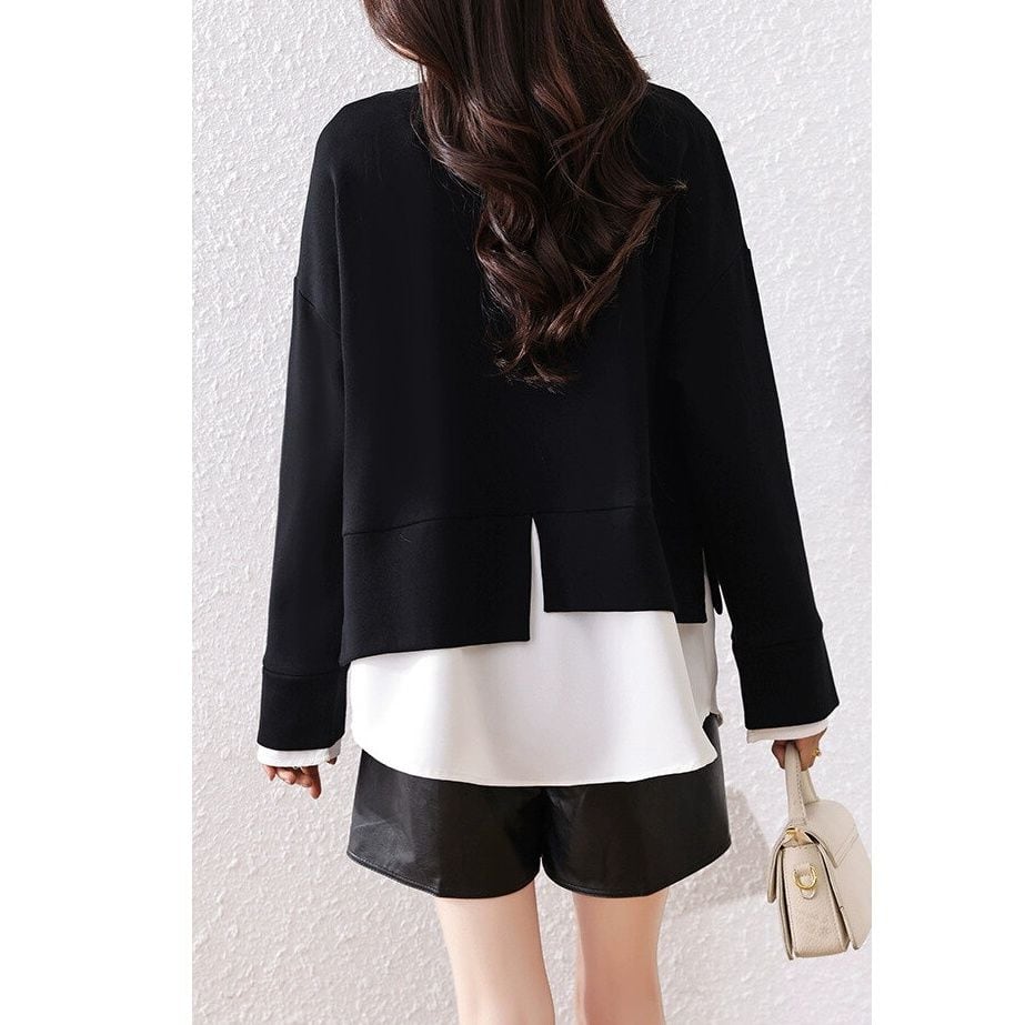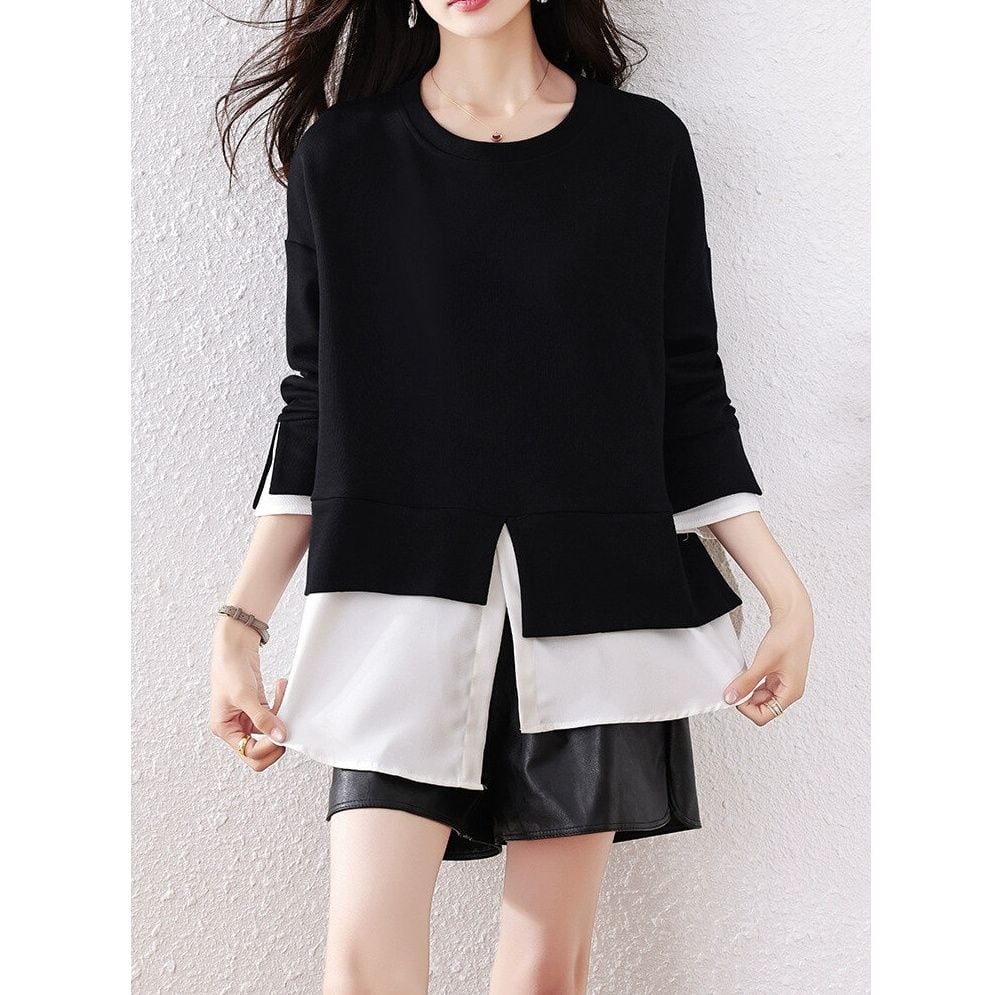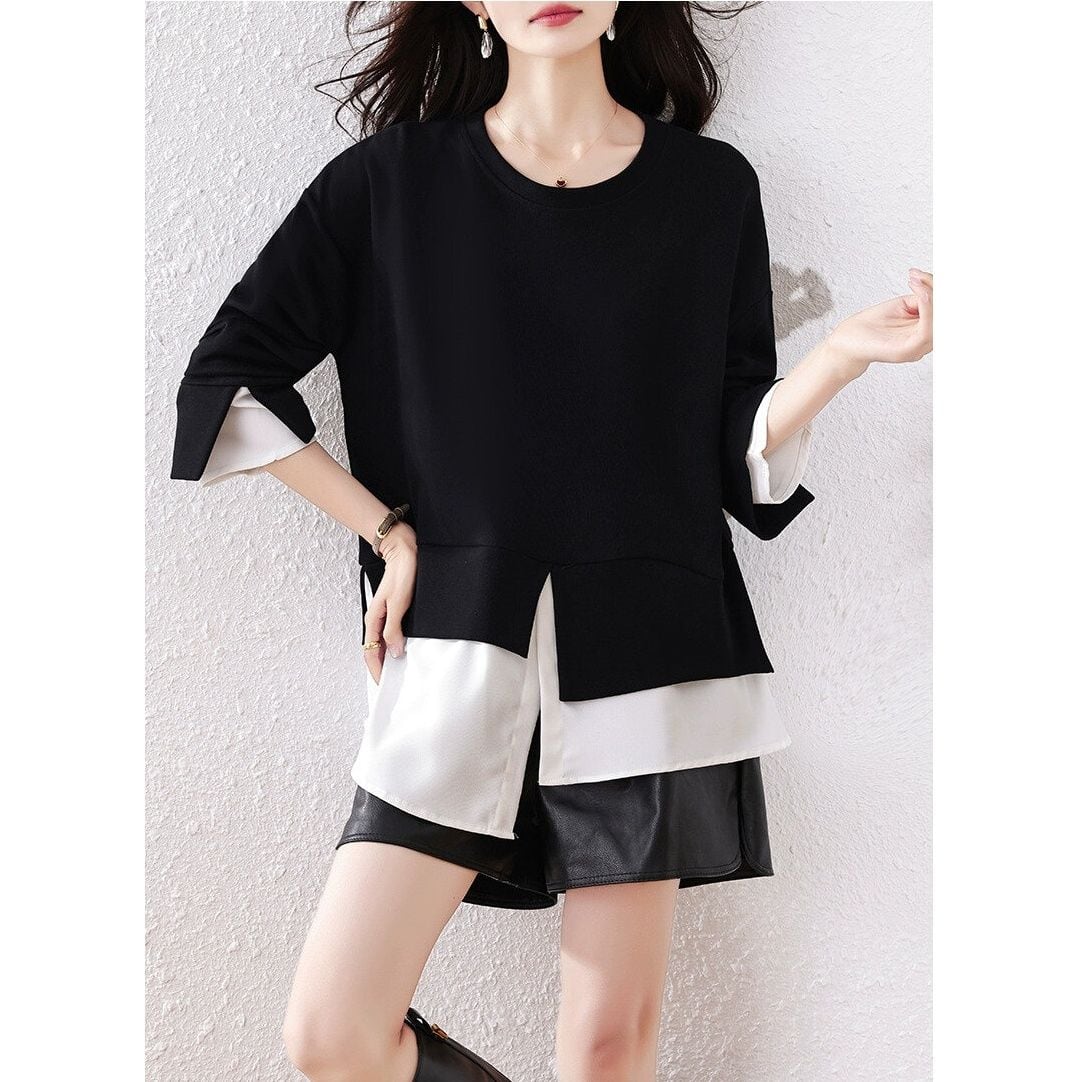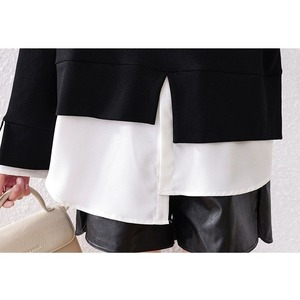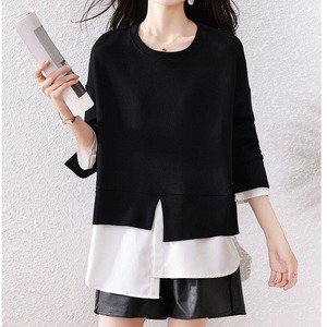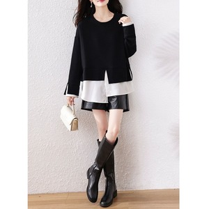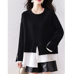 フェイクツーピースデザインがお洒落な、ラウンドネック・長袖・イレギュラーヘムのプルオーバートップです。白と黒のコントラストでスリットを強調した、モードな印象のアイテムです。 SIZE:※測り方によって2-3cmの差が生じる場合がございます。 【L】バスト108cm 肩幅40cm 袖丈55cm 着丈66cm 【XL】バスト112cm 肩幅41cm 袖丈56cm 着丈67cm 【2XL】バスト116cm 肩幅42cm 袖丈57cm 着丈68cm 【3XL】バスト120cm 肩幅43cm 袖丈58cm 着丈69cm 【4XL】バスト124cm 肩幅44cm 袖丈59cm 着丈70cm 【5XL】バスト128cm 肩幅45cm 袖丈60cm 着丈71cm COLOR:Black 素材:ポリエステル100% モデル着用サイズ:L モデル情報:身長161cm 体重49kg STYLE CALENDAR:春〇 夏〇 秋◎ 冬〇 お届けについて こちらの商品は海外店舗より直接発送となる為、 ご決済から到着までは、多くの場合【10日-2週間前後】でお届けしております。 ※在庫状況や輸送の混雑により、4週間前後かかる場合がございます。 注意事項 ・商品在庫切れにより注文キャンセルとさせていただく恐れもございますので、予めご了承くださいませ。 ・仕入れ工場を変えることがあるため、記載サイズと若干異なる場合がございます。 ・商品の色味は、お手持ちのスマートフォンの画面によって実物と若干異なる場合がございます。 ・イメージ違いやサイズ交換等、お客さまご都合による交換・返品はご遠慮ください。 送料について 全国一律580円。ただし10,000円以上のご注文で送料無料となります。 お支払い方法について ・クレジットカード決済(VISA/Mastercard/JCB/アメリカン・エクスプレス/ Diners Club) ・コンビニ決済/Pay-easy ※前払いのお支払い方法 ・Pay ID あと払い(コンビニ払い、口座振替) ※あと払いのお支払い方法 ・キャリア決済(d払い/au PAY(auかんたん決済)/ソフトバンク・ワイモバイルまとめて支払い) 管理番号:M-14588