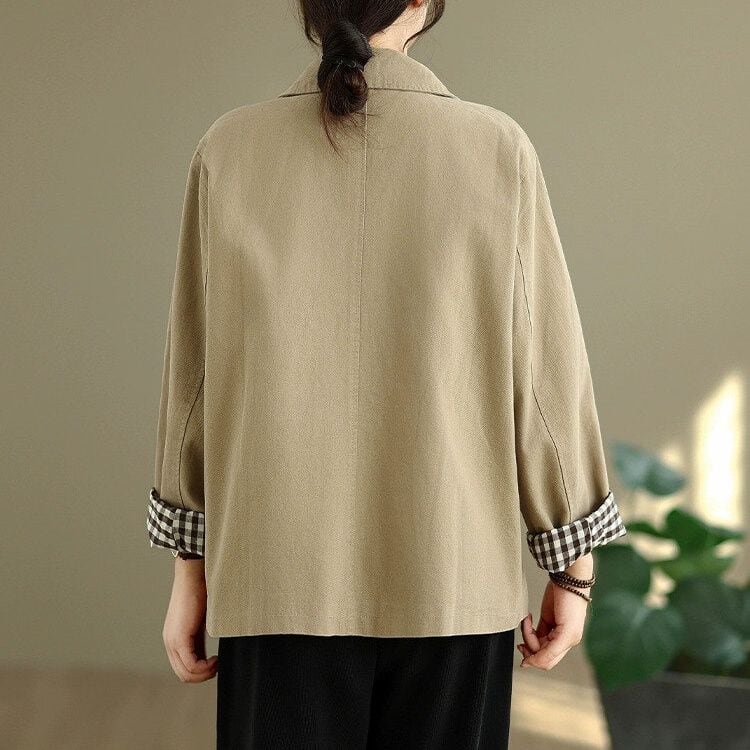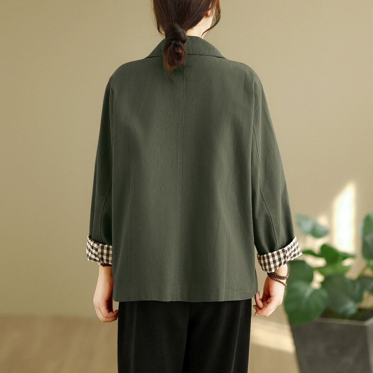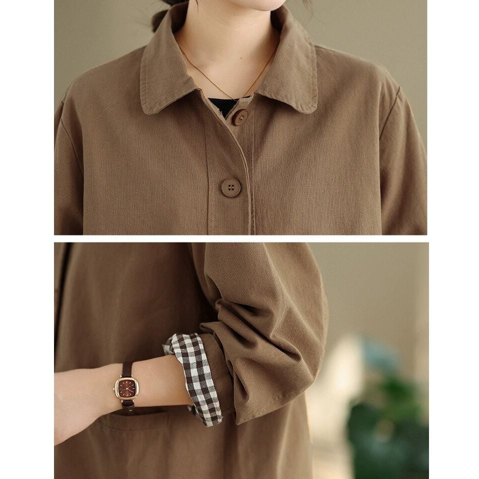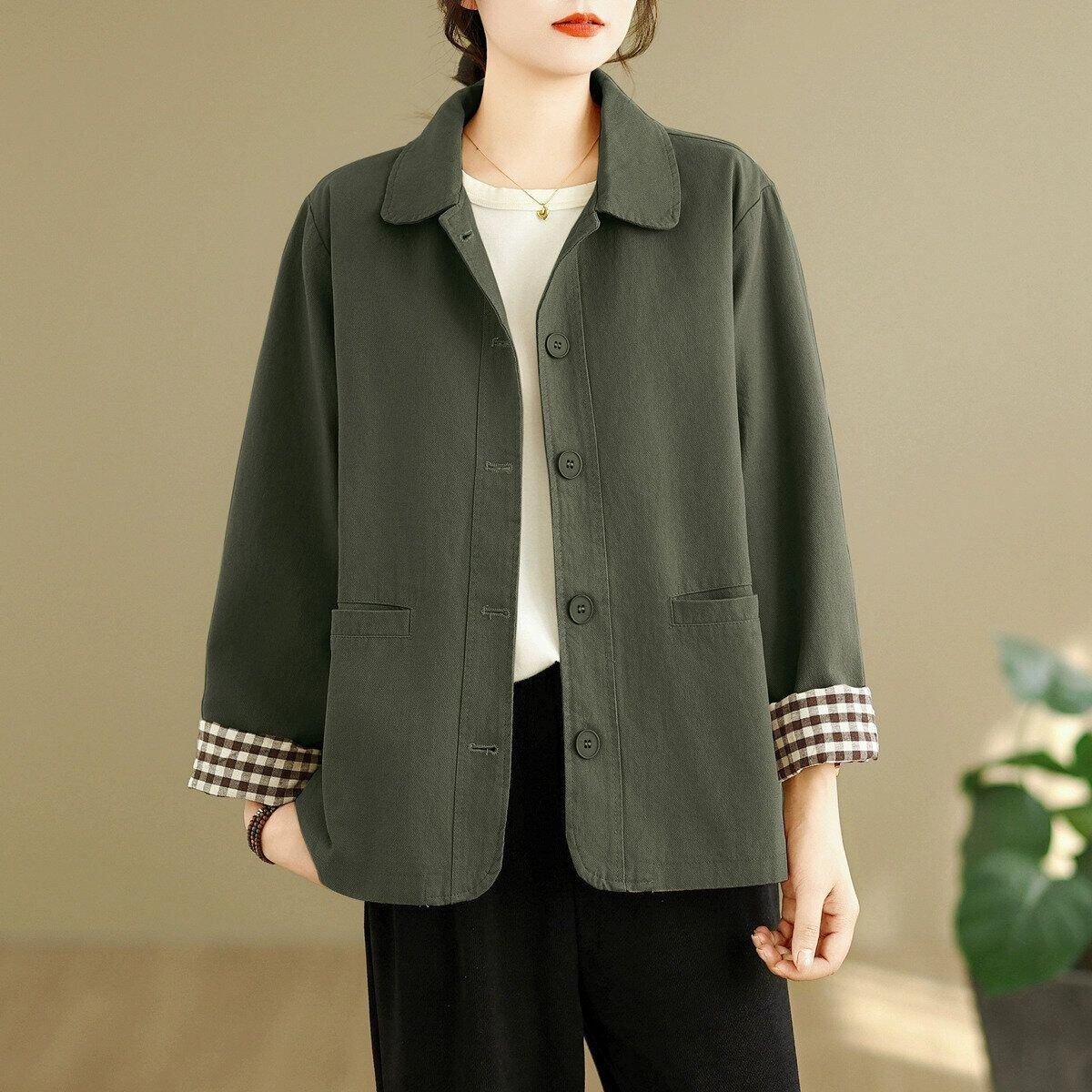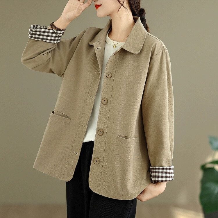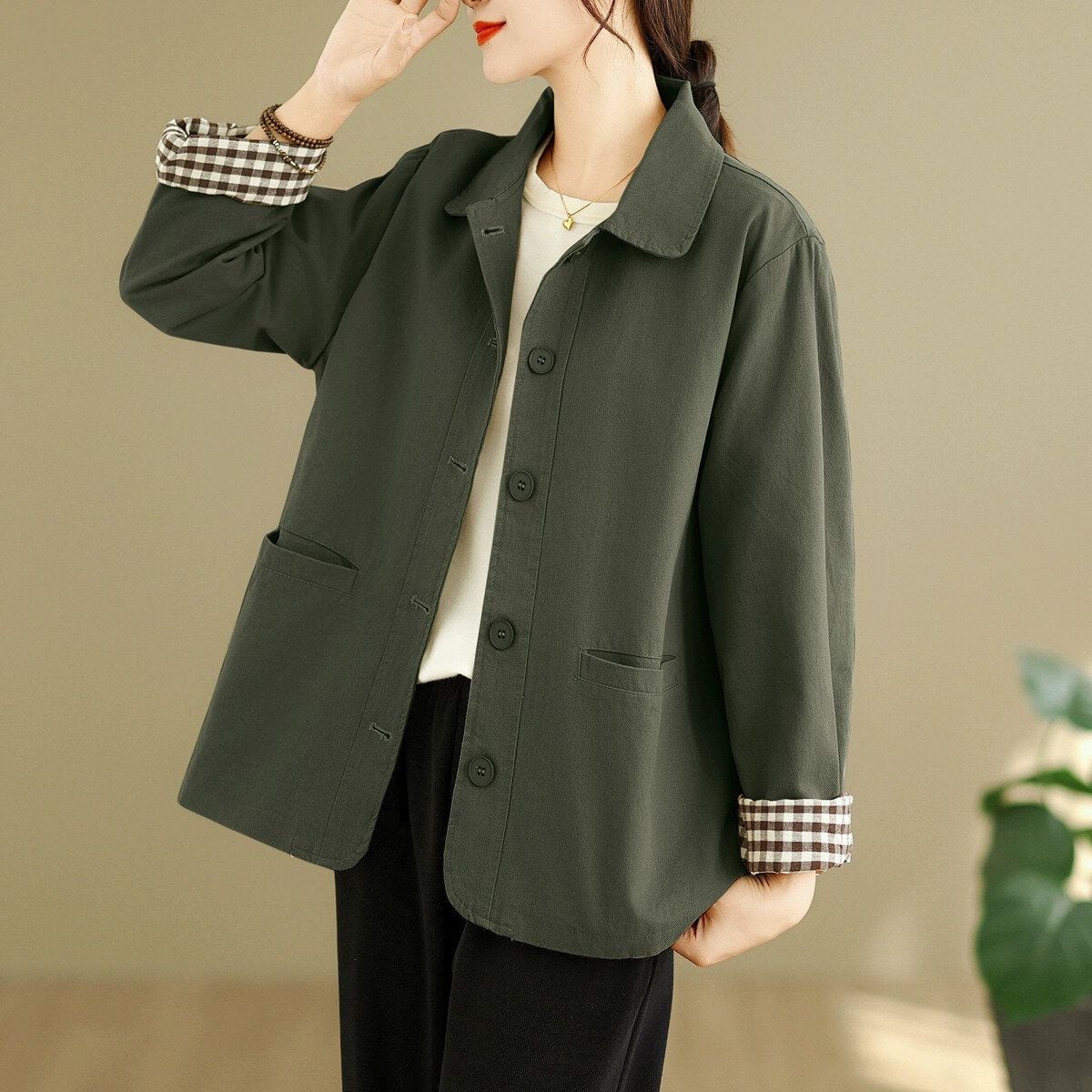 袖口をロールアップしたときにギンガムチェックのライニングがキュートな、ラウンドカラー・長袖・ショート丈のカジュアルジャケットです。単色でボタンダウンのシンプルなデザインが使いやすい、シルエットのきれいなアイテムです。色は4色から選べます。 SIZE:※測り方によって2-3cmの差が生じる場合がございます。 【L】バスト118cm 肩幅47cm 袖丈56cm 着丈65cm 【XL】バスト122cm 肩幅48cm 袖丈57cm 着丈66cm 【2XL】バスト126cm 肩幅49cm 袖丈58cm 着丈67cm COLOR:Army Green、Khaki、Brown、Ochre 素材:ポリエステル、その他 モデル着用サイズ:L モデル情報:身長161cm 体重49kg STYLE CALENDAR:春◎ 夏〇 秋◎ 冬〇 お届けについて こちらの商品は海外店舗より直接発送となる為、 ご決済から到着までは、多くの場合【10日-2週間前後】でお届けしております。 ※在庫状況や輸送の混雑により、4週間前後かかる場合がございます。 注意事項 ・商品在庫切れにより注文キャンセルとさせていただく恐れもございますので、予めご了承くださいませ。 ・仕入れ工場を変えることがあるため、記載サイズと若干異なる場合がございます。 ・商品の色味は、お手持ちのスマートフォンの画面によって実物と若干異なる場合がございます。 ・イメージ違いやサイズ交換等、お客さまご都合による交換・返品はご遠慮ください。 送料について 全国一律580円。ただし10,000円以上のご注文で送料無料となります。 お支払い方法について ・クレジットカード決済(VISA/Mastercard/JCB/アメリカン・エクスプレス/ Diners Club) ・コンビニ決済/Pay-easy ※前払いのお支払い方法 ・Pay ID あと払い(コンビニ払い、口座振替) ※あと払いのお支払い方法 ・キャリア決済(d払い/au PAY(auかんたん決済)/ソフトバンク・ワイモバイルまとめて支払い) 管理番号:M-14590