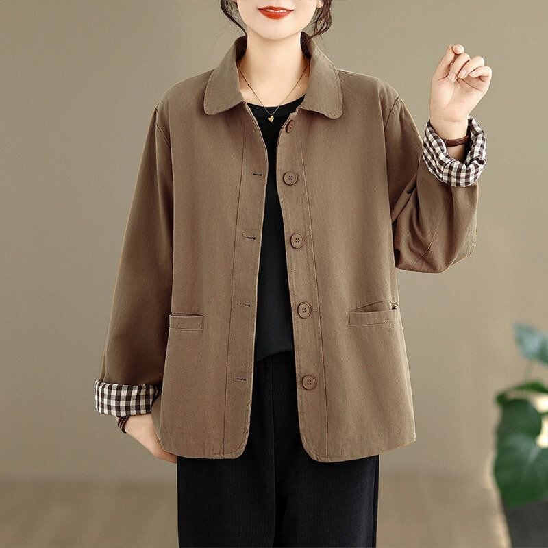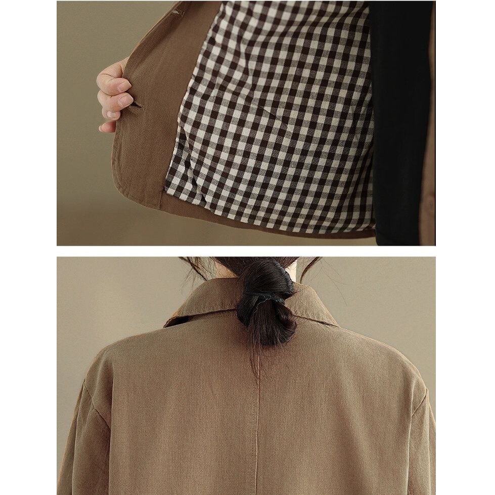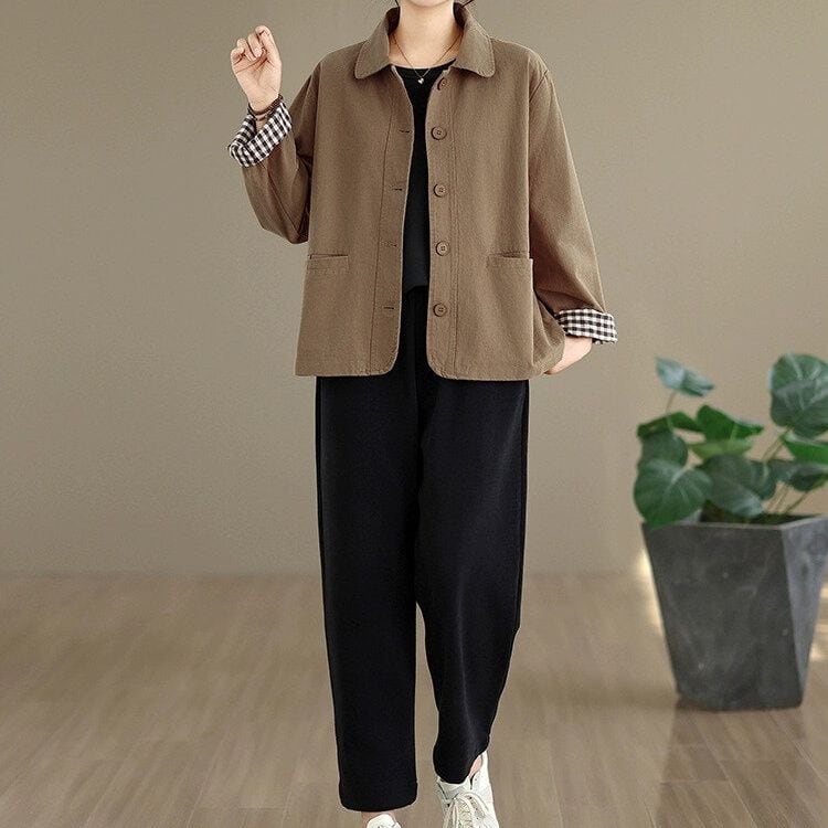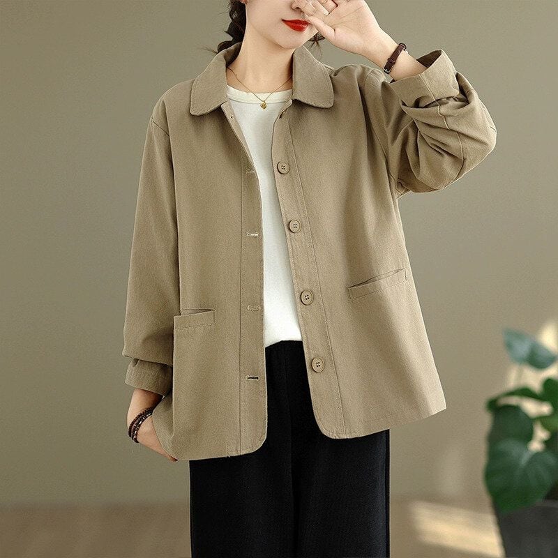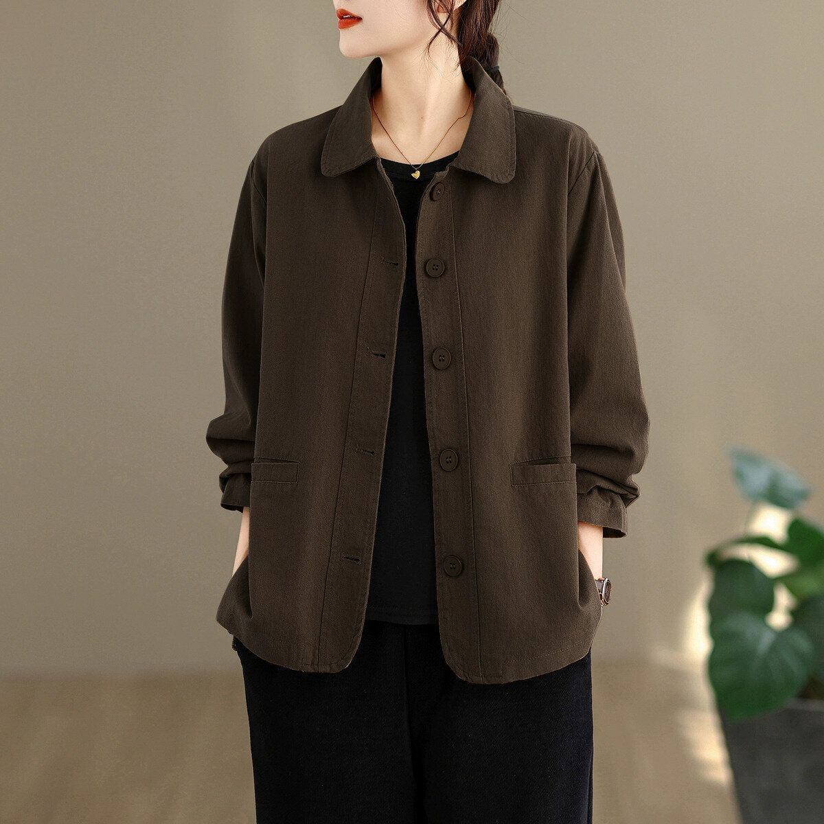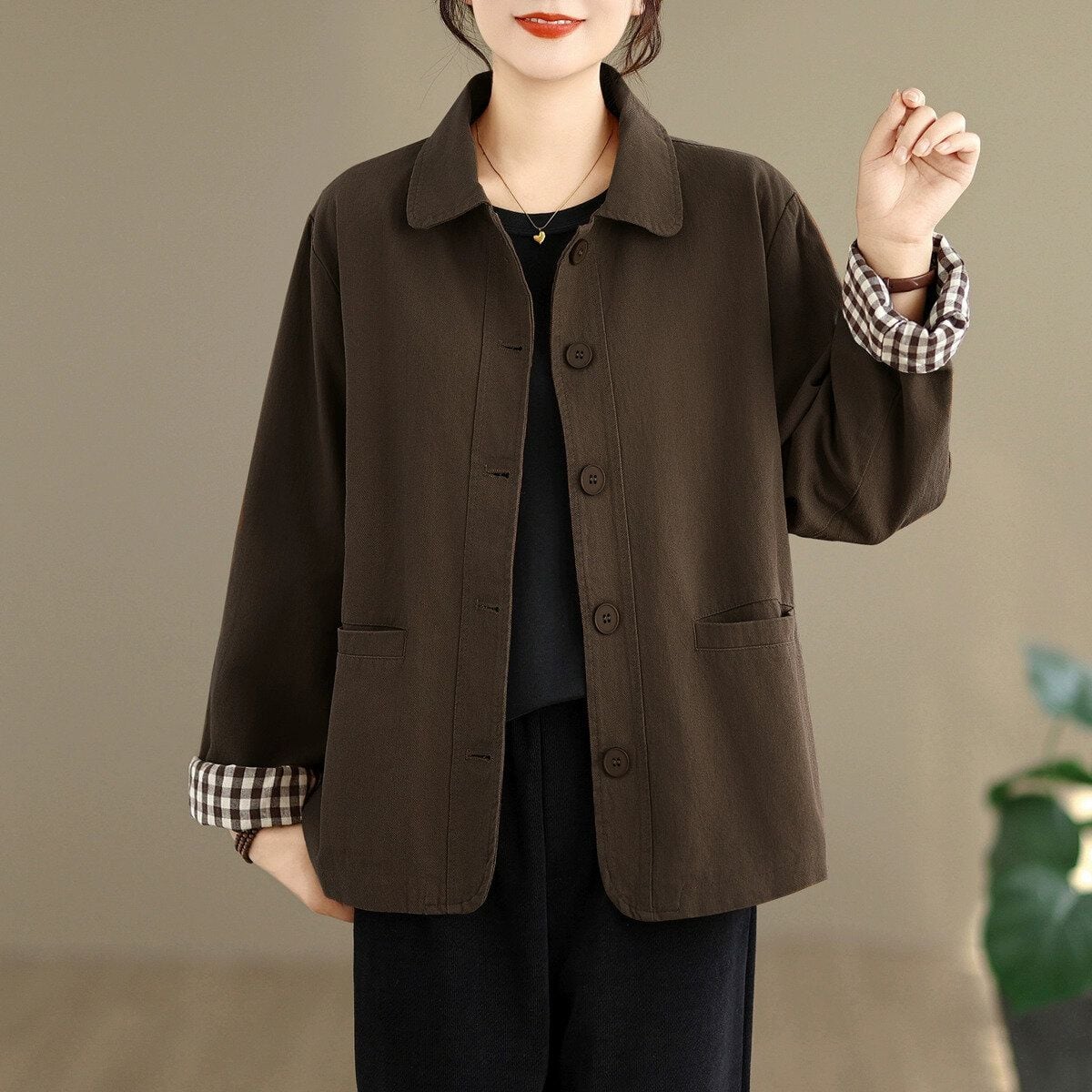袖口をロールアップしたときにギンガムチェックのライニングがキュートな、ラウンドカラー・長袖・ショート丈のカジュアルジャケットです。単色でボタンダウンのシンプルなデザインが使いやすい、シルエットのきれいなアイテムです。色は4色から選べます。 SIZE:※測り方によって2-3cmの差が生じる場合がございます。 【L】バスト118cm 肩幅47cm 袖丈56cm 着丈65cm 【XL】バスト122cm 肩幅48cm 袖丈57cm 着丈66cm 【2XL】バスト126cm 肩幅49cm 袖丈58cm 着丈67cm COLOR:Army Green、Khaki、Brown、Ochre 素材:ポリエステル、その他 モデル着用サイズ:L モデル情報:身長161cm 体重49kg STYLE CALENDAR:春◎ 夏〇 秋◎ 冬〇 お届けについて こちらの商品は海外店舗より直接発送となる為、 ご決済から到着までは、多くの場合【10日-2週間前後】でお届けしております。 ※在庫状況や輸送の混雑により、4週間前後かかる場合がございます。 注意事項 ・商品在庫切れにより注文キャンセルとさせていただく恐れもございますので、予めご了承くださいませ。 ・仕入れ工場を変えることがあるため、記載サイズと若干異なる場合がございます。 ・商品の色味は、お手持ちのスマートフォンの画面によって実物と若干異なる場合がございます。 ・イメージ違いやサイズ交換等、お客さまご都合による交換・返品はご遠慮ください。 送料について 全国一律580円。ただし10,000円以上のご注文で送料無料となります。 お支払い方法について ・クレジットカード決済(VISA/Mastercard/JCB/アメリカン・エクスプレス/ Diners Club) ・コンビニ決済/Pay-easy ※前払いのお支払い方法 ・Pay ID あと払い(コンビニ払い、口座振替) ※あと払いのお支払い方法 ・キャリア決済(d払い/au PAY(auかんたん決済)/ソフトバンク・ワイモバイルまとめて支払い) 管理番号:M-14590
