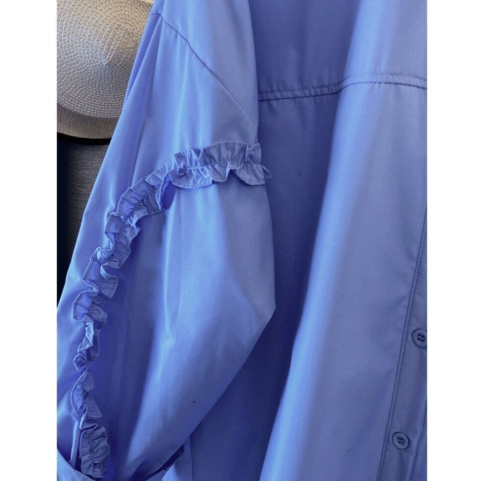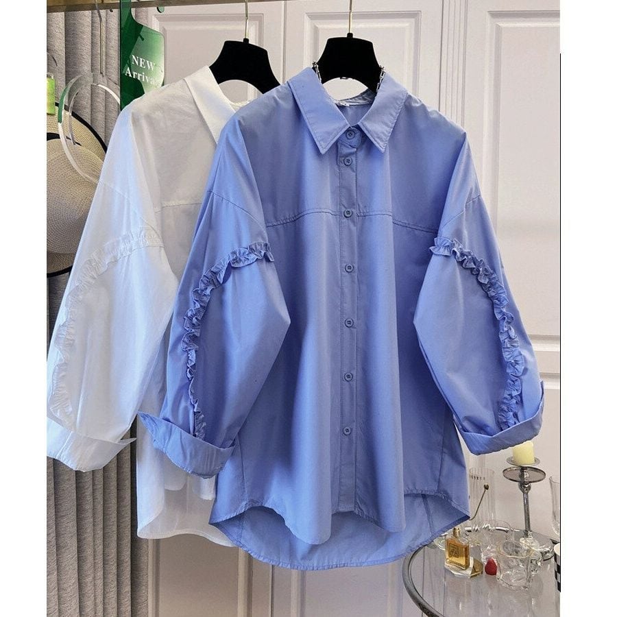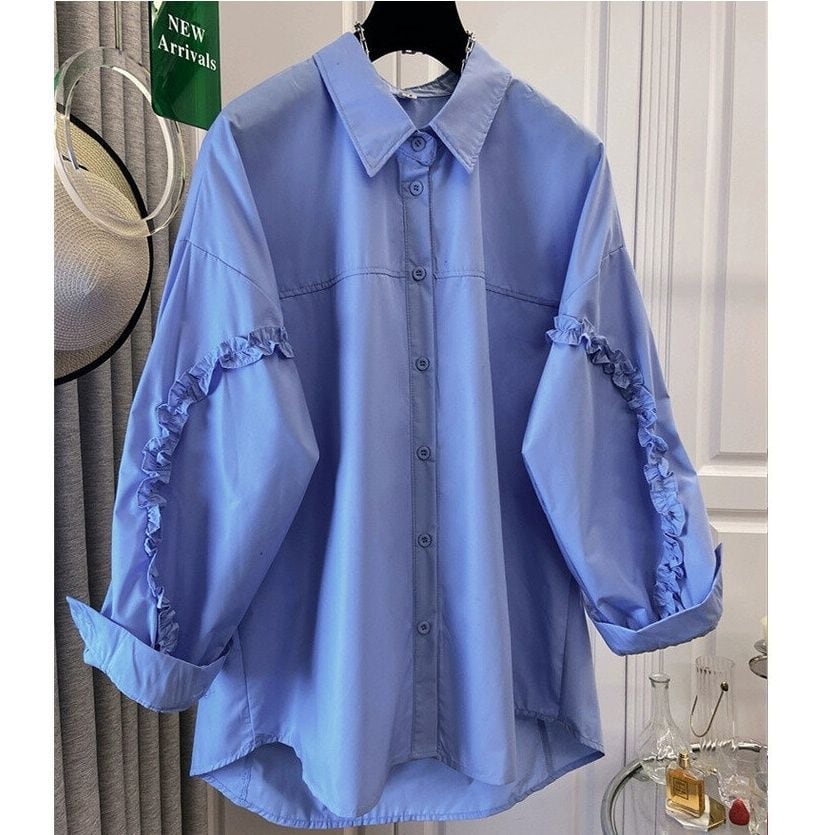 フリルリボンのラインが施された袖がキュートな、ポロ襟・長袖・ラウンドカットのデザインシャツです。ゆったりとしたシルエットと単色で、何にでも合わせやすいカジュアルなアイテムです。色はブルーとホワイトの2色から選べます。 SIZE:※測り方によって2-3cmの差が生じる場合がございます。 【M】バスト102cm 肩幅55cm 袖丈46cm 着丈67cm 【L】バスト106cm 肩幅56cm 袖丈47cm 着丈68cm 【XL】バスト112cm 肩幅57cm 袖丈48cm 着丈69cm 【2XL】バスト118cm 肩幅58cm 袖丈49cm 着丈70cm 【3XL】バスト124cm 肩幅59cm 袖丈50cm 着丈71cm 【4XL】バスト130cm 肩幅60cm 袖丈51cm 着丈72cm COLOR:Blue、White 素材:ポリエステル、その他 STYLE CALENDAR:春〇 夏〇 秋◎ 冬〇 お届けについて こちらの商品は海外店舗より直接発送となる為、 ご決済から到着までは、多くの場合【10日-2週間前後】でお届けしております。 ※在庫状況や輸送の混雑により、4週間前後かかる場合がございます。 注意事項 ・商品在庫切れにより注文キャンセルとさせていただく恐れもございますので、予めご了承くださいませ。 ・仕入れ工場を変えることがあるため、記載サイズと若干異なる場合がございます。 ・商品の色味は、お手持ちのスマートフォンの画面によって実物と若干異なる場合がございます。 ・イメージ違いやサイズ交換等、お客さまご都合による交換・返品はご遠慮ください。 送料について 全国一律580円。ただし10,000円以上のご注文で送料無料となります。 お支払い方法について ・クレジットカード決済(VISA/Mastercard/JCB/アメリカン・エクスプレス/ Diners Club) ・コンビニ決済/Pay-easy ※前払いのお支払い方法 ・Pay ID あと払い(コンビニ払い、口座振替) ※あと払いのお支払い方法 ・キャリア決済(d払い/au PAY(auかんたん決済)/ソフトバンク・ワイモバイルまとめて支払い) 管理番号:M-14592