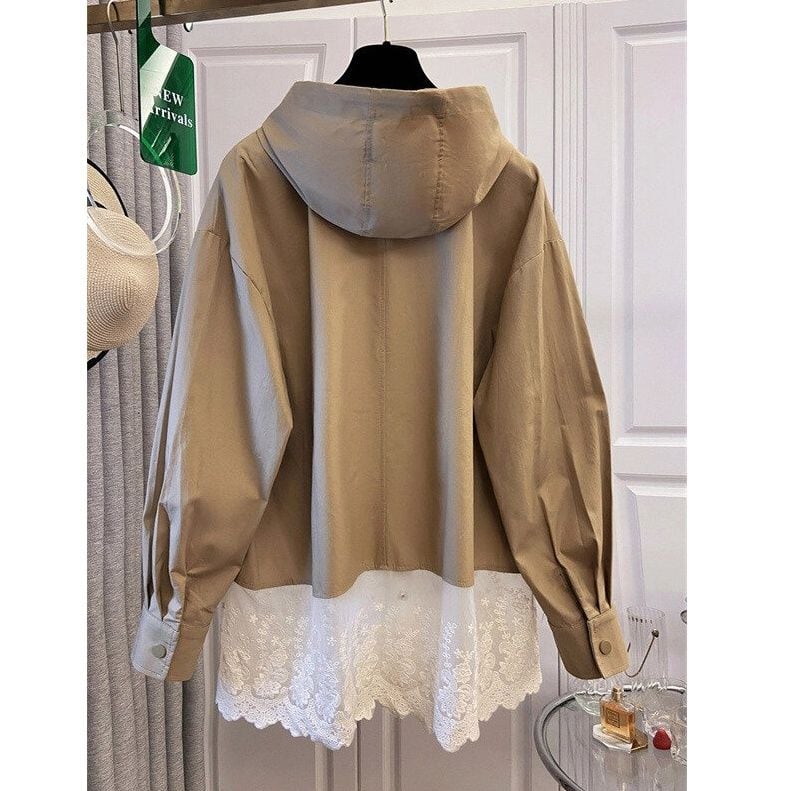 裾のレースがキュートなコントラストデザインが目を惹く、フード付き・長袖・シャツジャケットです。ゆったりとしたシルエットとシンプルカラーで合わせやすい、ガーリーさがプラスされたカジュアルアイテムです。ホワイトとカーキの2色から選べます。 SIZE:※測り方によって2-3cmの差が生じる場合がございます。 【M】バスト104cm 肩幅53cm 袖丈51cm 着丈71cm 【L】バスト108cm 肩幅54cm 袖丈52cm 着丈72cm 【XL】バスト114cm 肩幅55cm 袖丈53cm 着丈73cm 【2XL】バスト118cm 肩幅56cm 袖丈54cm 着丈74cm 【3XL】バスト124cm 肩幅57cm 袖丈55cm 着丈75cm 【4XL】バスト128cm 肩幅58cm 袖丈56cm 着丈76cm COLOR:Khaki、White 素材:ポリエステル、その他 STYLE CALENDAR:春〇 夏〇 秋◎ 冬〇 お届けについて こちらの商品は海外店舗より直接発送となる為、 ご決済から到着までは、多くの場合【10日-2週間前後】でお届けしております。 ※在庫状況や輸送の混雑により、4週間前後かかる場合がございます。 注意事項 ・商品在庫切れにより注文キャンセルとさせていただく恐れもございますので、予めご了承くださいませ。 ・仕入れ工場を変えることがあるため、記載サイズと若干異なる場合がございます。 ・商品の色味は、お手持ちのスマートフォンの画面によって実物と若干異なる場合がございます。 ・イメージ違いやサイズ交換等、お客さまご都合による交換・返品はご遠慮ください。 送料について 全国一律580円。ただし10,000円以上のご注文で送料無料となります。 お支払い方法について ・クレジットカード決済(VISA/Mastercard/JCB/アメリカン・エクスプレス/ Diners Club) ・コンビニ決済/Pay-easy ※前払いのお支払い方法 ・Pay ID あと払い(コンビニ払い、口座振替) ※あと払いのお支払い方法 ・キャリア決済(d払い/au PAY(auかんたん決済)/ソフトバンク・ワイモバイルまとめて支払い) 管理番号:M-14606