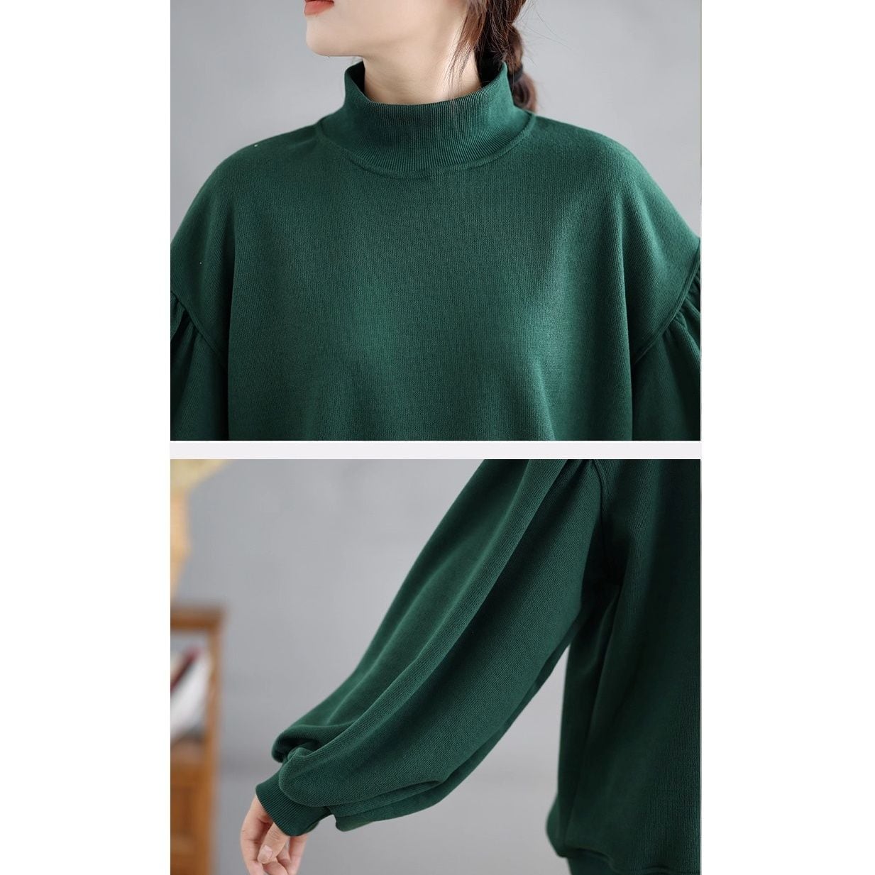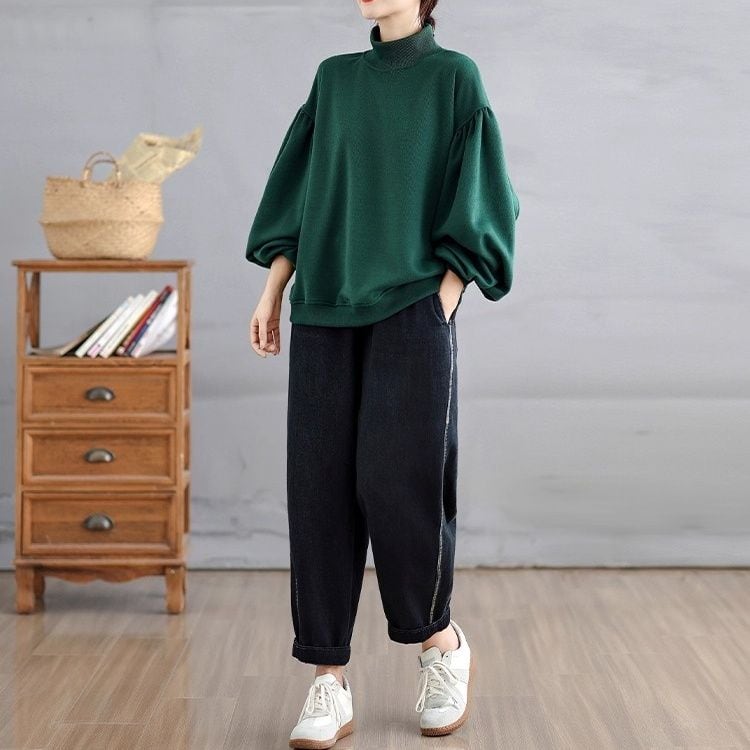 ドロップショルダーのランタンスリーブがお洒落な、ハイネック・長袖・スウェットシャツです。単色のクラシカルなシルエットが上品な、温かく着心地の良いカジュアルアイテムです。ブラックとダークグリーンの2色から選べます。 SIZE:※測り方によって2-3cmの差が生じる場合がございます。 【L】バスト108cm 肩幅52cm 袖丈50cm 着丈64cm 【XL】バスト112cm 肩幅53cm 袖丈51cm 着丈65cm 【2XL】バスト116cm 肩幅54cm 袖丈52cm 着丈66cm 【3XL】バスト120cm 肩幅55cm 袖丈53cm 着丈67cm COLOR:Green、Black 素材:ポリエステル、その他 モデル着用サイズ:L モデル情報:身長161cm 体重49kg STYLE CALENDAR:春〇 夏△ 秋◎ 冬◎ お届けについて こちらの商品は海外店舗より直接発送となる為、 ご決済から到着までは、多くの場合【10日-2週間前後】でお届けしております。 ※在庫状況や輸送の混雑により、4週間前後かかる場合がございます。 注意事項 ・商品在庫切れにより注文キャンセルとさせていただく恐れもございますので、予めご了承くださいませ。 ・仕入れ工場を変えることがあるため、記載サイズと若干異なる場合がございます。 ・商品の色味は、お手持ちのスマートフォンの画面によって実物と若干異なる場合がございます。 ・イメージ違いやサイズ交換等、お客さまご都合による交換・返品はご遠慮ください。 送料について 全国一律580円。ただし10,000円以上のご注文で送料無料となります。 お支払い方法について ・クレジットカード決済(VISA/Mastercard/JCB/アメリカン・エクスプレス/ Diners Club) ・コンビニ決済/Pay-easy ※前払いのお支払い方法 ・Pay ID あと払い(コンビニ払い、口座振替) ※あと払いのお支払い方法 ・キャリア決済(d払い/au PAY(auかんたん決済)/ソフトバンク・ワイモバイルまとめて支払い) 管理番号:M-14611