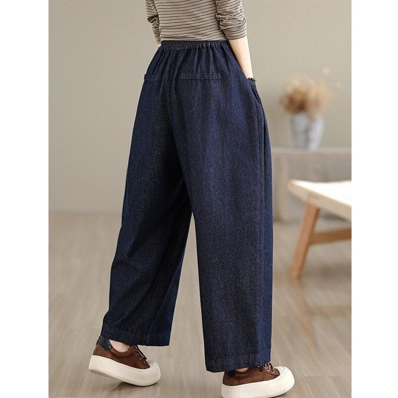 ELASTIC WAIST WIDE LEG CROPPED DENIM PANTS 1color M-14620