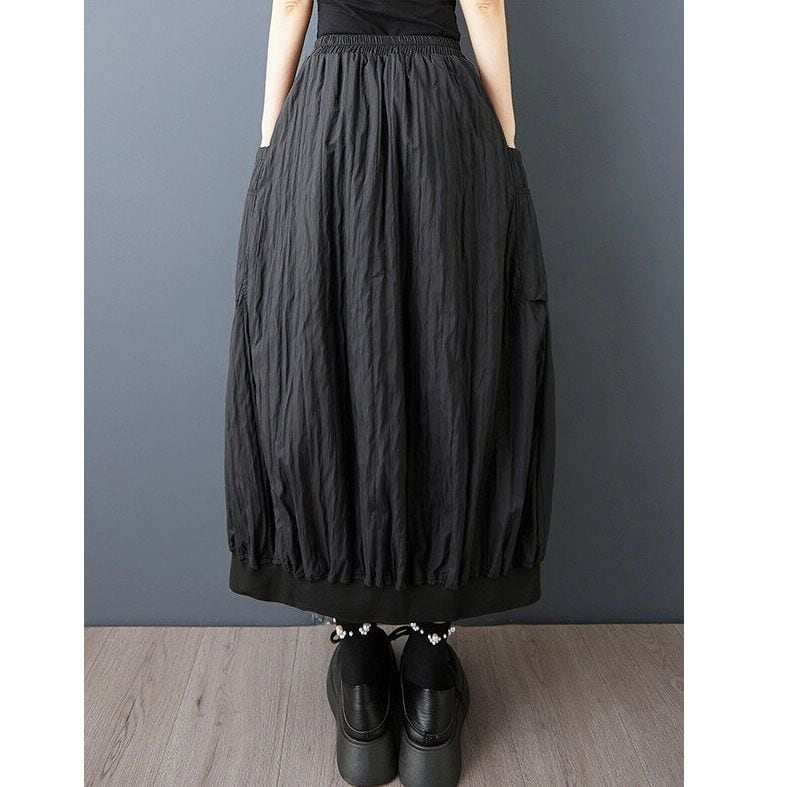 BLACK ELASTIC WAIST LANTERN SHAPE MIDI SKIRT 1color M-14634