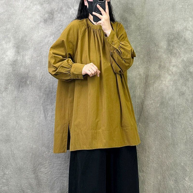 スモックのようなシルエットがキュートな、スタンドカラー・長袖・チュニック丈のプルオーバーシャツです。サイドにスリットが入ったAラインンのシルエットの、単色で何にでも合わせやすいアイテムです。色は3色から選べます。 SIZE:※測り方によって2-3cmの差が生じる場合がございます。 【L】バスト118cm 裄丈68cm 着丈75cm 【XL】バスト126cm 裄丈69.5cm 着丈76cm 【2XL】バスト134cm 裄丈71cm 着丈77cm COLOR:Khaki、Black、BrownGray 素材:ポリエステル、その他 モデル着用サイズ:L モデル情報:身長161cm 体重49kg STYLE CALENDAR:春〇 夏〇 秋◎ 冬〇 お届けについて こちらの商品は海外店舗より直接発送となる為、 ご決済から到着までは、多くの場合【10日-2週間前後】でお届けしております。 ※在庫状況や輸送の混雑により、4週間前後かかる場合がございます。 注意事項 ・商品在庫切れにより注文キャンセルとさせていただく恐れもございますので、予めご了承くださいませ。 ・仕入れ工場を変えることがあるため、記載サイズと若干異なる場合がございます。 ・商品の色味は、お手持ちのスマートフォンの画面によって実物と若干異なる場合がございます。 ・イメージ違いやサイズ交換等、お客さまご都合による交換・返品はご遠慮ください。 送料について 全国一律580円。ただし10,000円以上のご注文で送料無料となります。 お支払い方法について ・クレジットカード決済(VISA/Mastercard/JCB/アメリカン・エクスプレス/ Diners Club) ・コンビニ決済/Pay-easy ※前払いのお支払い方法 ・Pay ID あと払い(コンビニ払い、口座振替) ※あと払いのお支払い方法 ・キャリア決済(d払い/au PAY(auかんたん決済)/ソフトバンク・ワイモバイルまとめて支払い) 管理番号:M-14654