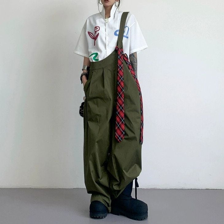 ARMYGREEN ONE STRAP WIDE LEG OVERALL 1color M-14658