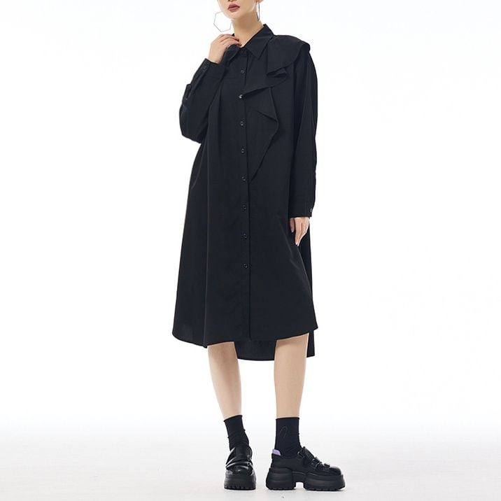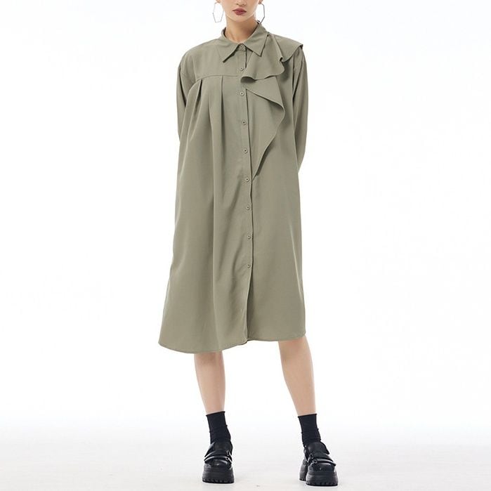 SOLID LONG SLEEVES MIDI DESIGN SHIRT DRESS 1color M-14680