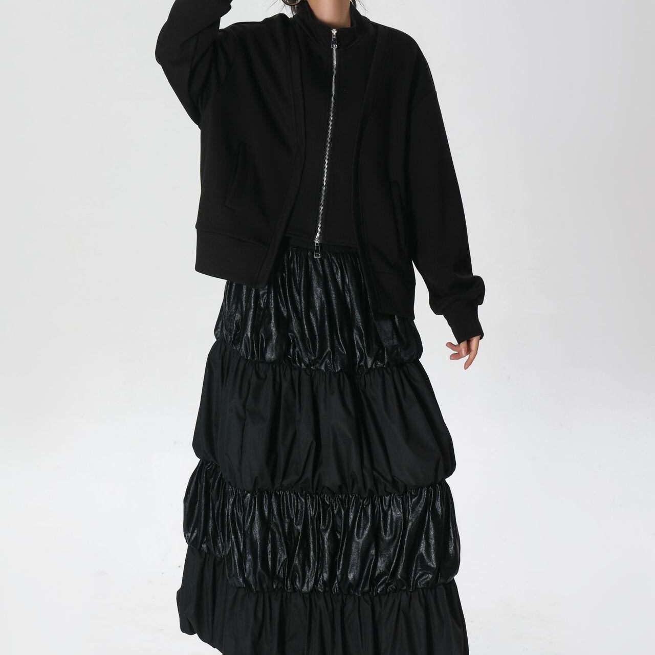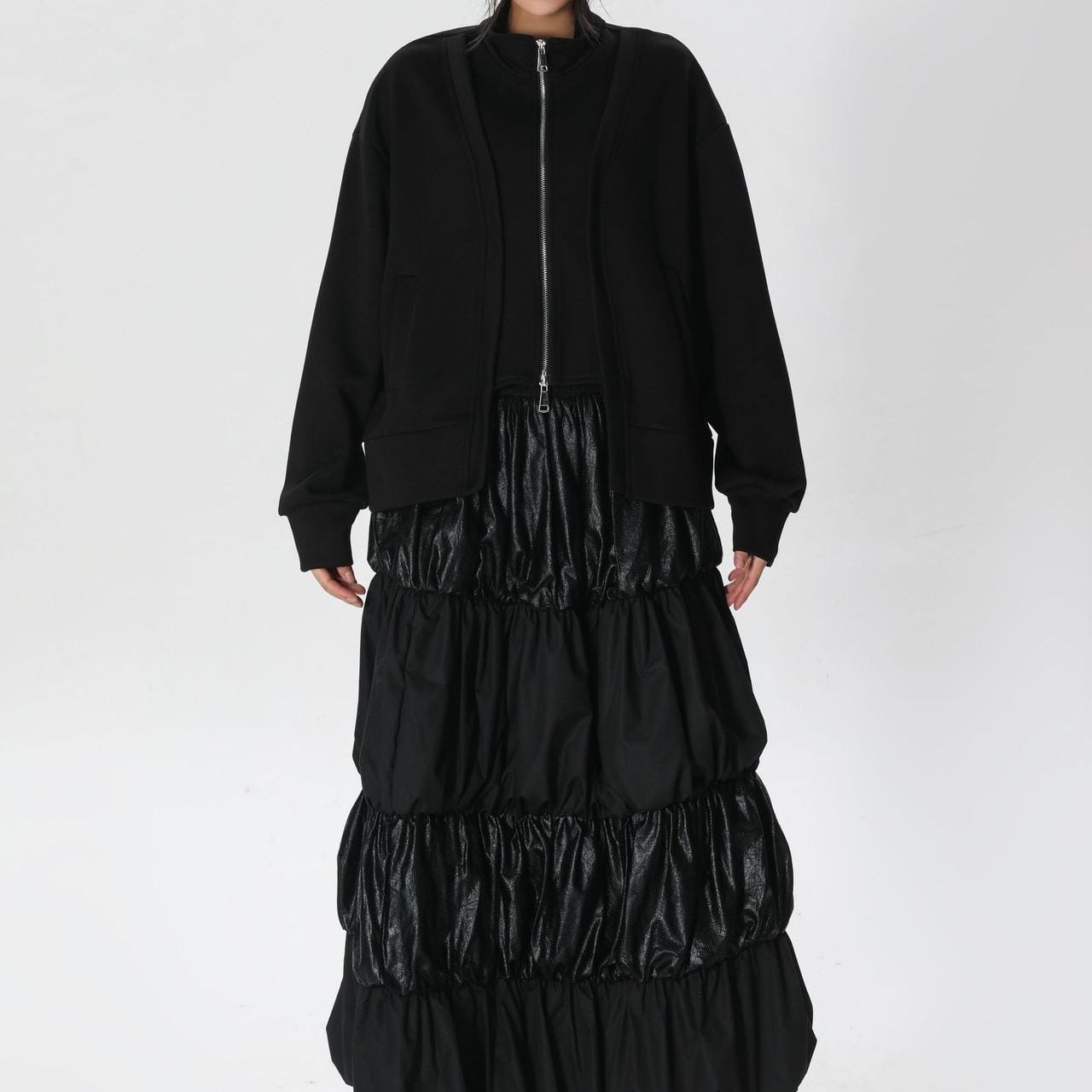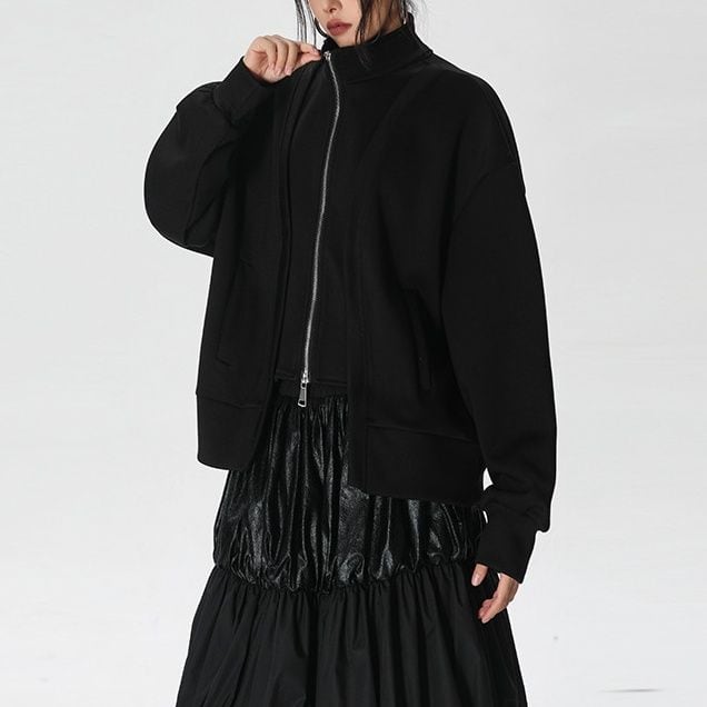 BLACK FAKE-2-PIECE DESIGN HIGH NECK FULLZIP JACKET 1color M-14685
