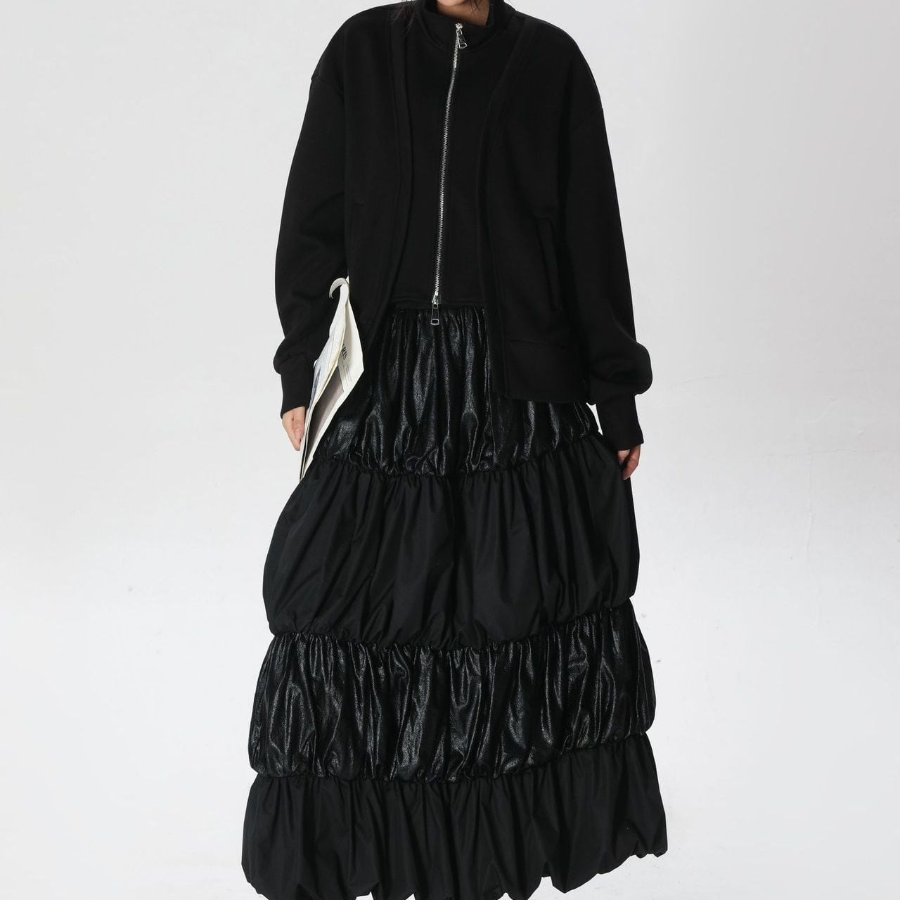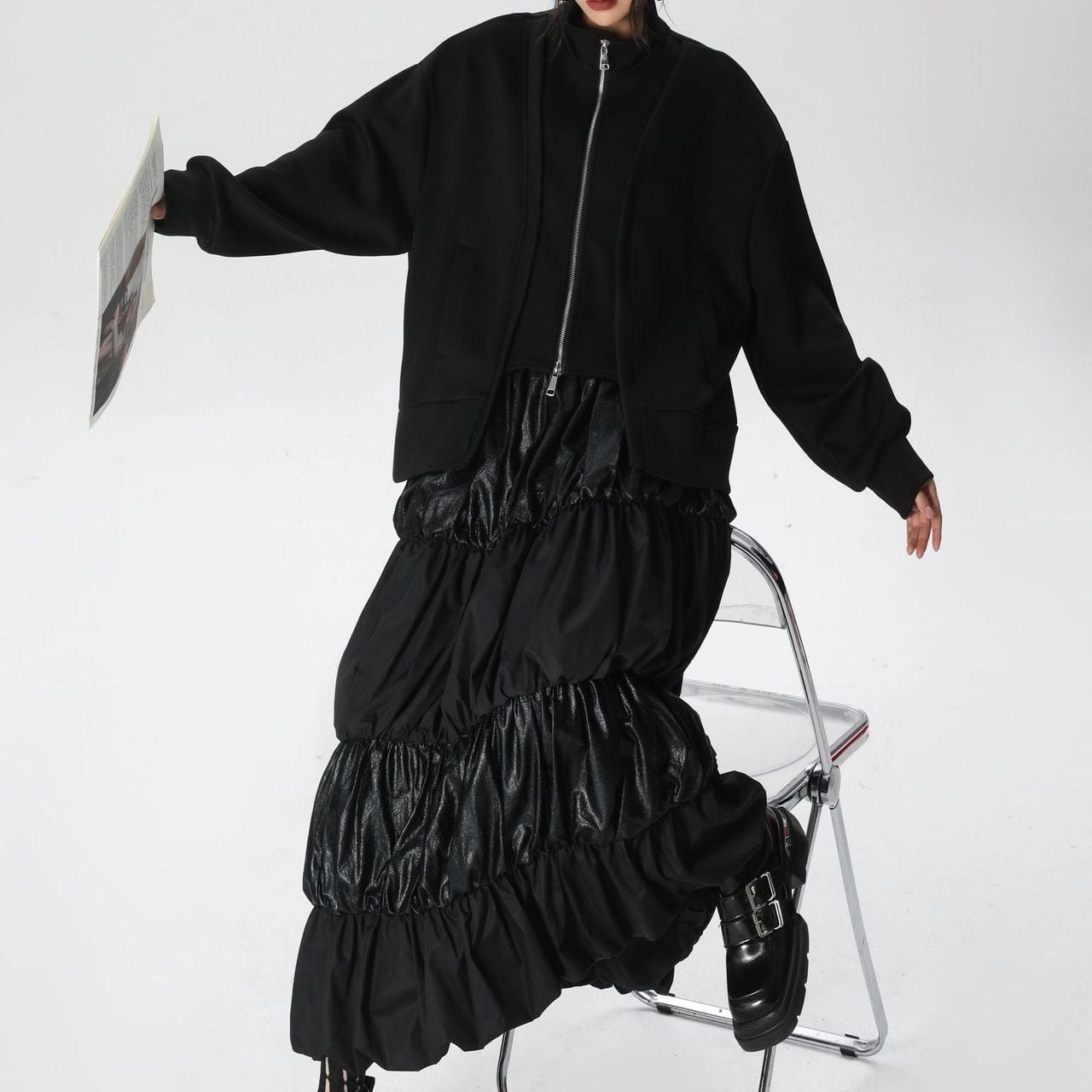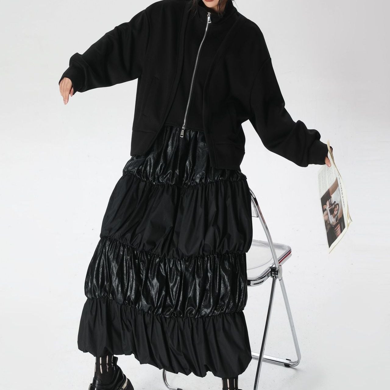 BLACK FAKE-2-PIECE DESIGN HIGH NECK FULLZIP JACKET 1color M-14685