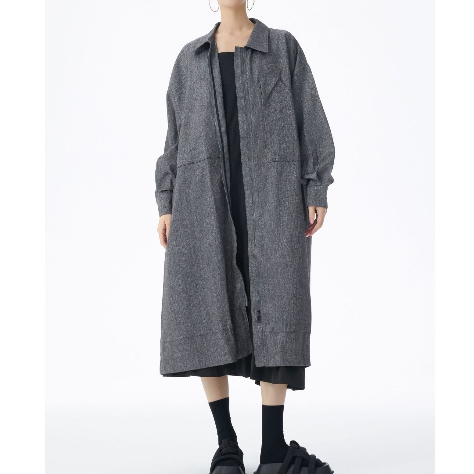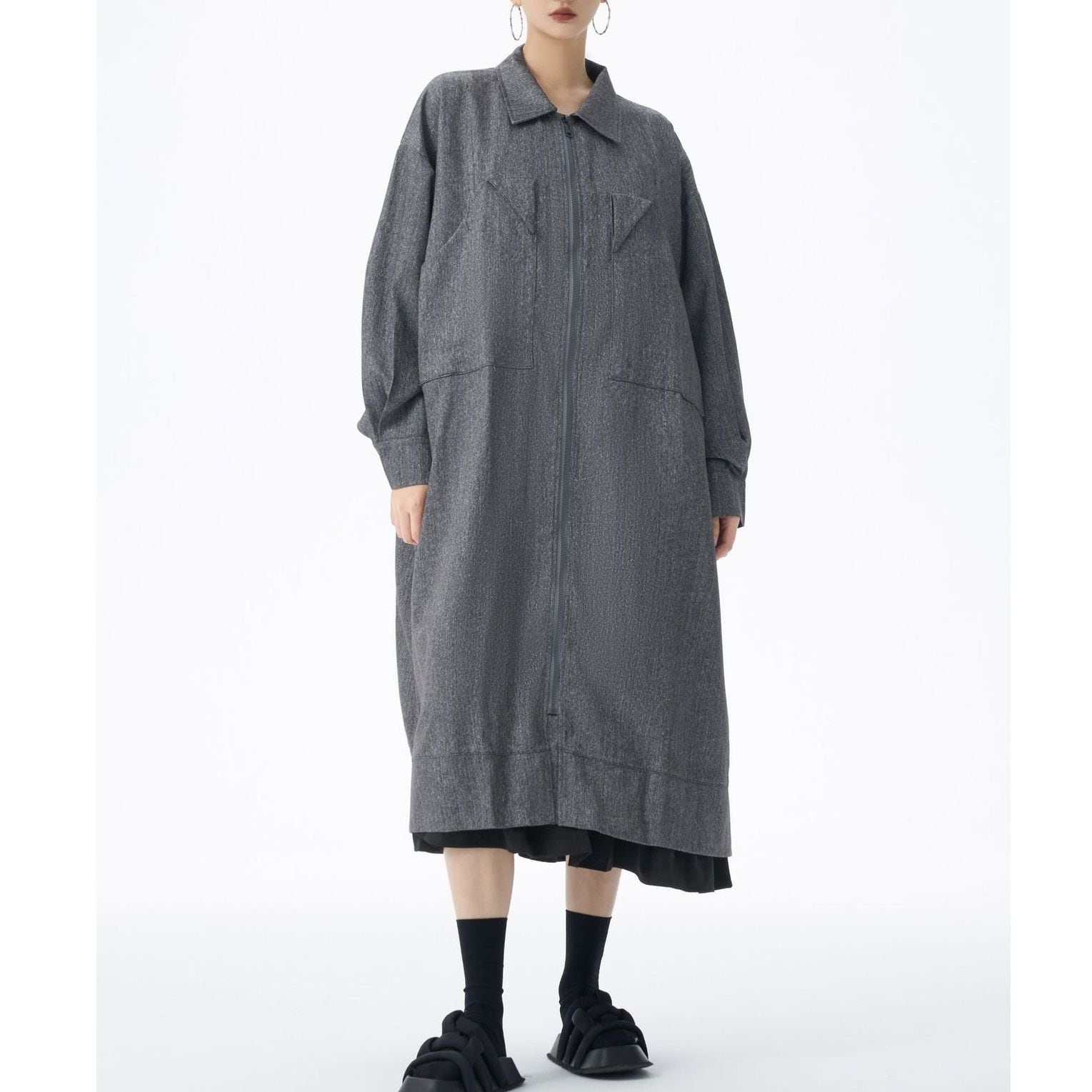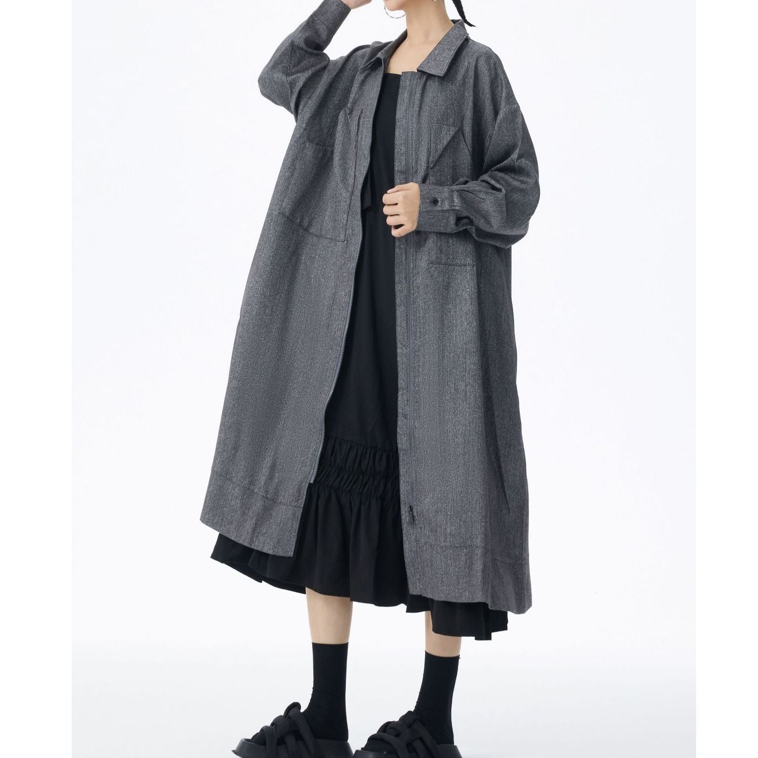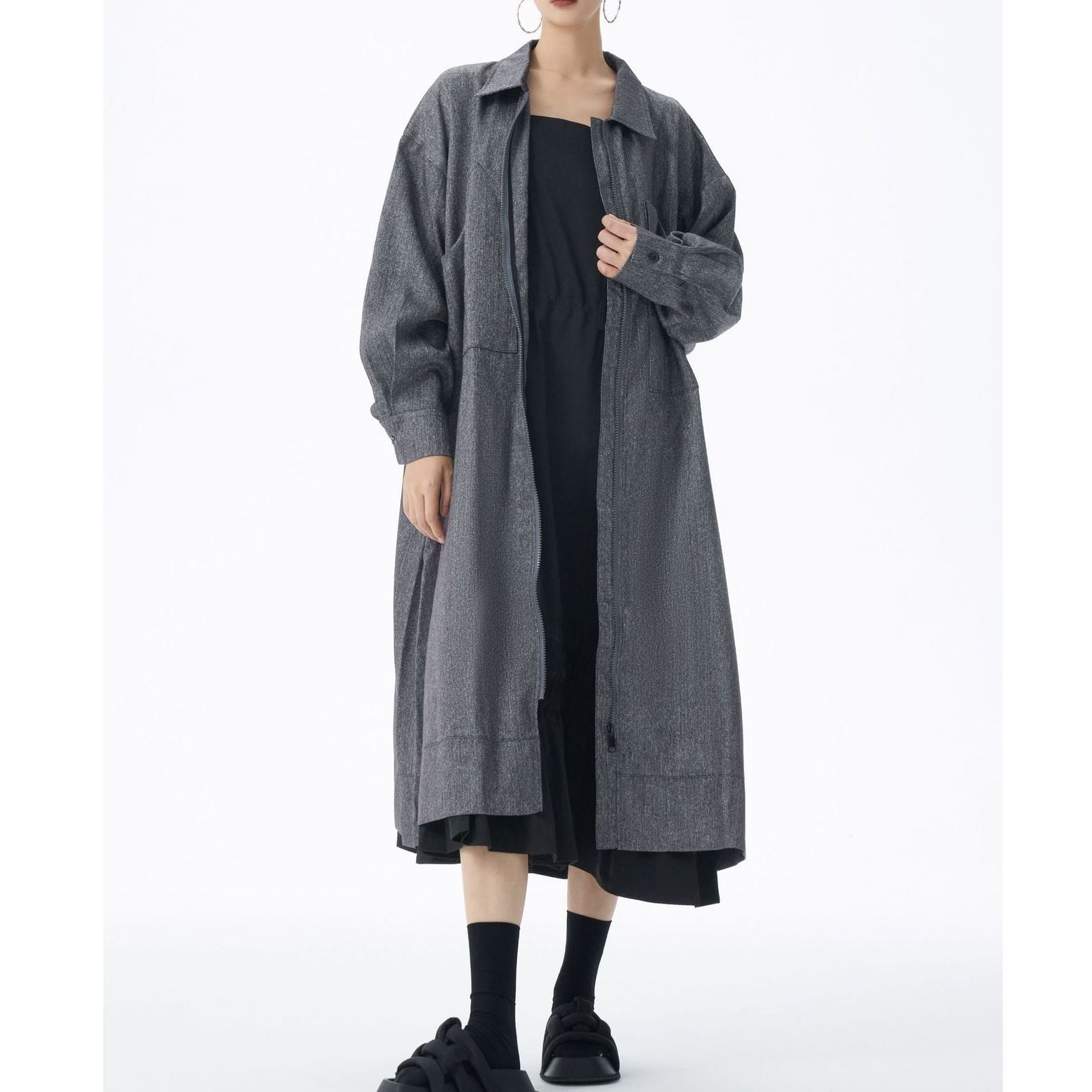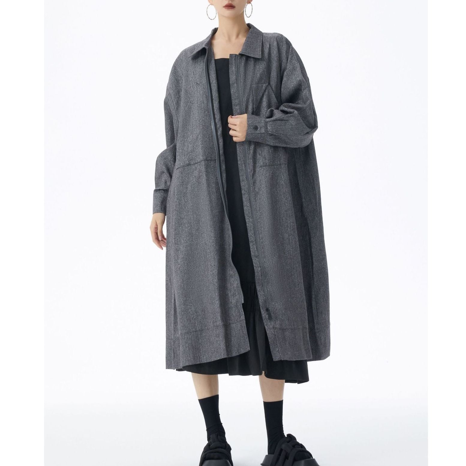GRAY FULLZIP A-LINE MIDI WINDBREAKER SHIRT COAT 1color M-14693