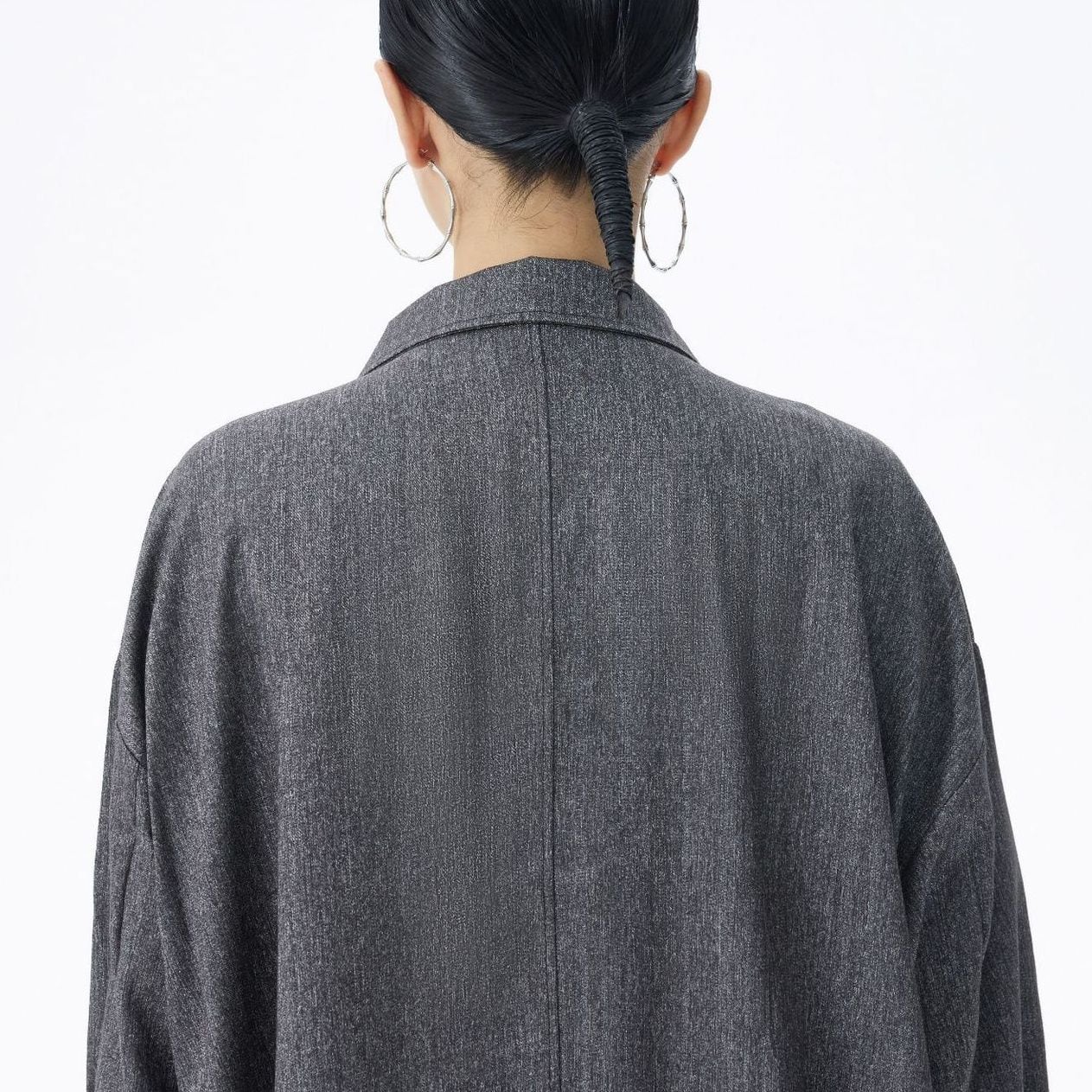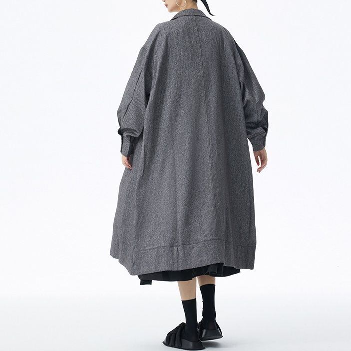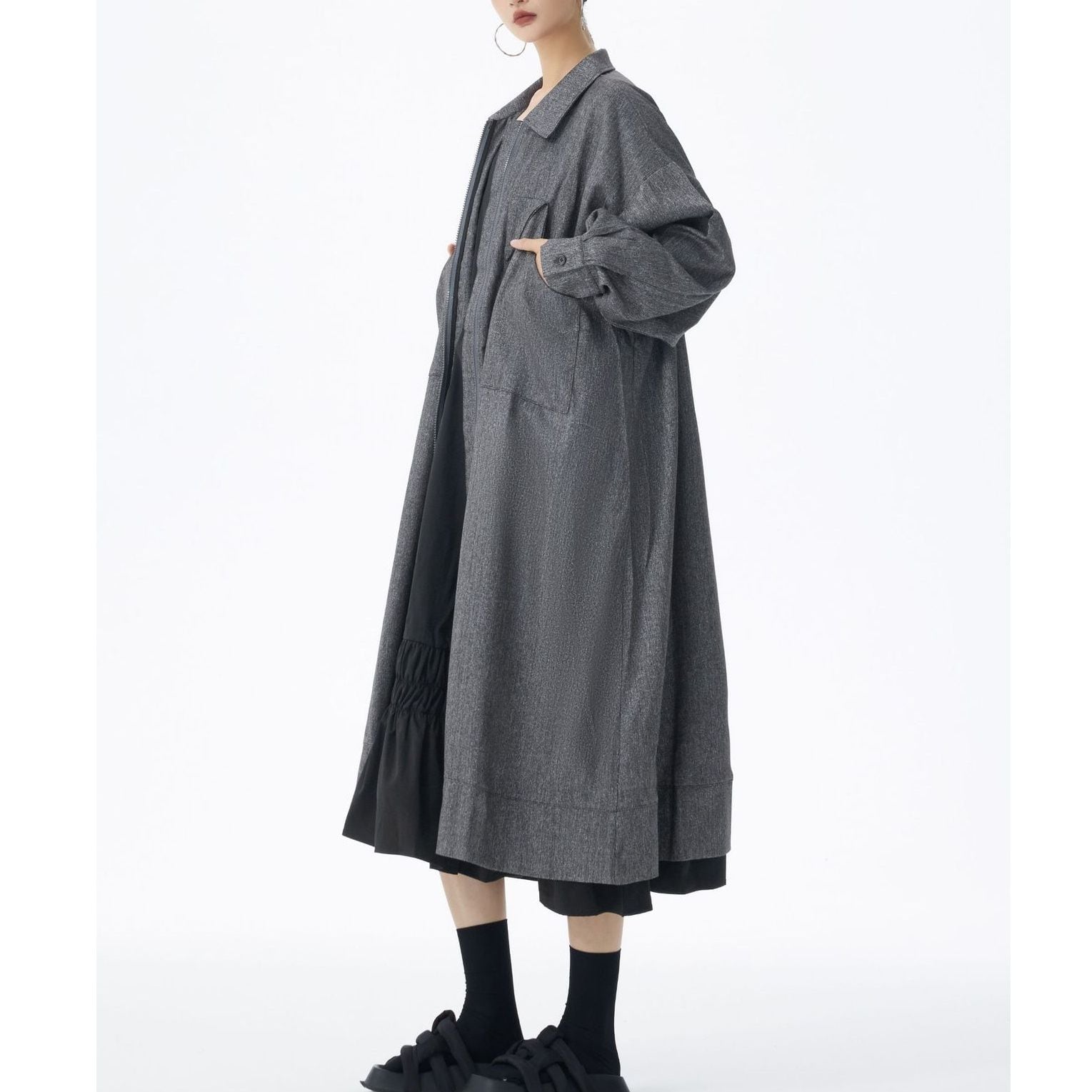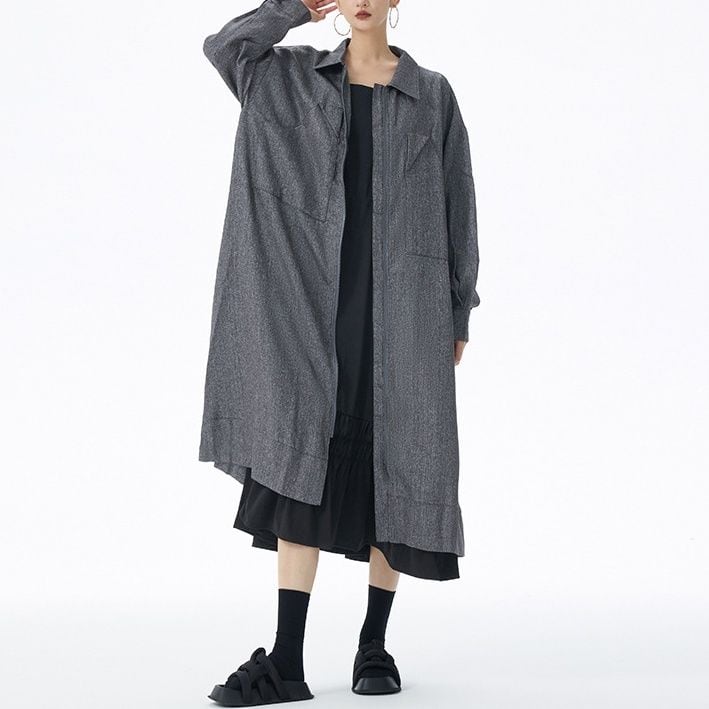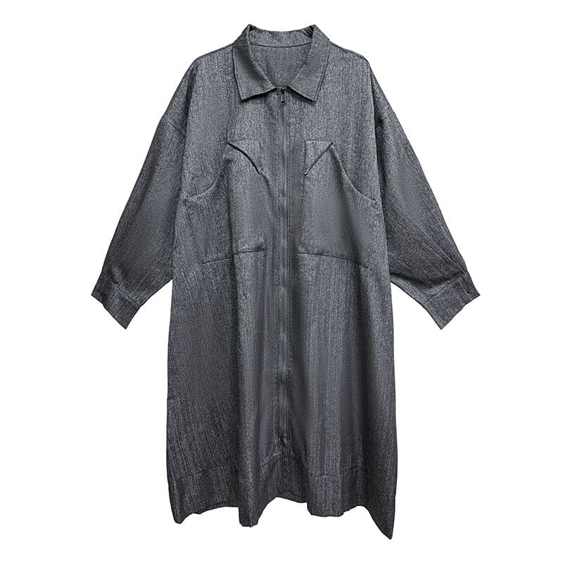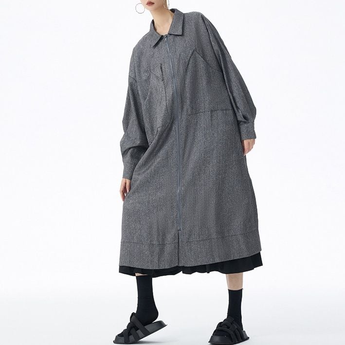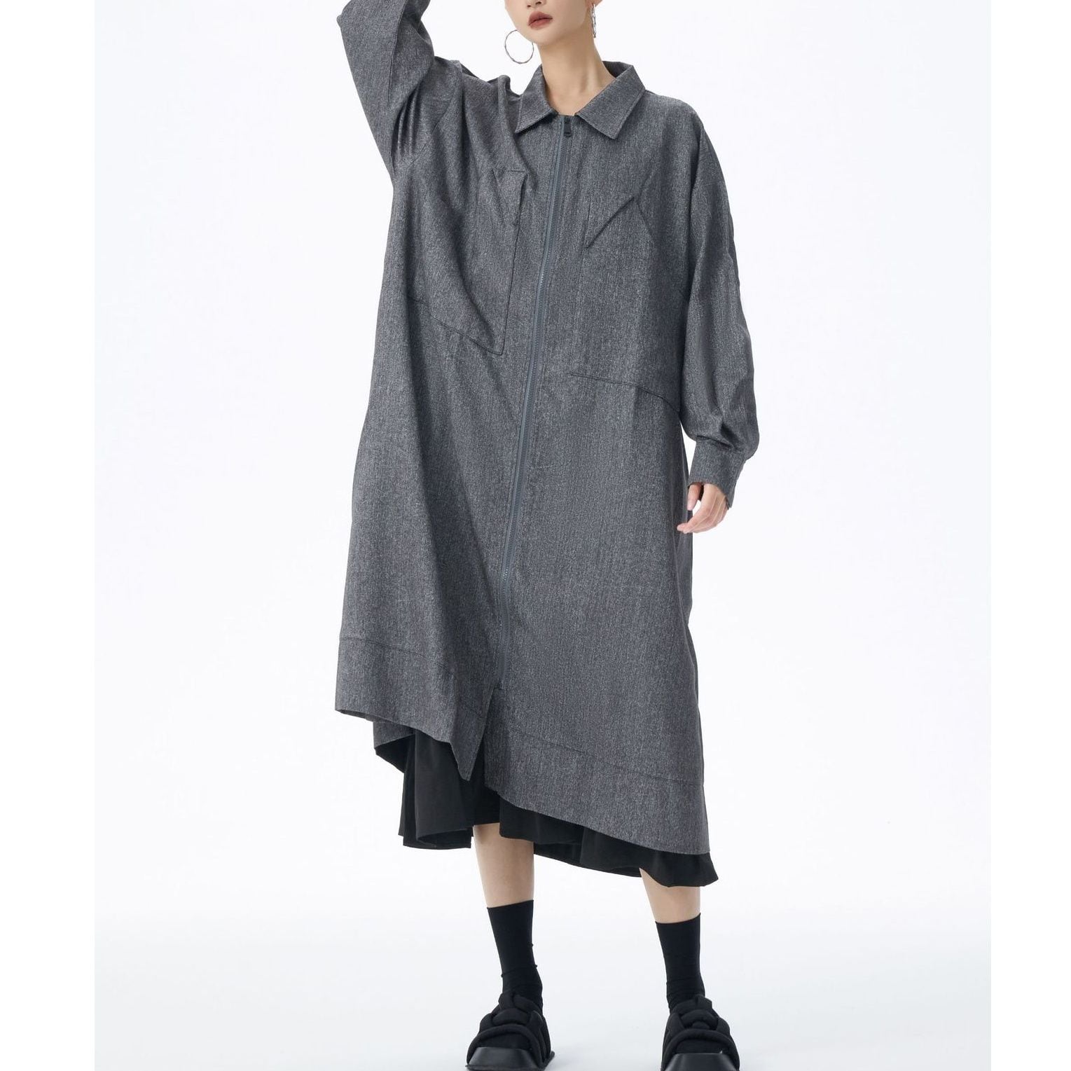 GRAY FULLZIP A-LINE MIDI WINDBREAKER SHIRT COAT 1color M-14693