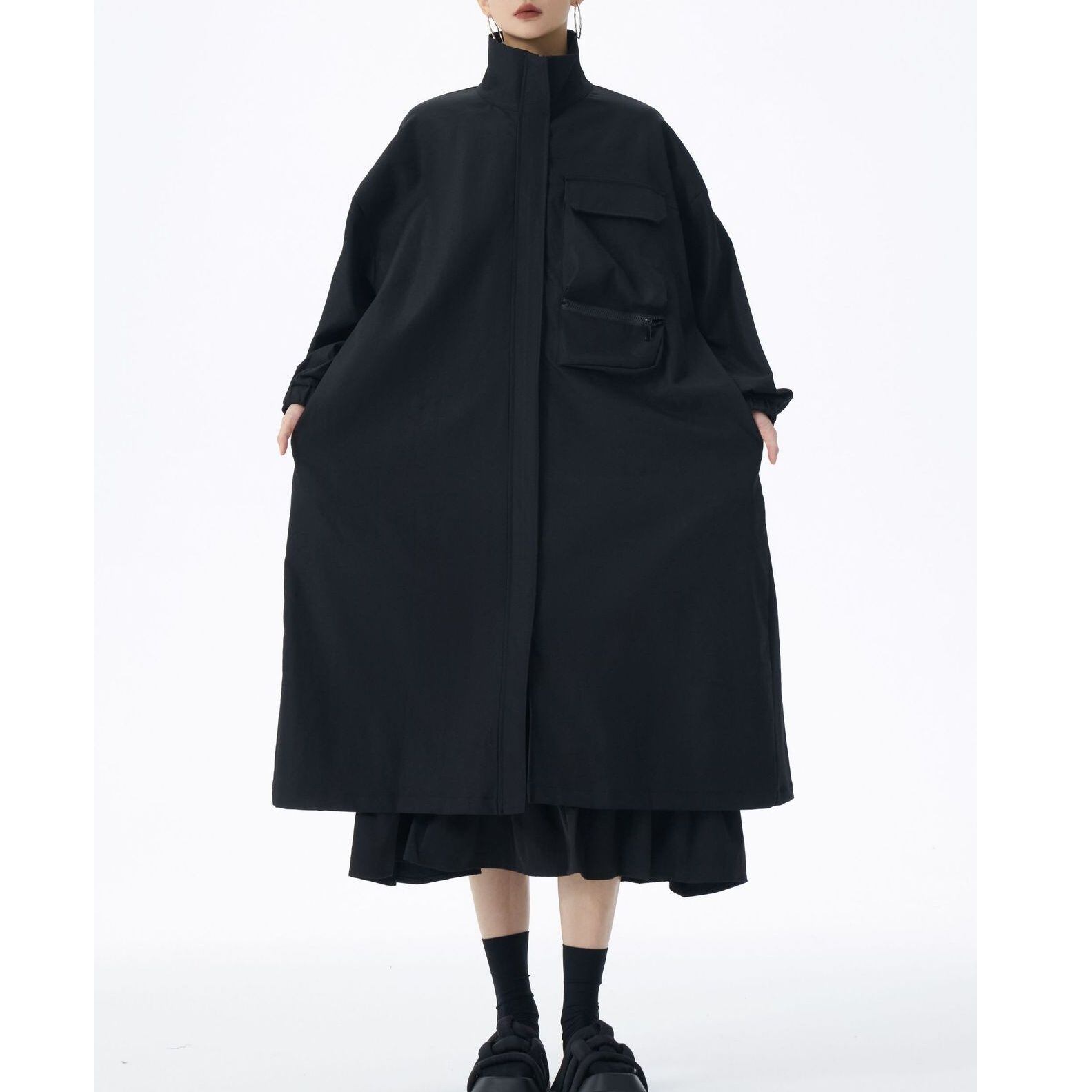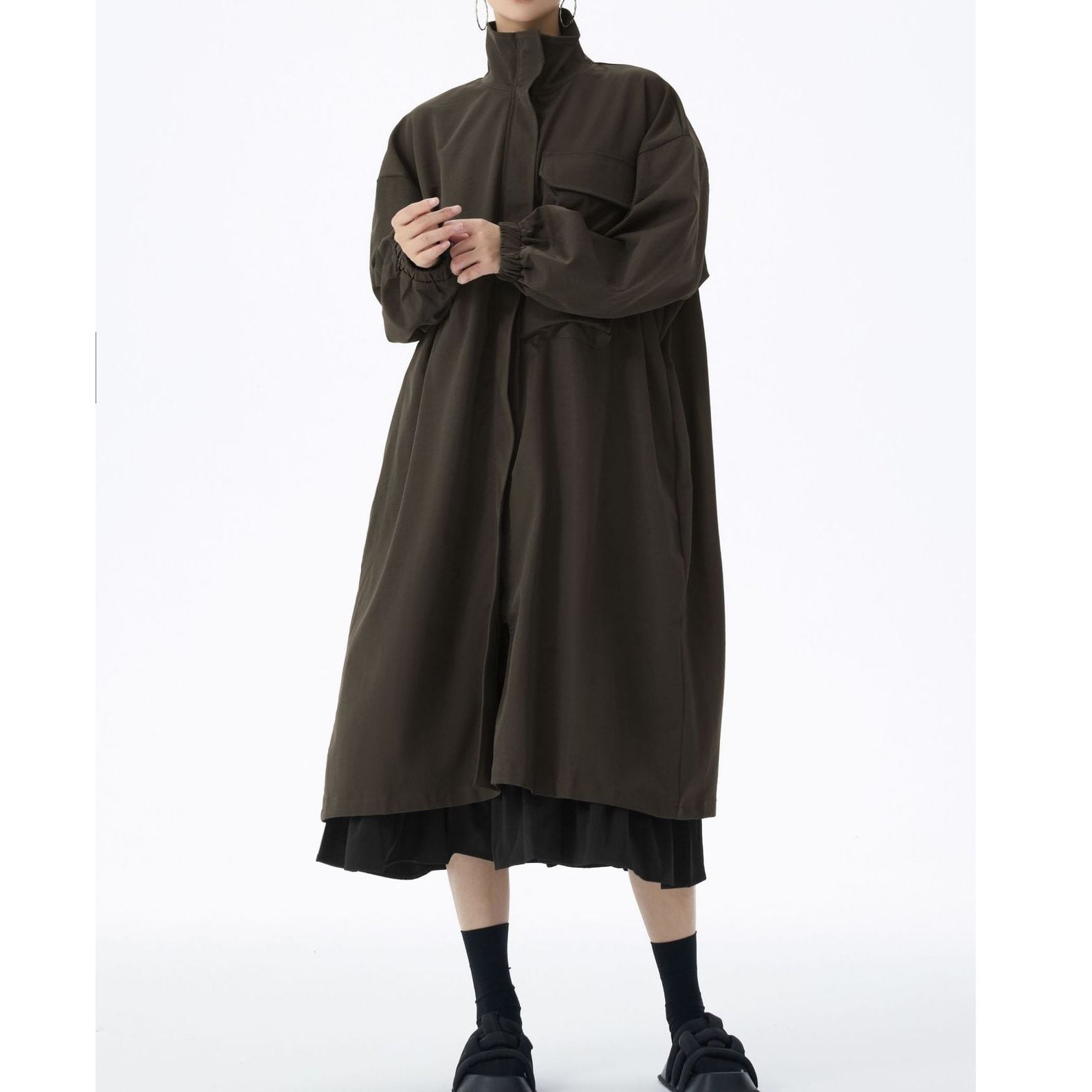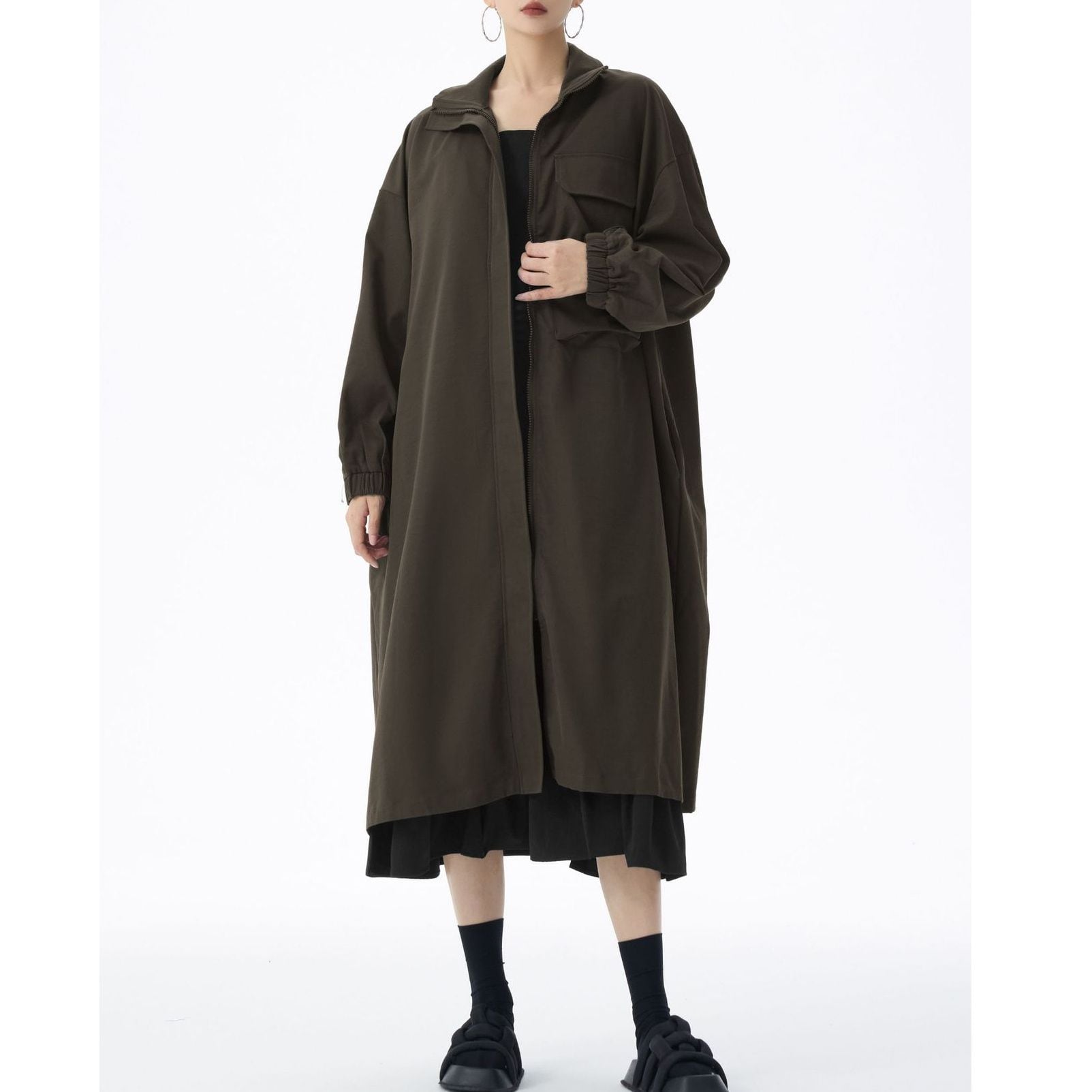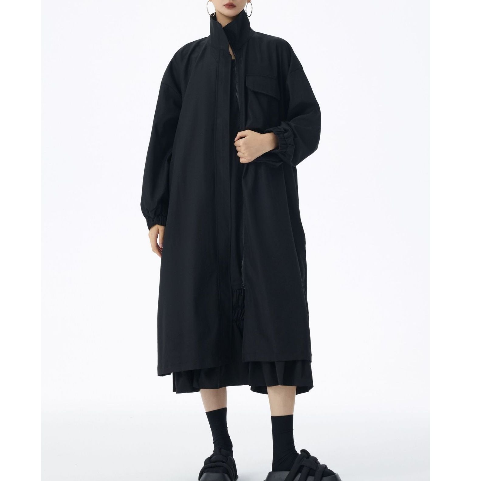 SOLID STAND COLLAR MIDI FULLZIP WINDBREAKER COAT 2colors M-14701