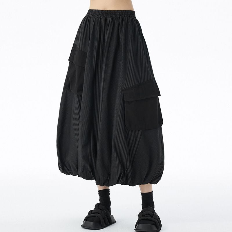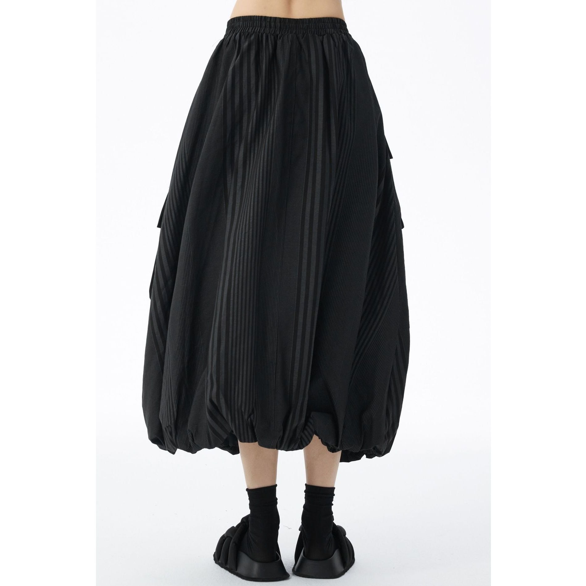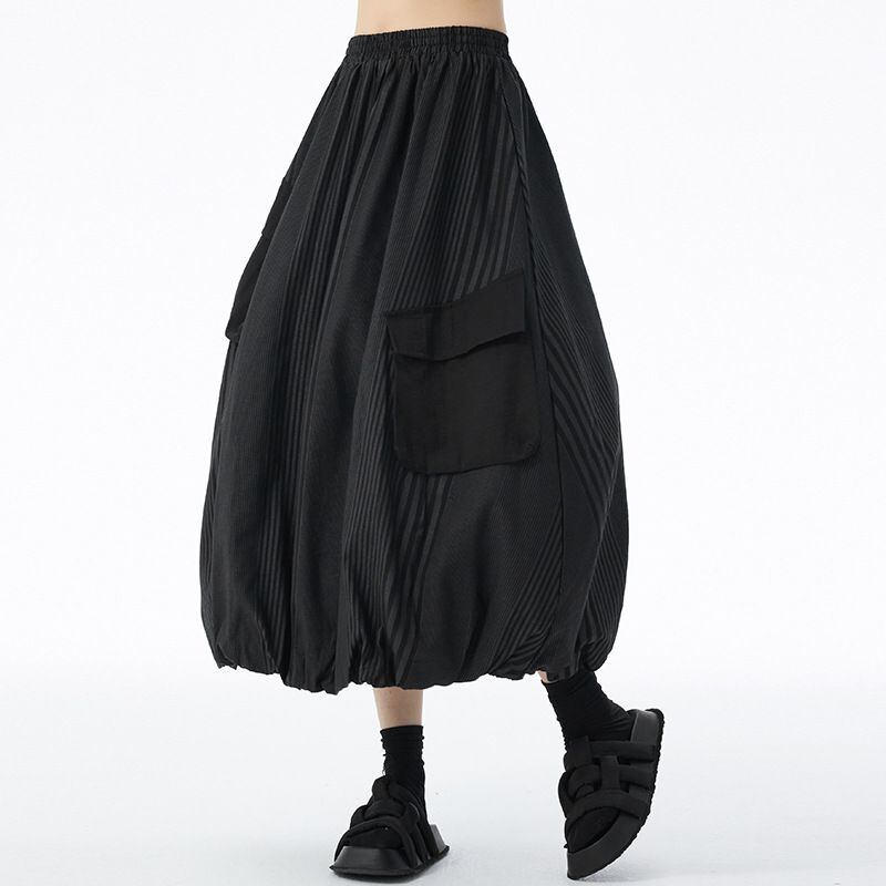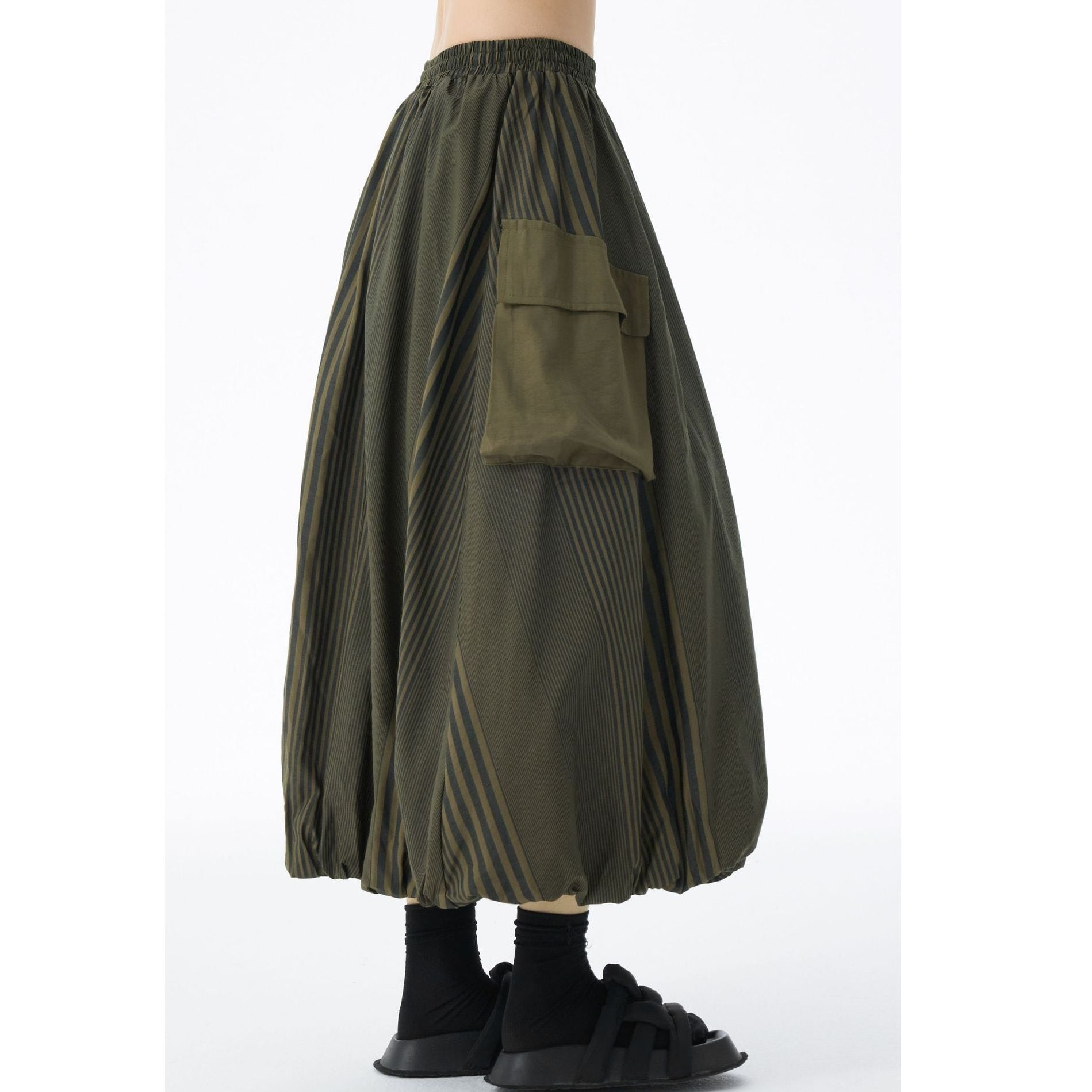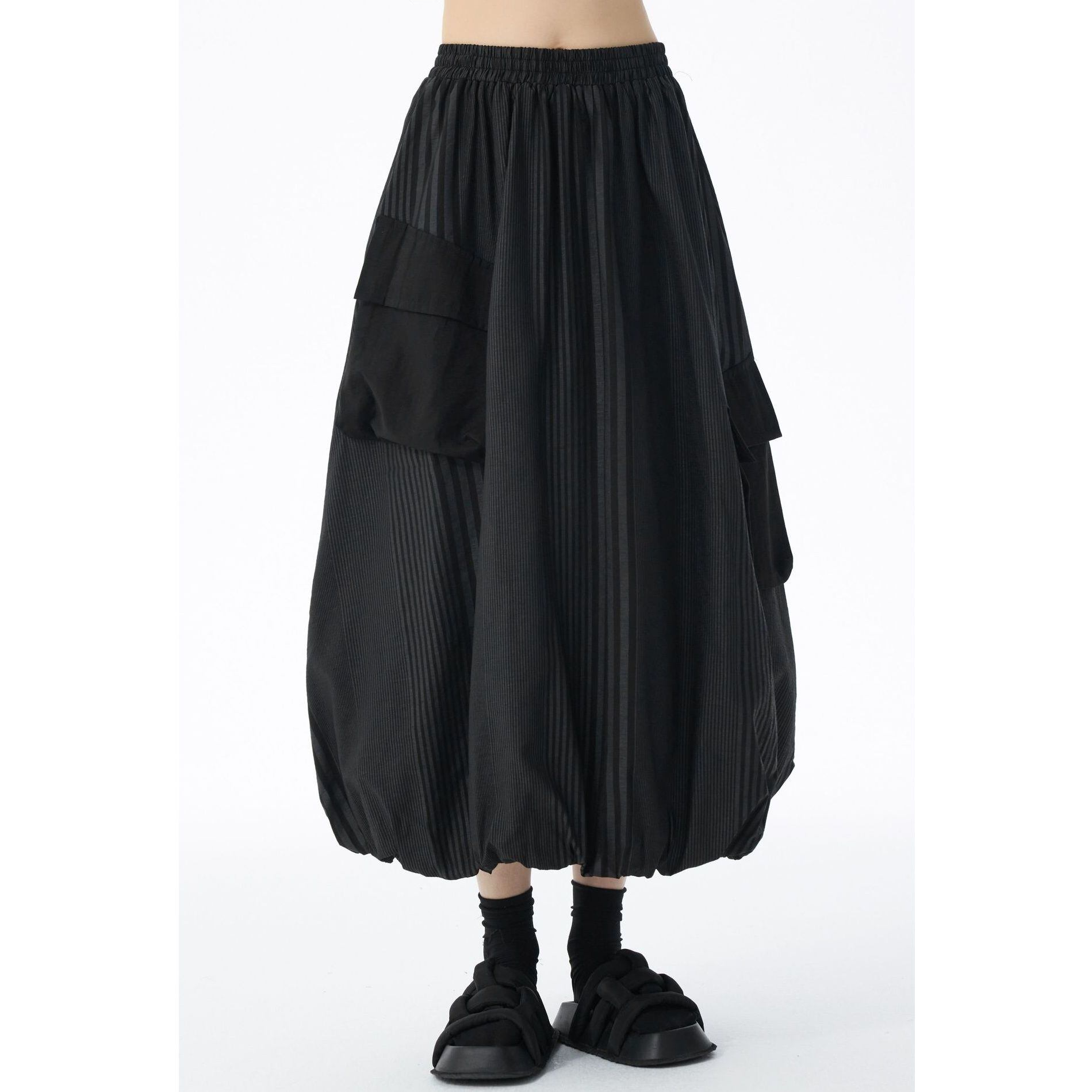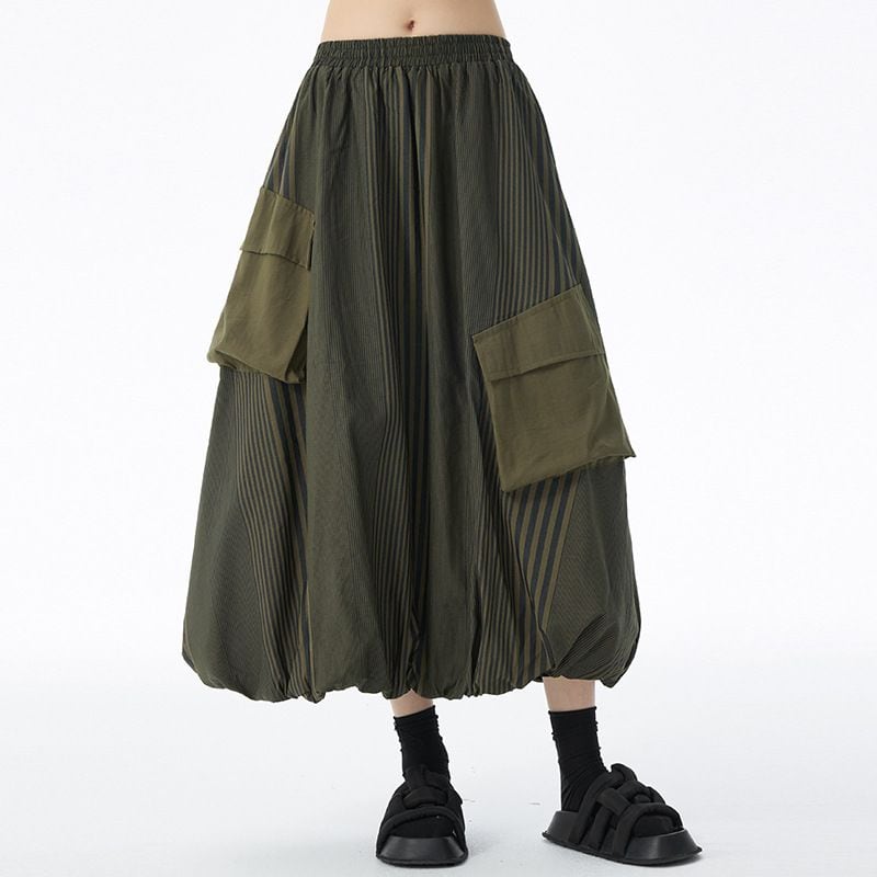 STRIPE STITCH DESIGN POCKET MIDI BALLOON SKIRT 2colors M-14703