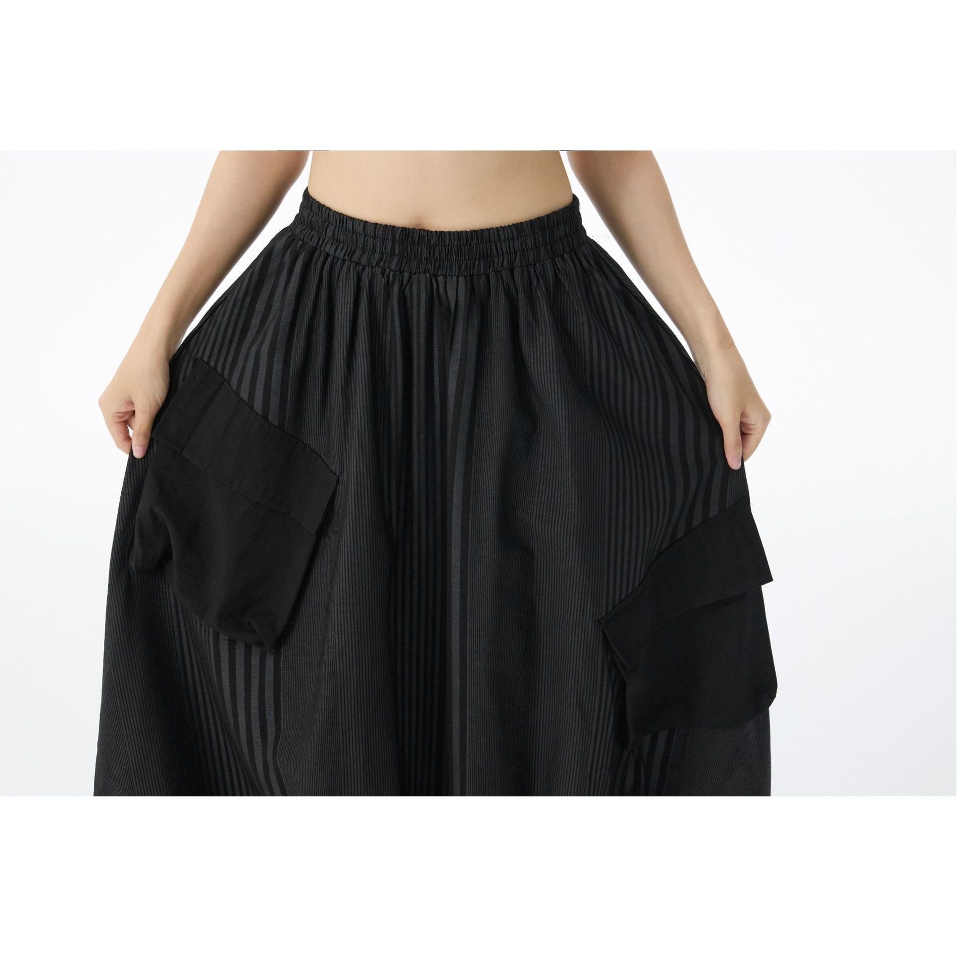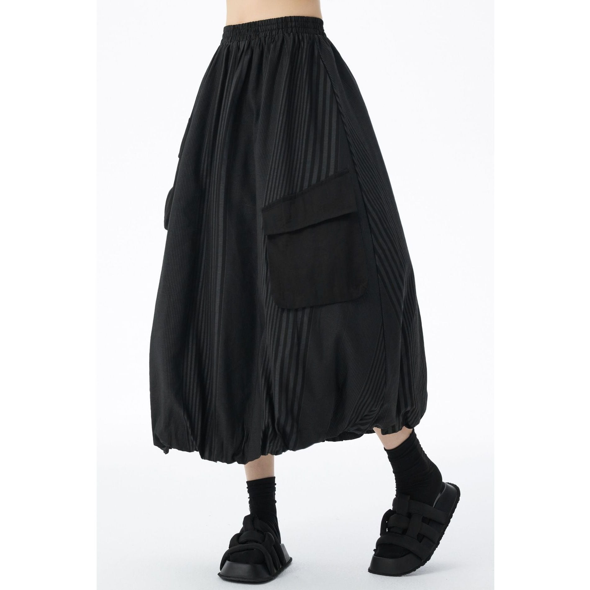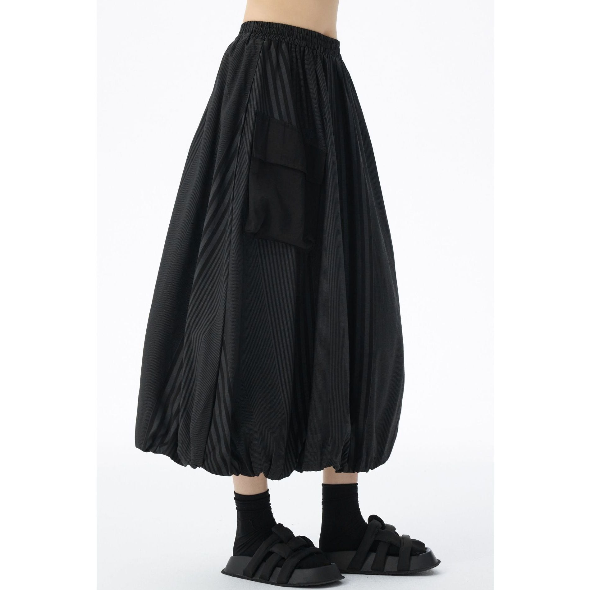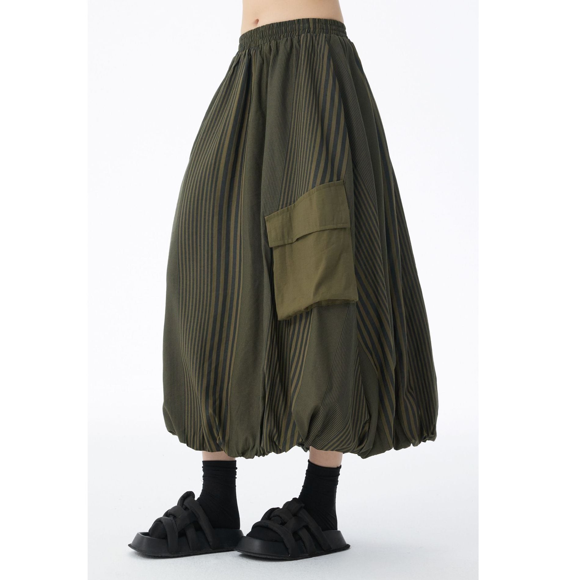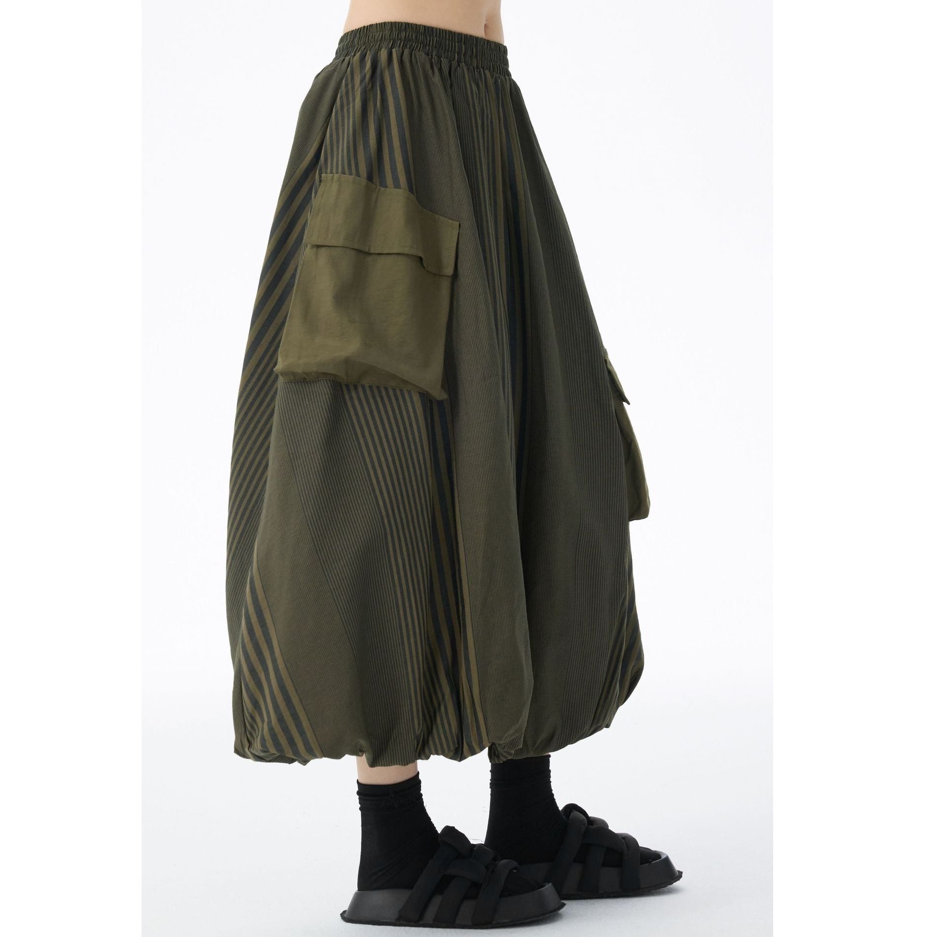 STRIPE STITCH DESIGN POCKET MIDI BALLOON SKIRT 2colors M-14703
