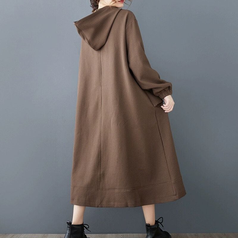 SOLID HOODED DESIGN POCKET A-LINE MIDI FULLZIP JACKET COAT 2colors M-14730