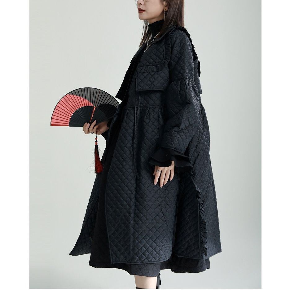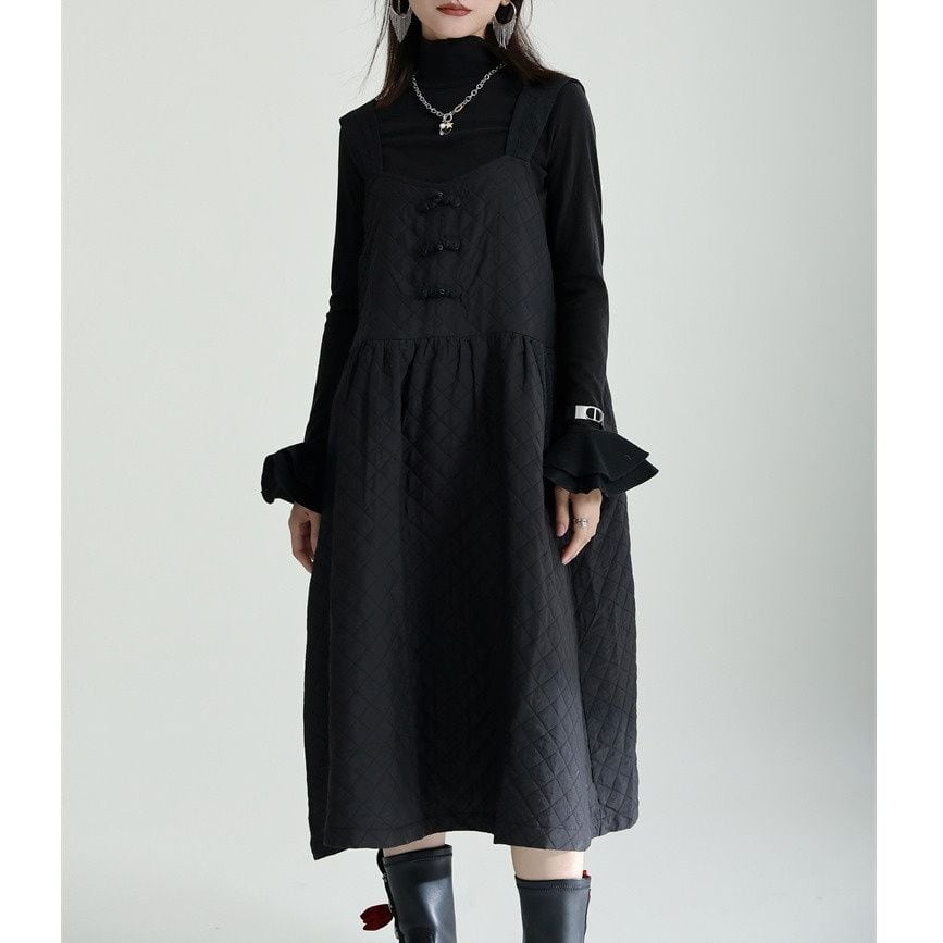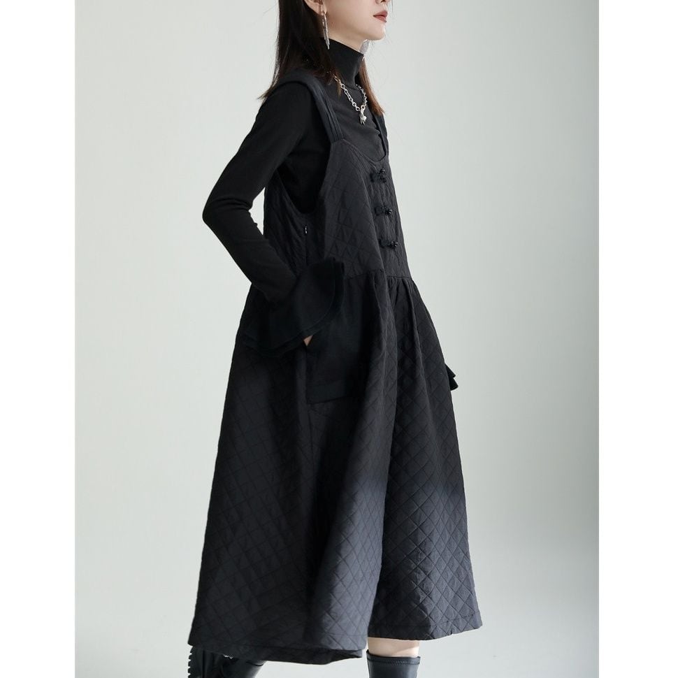 BLACK QUILTING CHINA STYLE MIDI JUMPER DRESS 1color M-14758