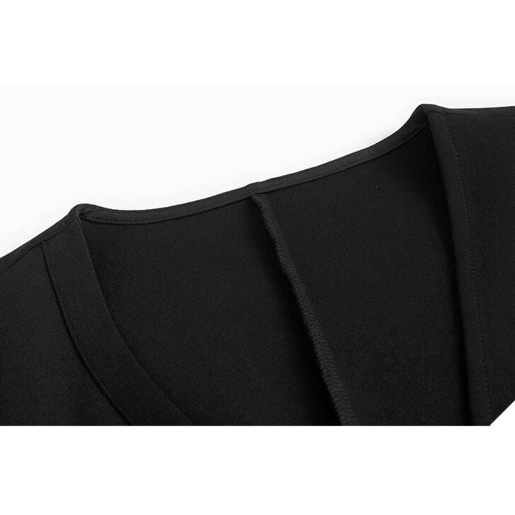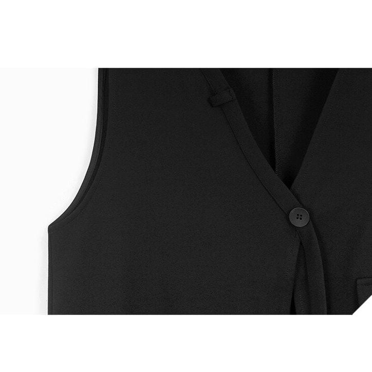 BLACK ASYMMETRIC V-NECK DESIGN VEST 1color M-14767