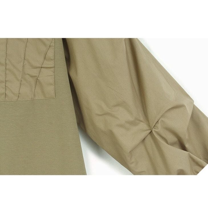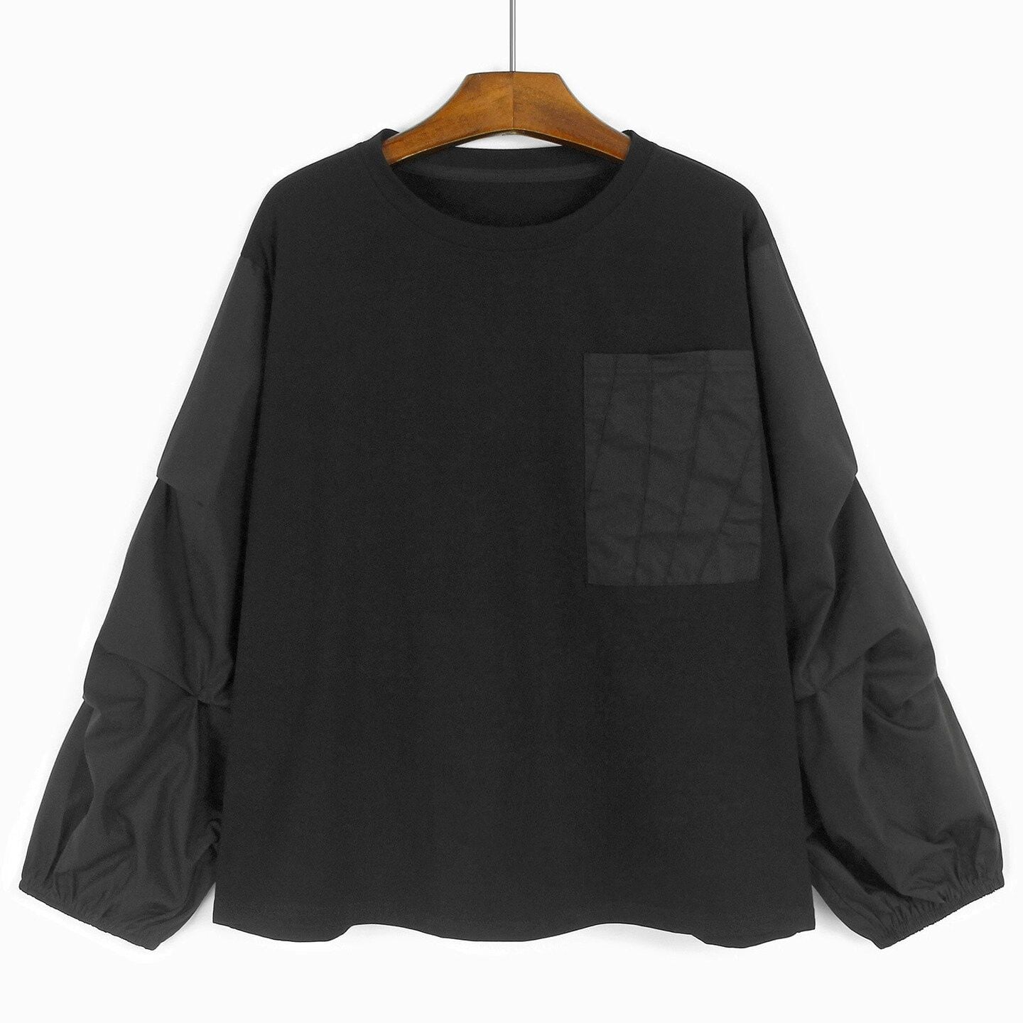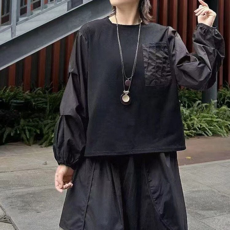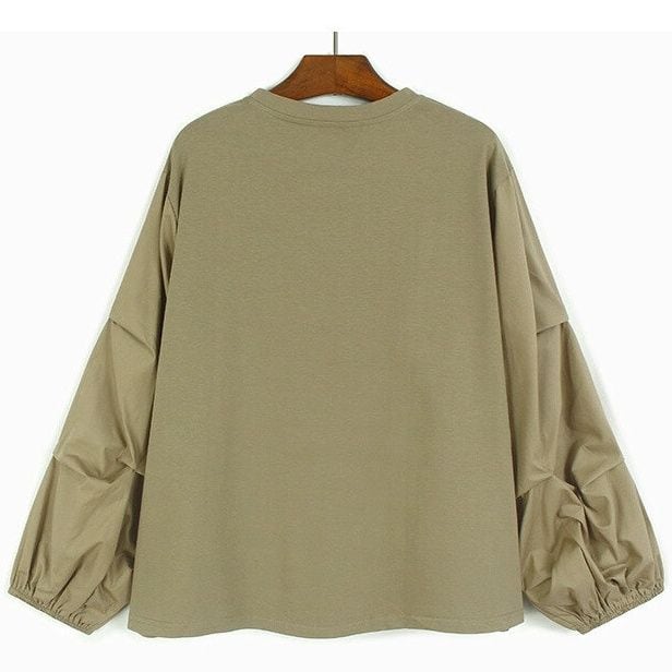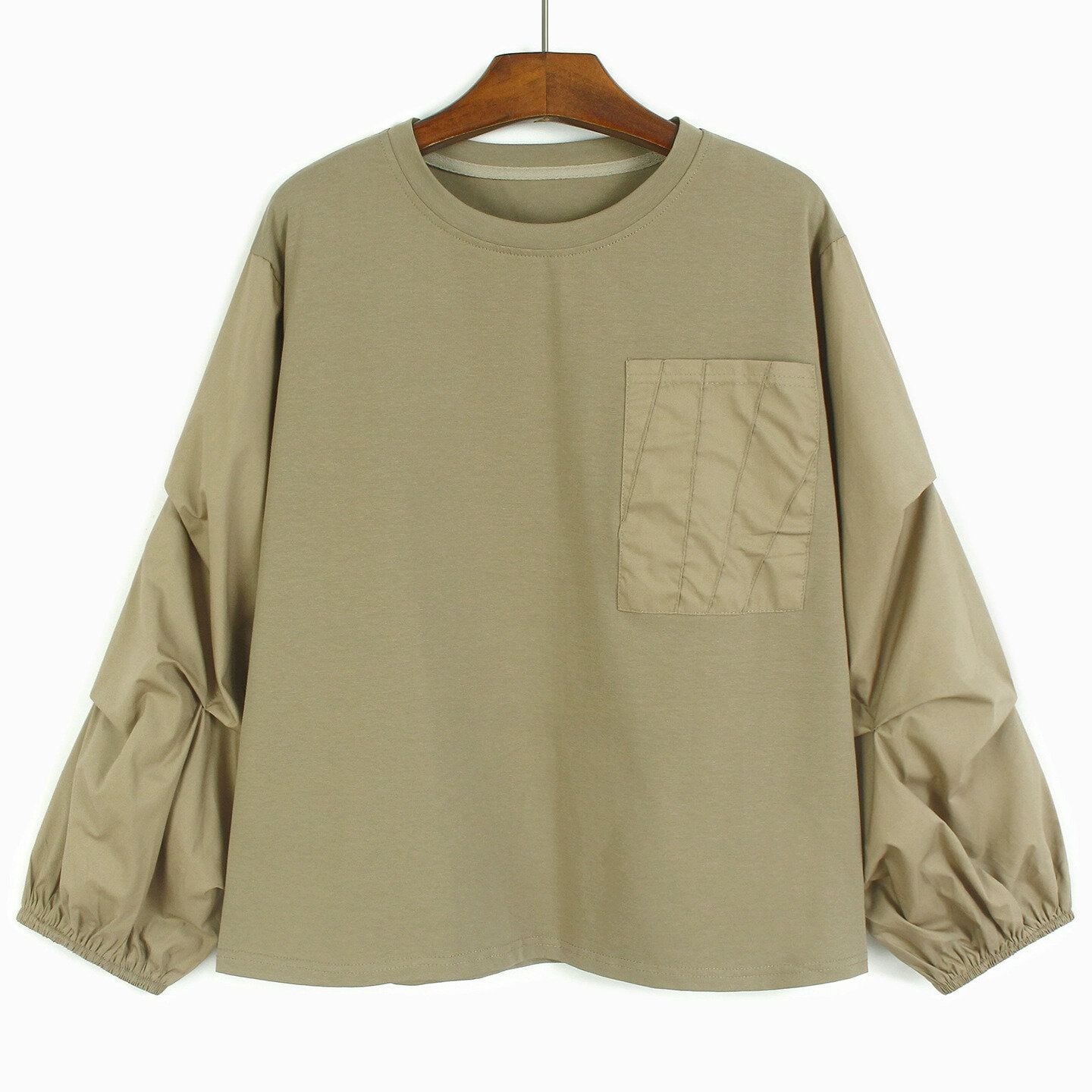 SOLID LANTERN SLEEVES STITCHED ROUND NECK PULLOVER SHIRT & DESIGN SKIRT 3colors M-14773