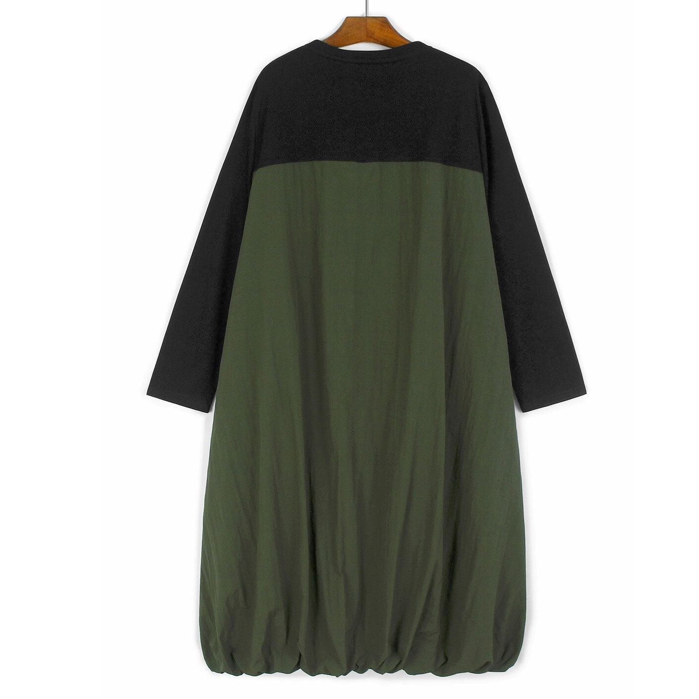 CONTRAST STITCH ROUND NECK BALLOON SKIRT MIDI PULLOVER DRESS 2colors M-14779
