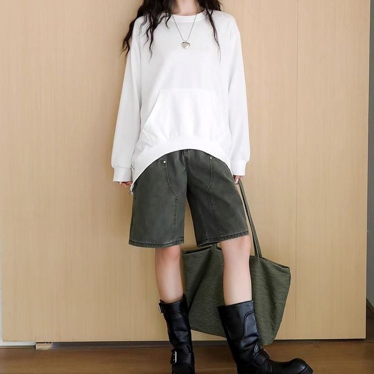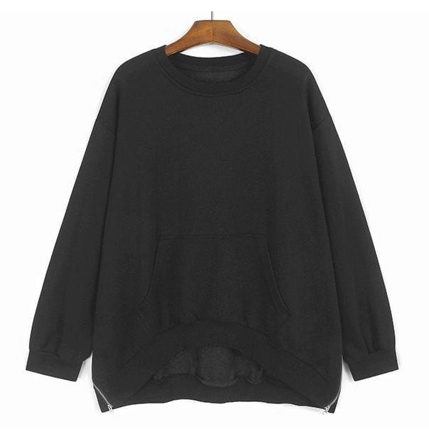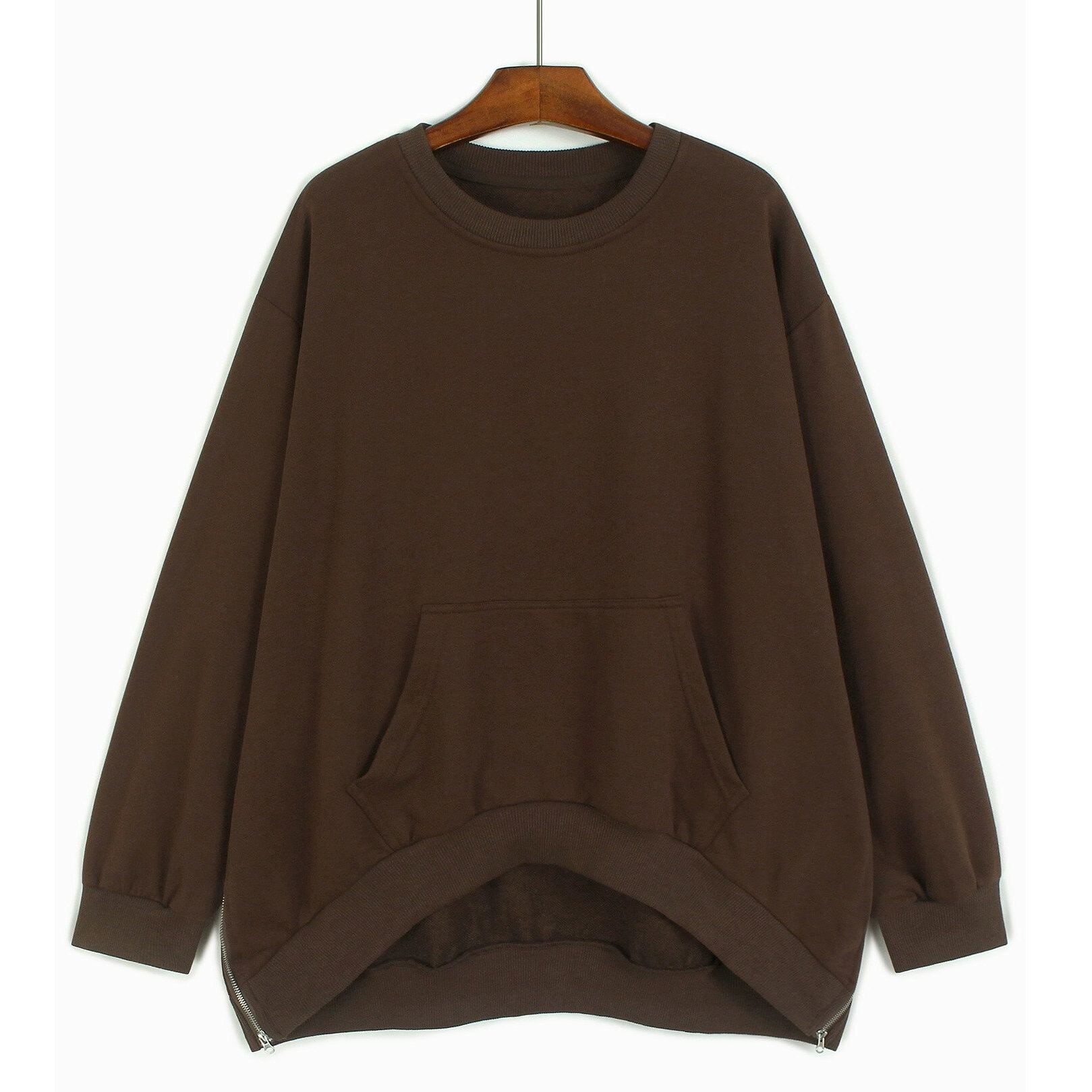 SOLID SIDE ZIP HIGH-LOW HEM SWEAT SHIRT 3colors M-14786
