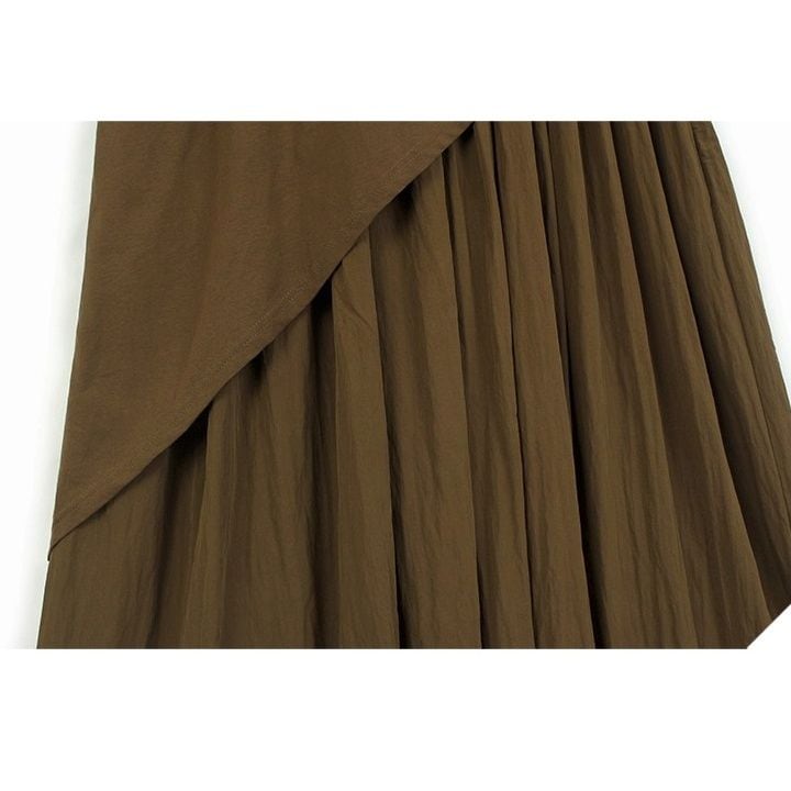 SOLID FAKE-2-PIECE A-LINE LONG PULLOVER DRESS 2colors M-14788