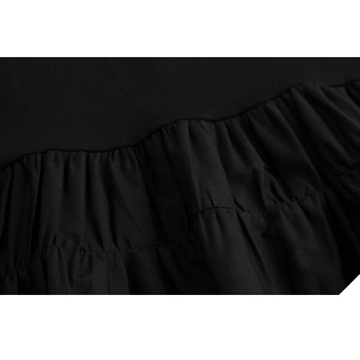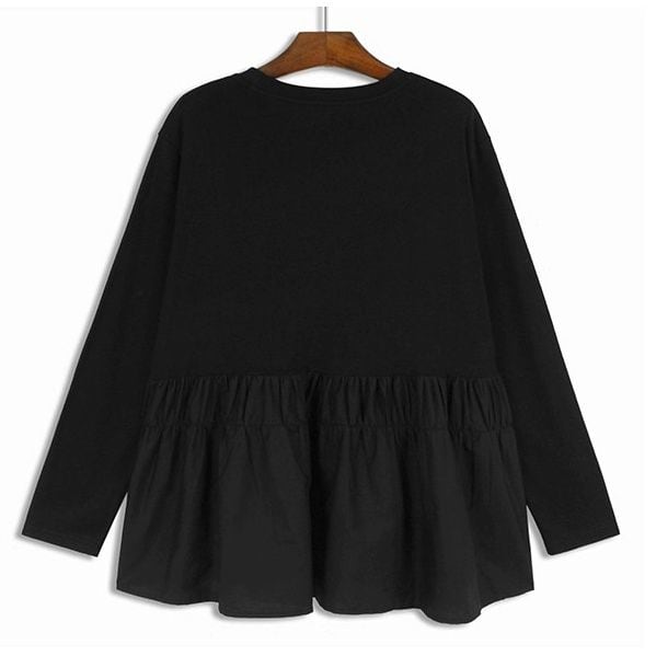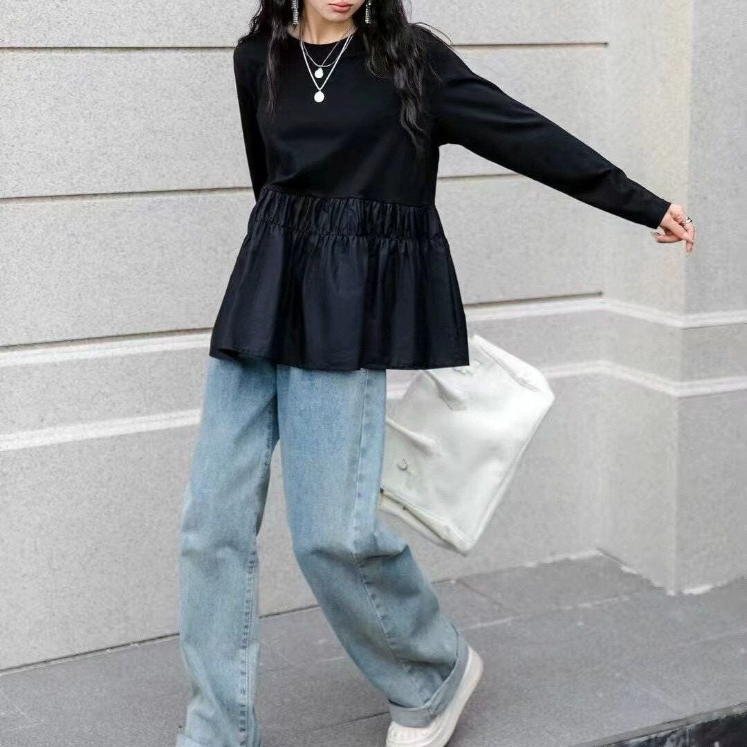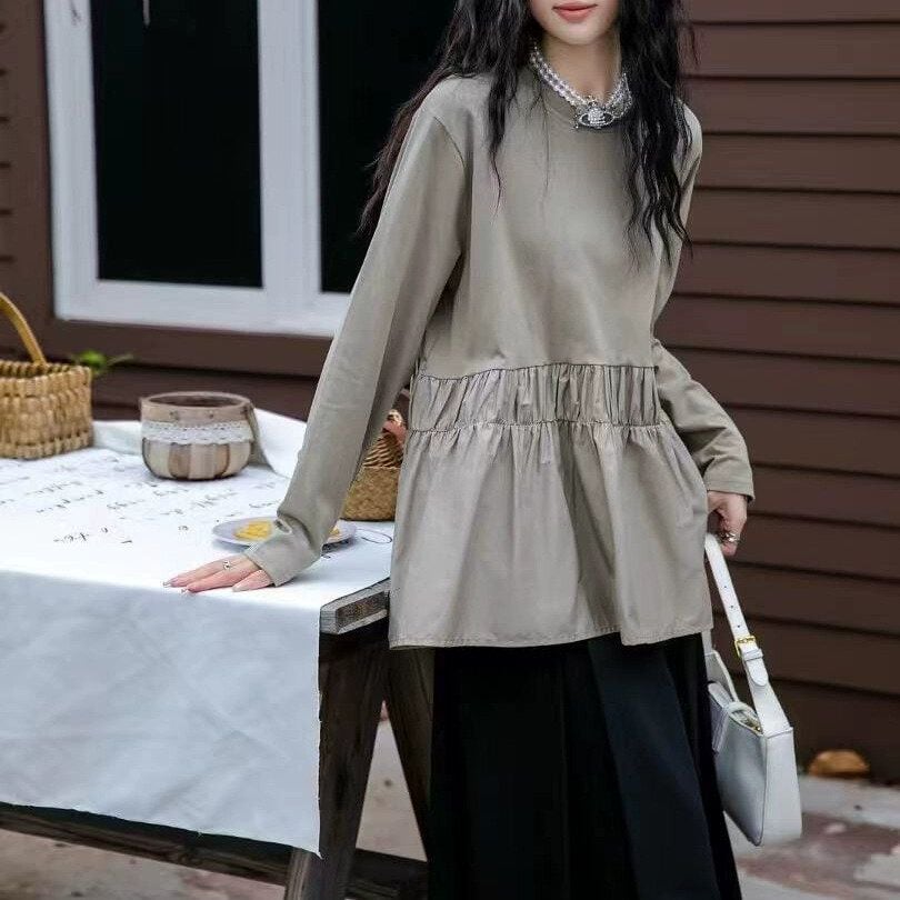 ティアードデザインの同色スティッチがキュートな、ラウンドネックのロングスリーブTシャツです。単色でコーディネートしやすい、ガーリーな印象のカジュアルアイテムです。ブラック・ホワイト・グリーングレーの3色から選べます。