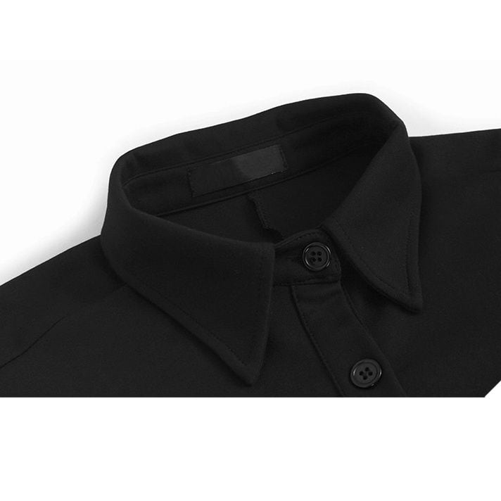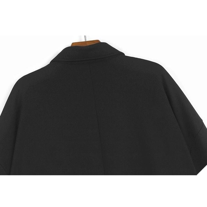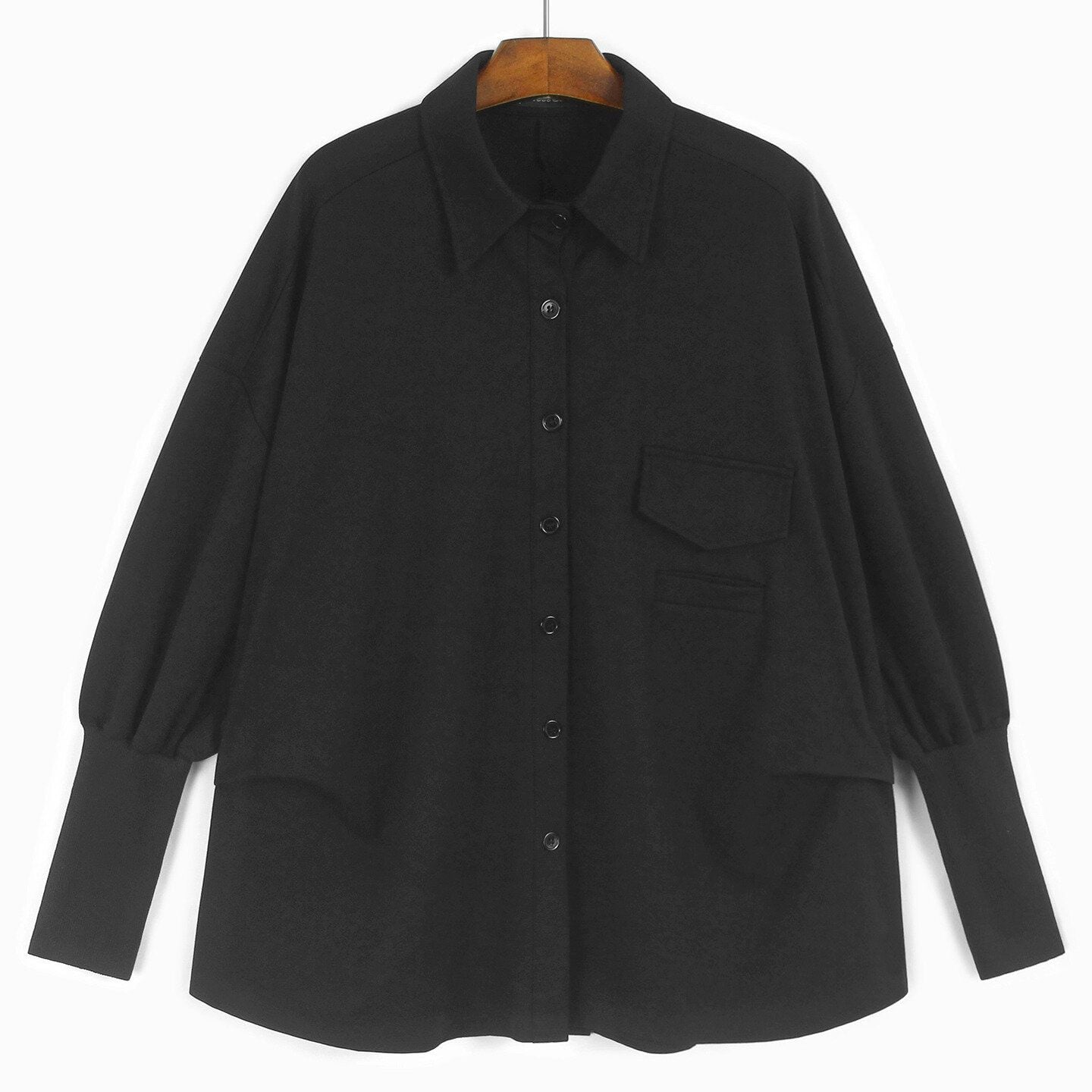 BLACK RIBBED CUFFS TUNIC SHIRT JACKET 1color M-14802