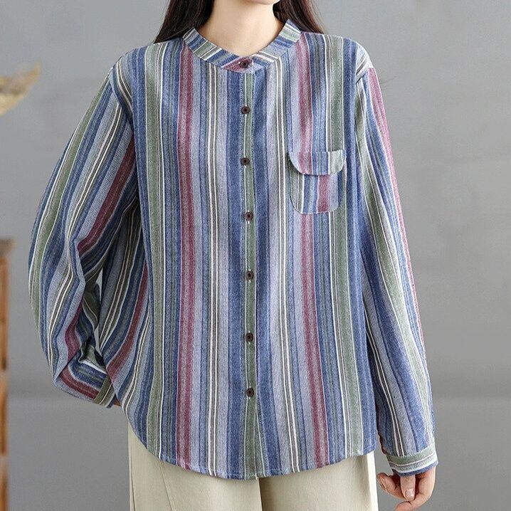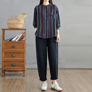 レトロな印象のデザインストライプがお洒落な、スタンドカラー・長袖・ラウンドカットのデザインシャツです。左胸の小さなデザインポケットがキュートな、落ち着いた色味で合わせやすいアイテムです。ライトブルーとネイビーの2色から選べます。 SIZE:※測り方によって2-3cmの差が生じる場合がございます。 【L】バスト118cm 肩幅45cm 袖丈55cm 着丈63cm 【XL】バスト122cm 肩幅46cm 袖丈56cm 着丈64cm COLOR:Navy、Blue 素材:ポリエステル、その他 モデル着用サイズ:L モデル情報:身長161cm 体重49kg STYLE CALENDAR:春〇 夏〇 秋◎ 冬〇 お届けについて こちらの商品は海外店舗より直接発送となる為、 ご決済から到着までは、多くの場合【10日-2週間前後】でお届けしております。 ※在庫状況や輸送の混雑により、4週間前後かかる場合がございます。 注意事項 ・商品在庫切れにより注文キャンセルとさせていただく恐れもございますので、予めご了承くださいませ。 ・仕入れ工場を変えることがあるため、記載サイズと若干異なる場合がございます。 ・商品の色味は、お手持ちのスマートフォンの画面によって実物と若干異なる場合がございます。 ・イメージ違いやサイズ交換等、お客さまご都合による交換・返品はご遠慮ください。 送料について 全国一律580円。ただし10,000円以上のご注文で送料無料となります。 お支払い方法について ・クレジットカード決済(VISA/Mastercard/JCB/アメリカン・エクスプレス/ Diners Club) ・コンビニ決済/Pay-easy ※前払いのお支払い方法 ・Pay ID あと払い(コンビニ払い、口座振替) ※あと払いのお支払い方法 ・キャリア決済(d払い/au PAY(auかんたん決済)/ソフトバンク・ワイモバイルまとめて支払い) 管理番号:M-14818