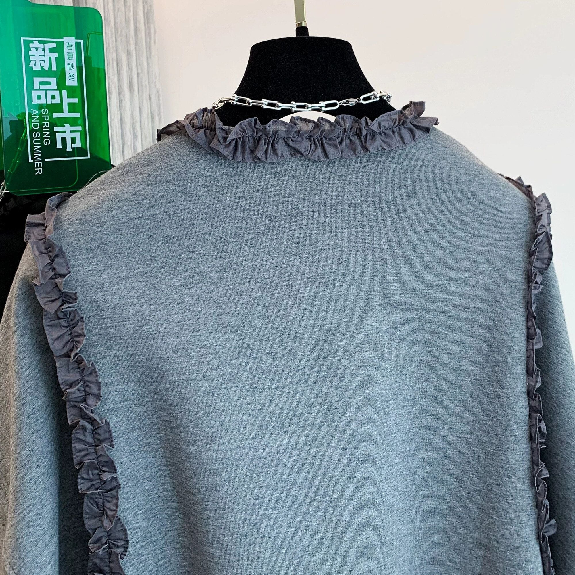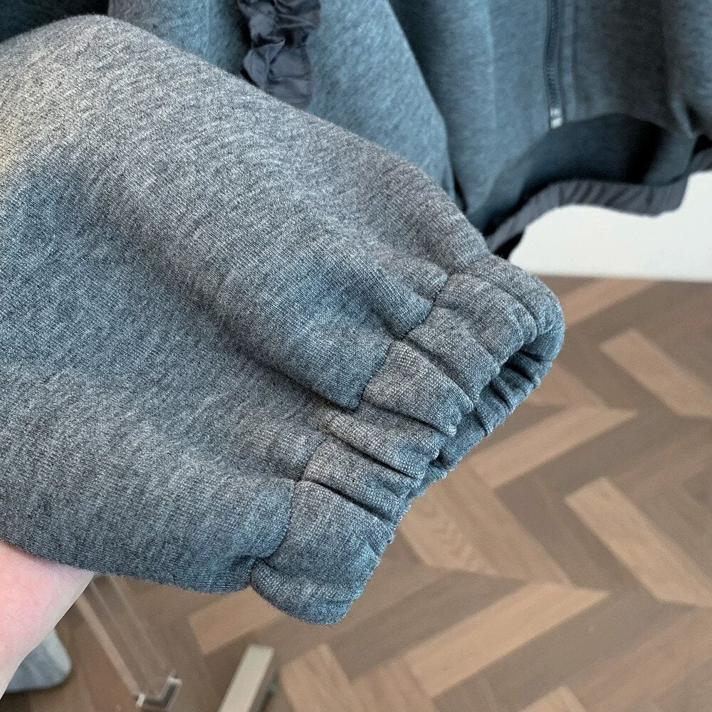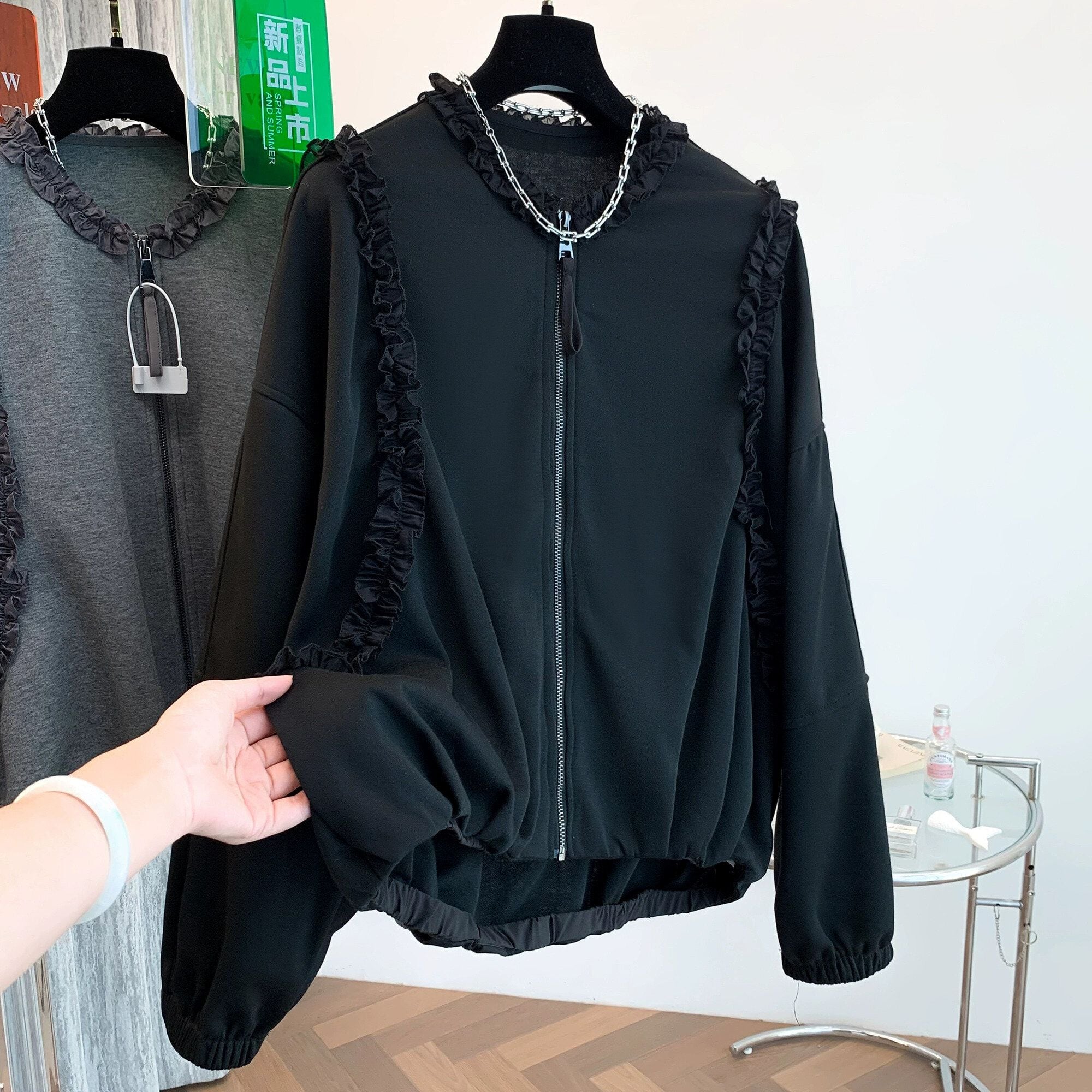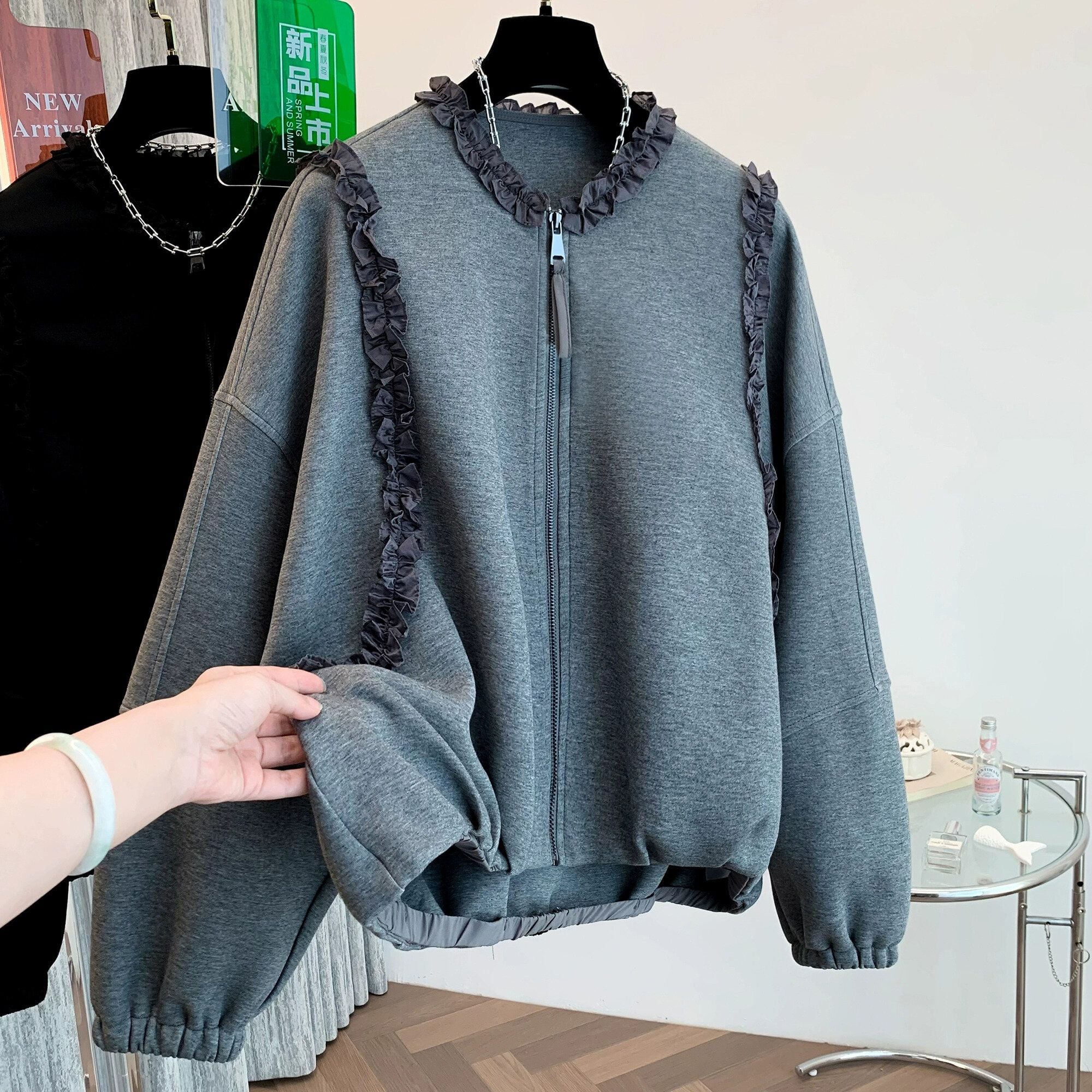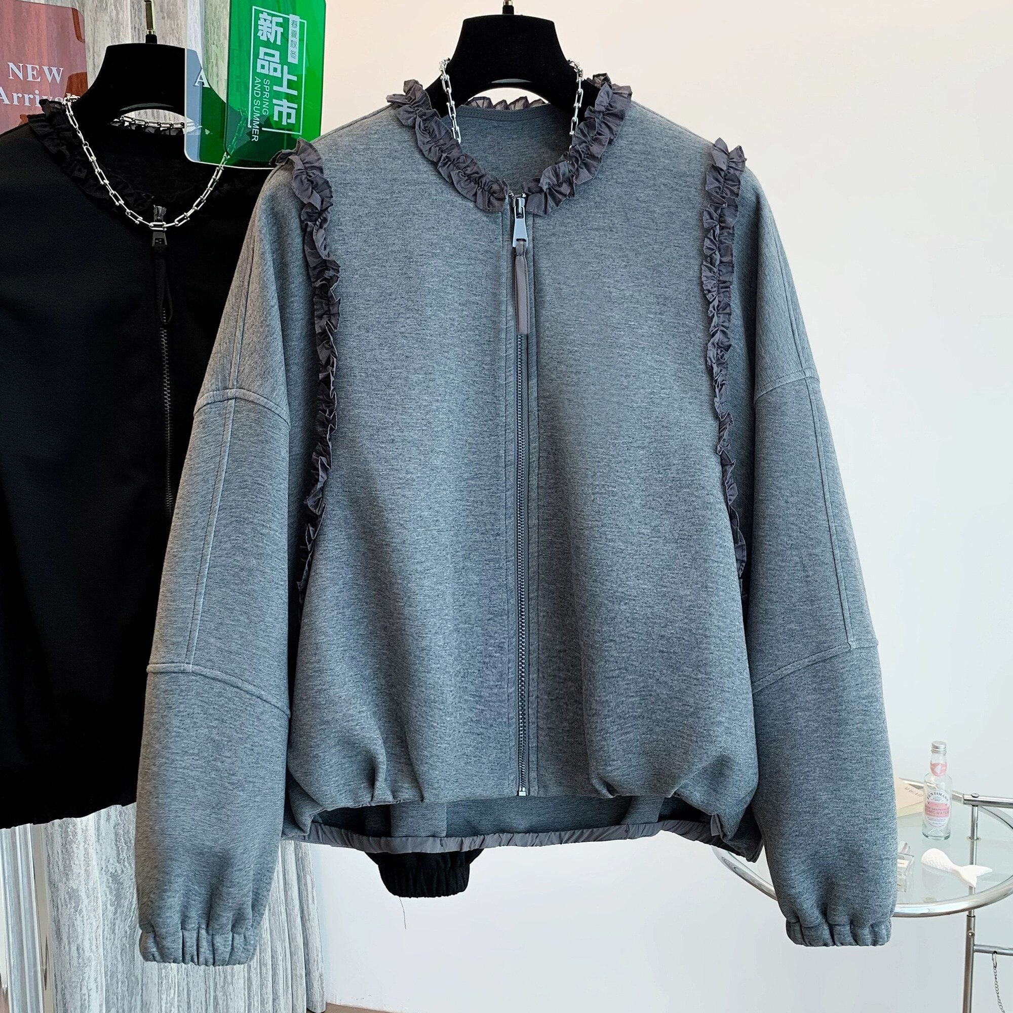 ネック周りやショルダーからサイドに伸びるフリルリボンのラインがキュートな、ラウンドネック・長袖・ハイローヘムのフルジップ・スウェットジャケットです。やや絞られた袖口や裾のシルエットがお洒落な、単色で合わせやすいカジュアルアイテムです。ブラックとグレーの2色から選べます。 SIZE:※測り方によって2-3cmの差が生じる場合がございます。 【M】バスト142cm 肩幅54cm 袖丈46cm 着丈58cm 【L】バスト146cm 肩幅55cm 袖丈47cm 着丈59cm 【XL】バスト150cm 肩幅56cm 袖丈48cm 着丈60cm 【2XL】バスト154cm 肩幅57cm 袖丈49cm 着丈61cm COLOR:Gray、Black 素材:ポリエステル、その他 STYLE CALENDAR:春〇 夏〇 秋◎ 冬〇 お届けについて こちらの商品は海外店舗より直接発送となる為、 ご決済から到着までは、多くの場合【10日-2週間前後】でお届けしております。 ※在庫状況や輸送の混雑により、4週間前後かかる場合がございます。 注意事項 ・商品在庫切れにより注文キャンセルとさせていただく恐れもございますので、予めご了承くださいませ。 ・仕入れ工場を変えることがあるため、記載サイズと若干異なる場合がございます。 ・商品の色味は、お手持ちのスマートフォンの画面によって実物と若干異なる場合がございます。 ・イメージ違いやサイズ交換等、お客さまご都合による交換・返品はご遠慮ください。 送料について 全国一律580円。ただし10,000円以上のご注文で送料無料となります。 お支払い方法について ・クレジットカード決済(VISA/Mastercard/JCB/アメリカン・エクスプレス/ Diners Club) ・コンビニ決済/Pay-easy ※前払いのお支払い方法 ・Pay ID あと払い(コンビニ払い、口座振替) ※あと払いのお支払い方法 ・キャリア決済(d払い/au PAY(auかんたん決済)/ソフトバンク・ワイモバイルまとめて支払い) 管理番号:M-14819