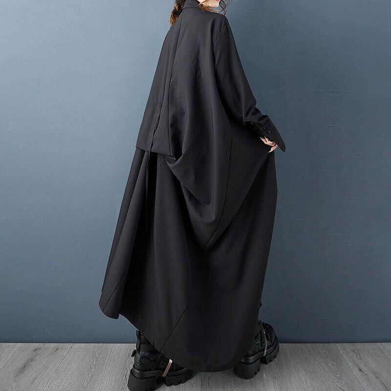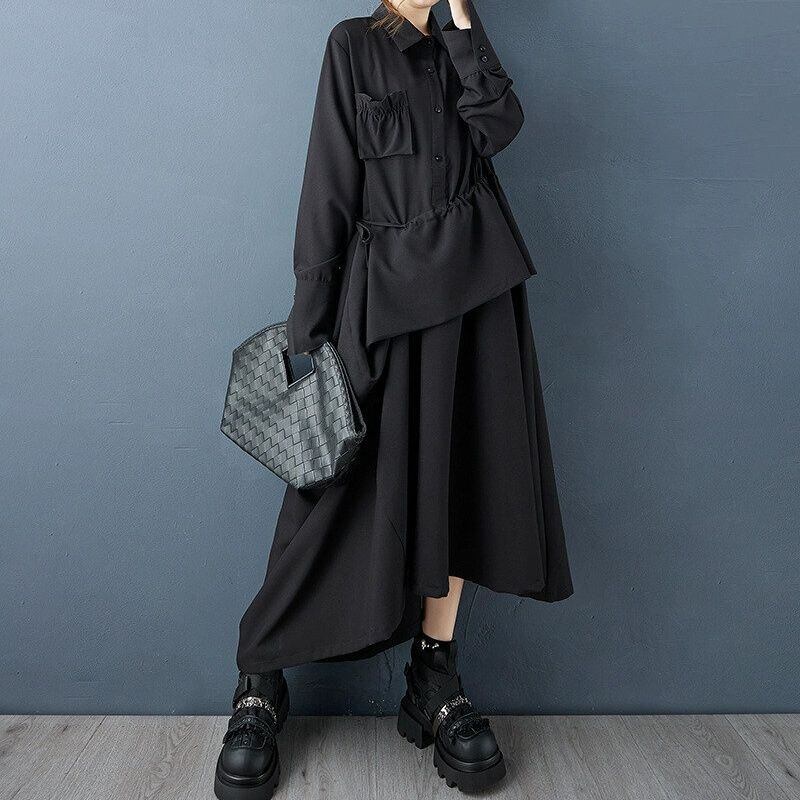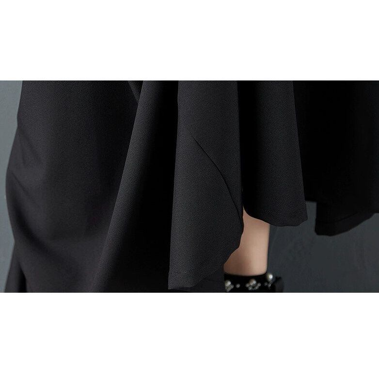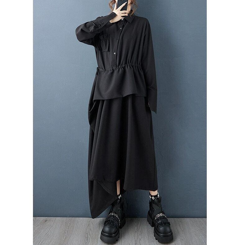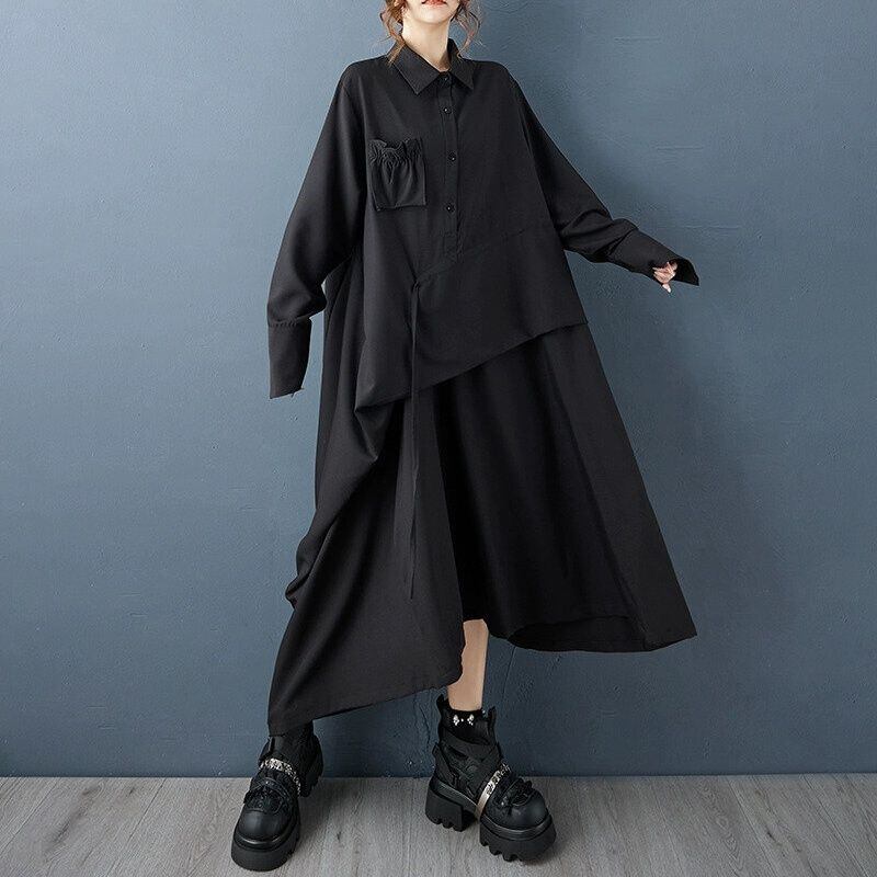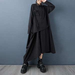 BLACK ASYMMETRICK DESIGN LONG SHIRT DRESS 1color M-14827