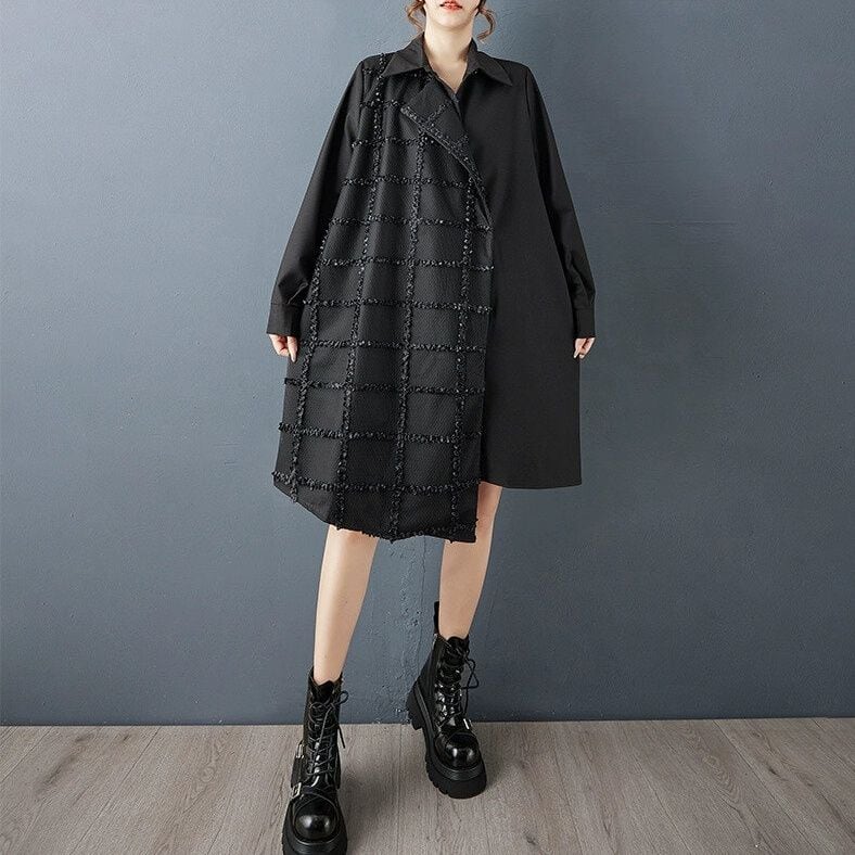 BLACK ASYMMETRIC DESIGN MINI SHIRT DRESS 1color M-14831