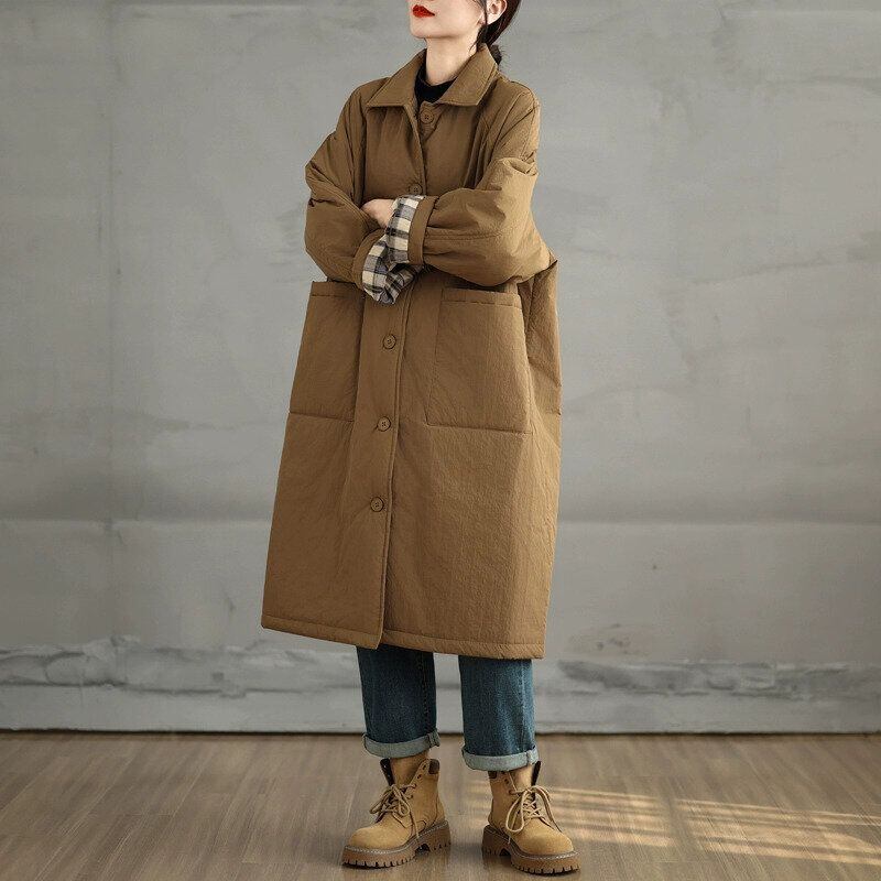チェック柄のライニングがお洒落な、ポロ襟・長袖・ミドル丈の中綿コートです。単色のシンプルなシルエットで何にでも合わせやすい、ボタンダウンスタイルのカジュアルアイテムです。色はブラック・カーキ・コーヒーの3色から選べます。 SIZE:※測り方によって2-3cmの差が生じる場合がございます。 【L】バスト128cm 裄丈73cm 着丈104cm 【XL】バスト132cm 裄丈74cm 着丈105cm 【2XL】バスト136cm 裄丈75cm 着丈106cm COLOR:Black、Khaki、Brown 素材:ポリエステル、その他 モデル着用サイズ:L モデル情報:身長161cm 体重49kg STYLE CALENDAR:春〇 夏△ 秋〇 冬◎ お届けについて こちらの商品は海外店舗より直接発送となる為、 ご決済から到着までは、多くの場合【10日-2週間前後】でお届けしております。 ※在庫状況や輸送の混雑により、4週間前後かかる場合がございます。 注意事項 ・商品在庫切れにより注文キャンセルとさせていただく恐れもございますので、予めご了承くださいませ。 ・仕入れ工場を変えることがあるため、記載サイズと若干異なる場合がございます。 ・商品の色味は、お手持ちのスマートフォンの画面によって実物と若干異なる場合がございます。 ・イメージ違いやサイズ交換等、お客さまご都合による交換・返品はご遠慮ください。 送料について 全国一律580円。ただし10,000円以上のご注文で送料無料となります。 お支払い方法について ・クレジットカード決済(VISA/Mastercard/JCB/アメリカン・エクスプレス/ Diners Club) ・コンビニ決済/Pay-easy ※前払いのお支払い方法 ・Pay ID あと払い(コンビニ払い、口座振替) ※あと払いのお支払い方法 ・キャリア決済(d払い/au PAY(auかんたん決済)/ソフトバンク・ワイモバイルまとめて支払い) 管理番号:M-14838
