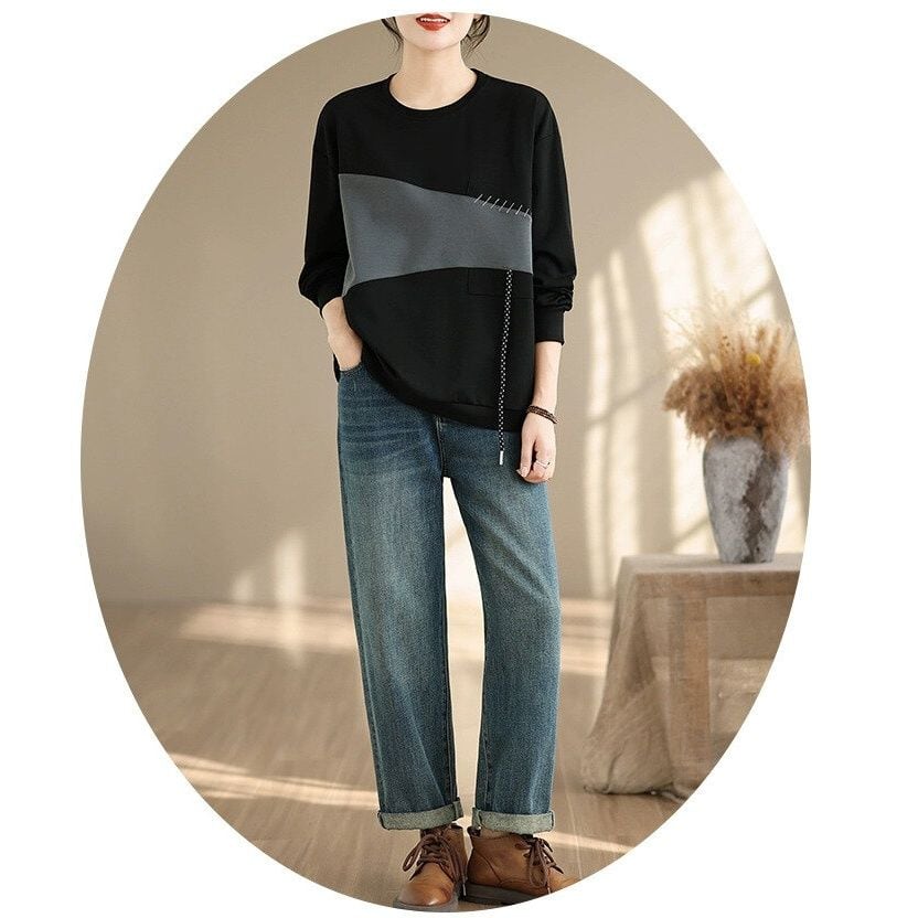 CONTRAST STITCH DESIGN ROUND NECK SWEAT SHIRT 2colors M-14843