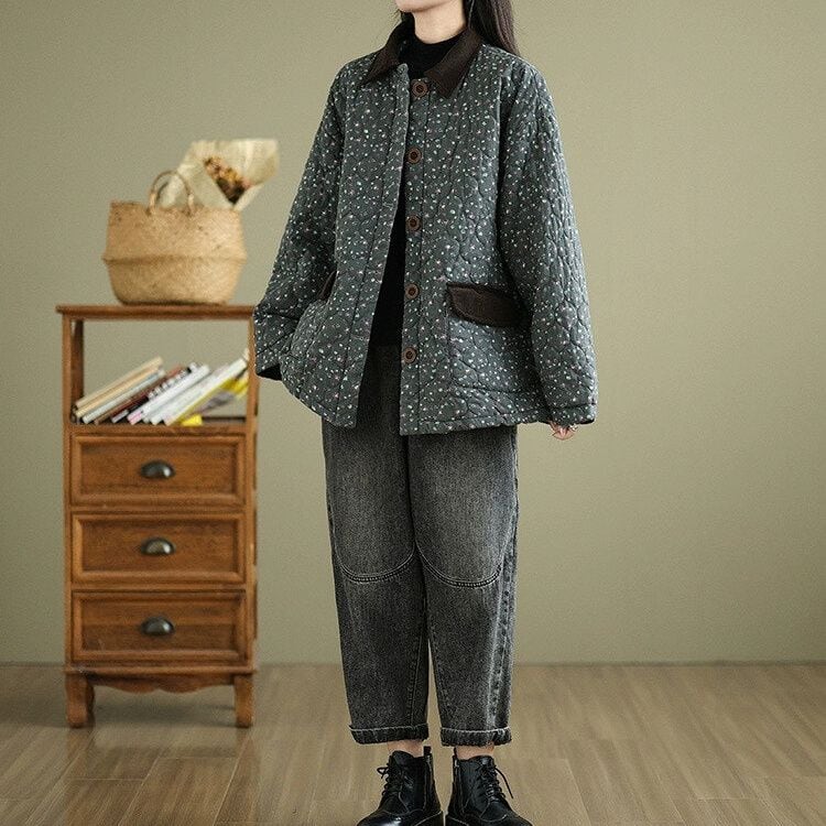 グレーの小花柄の中綿素材でできた、ポロ襟・長袖・カジュアルジャケットです。襟・袖口・ポケットのフラップにコーデュロイ素材を使ったデザインがお洒落な、軽くて暖かいアイテムです。 SIZE:※測り方によって2-3cmの差が生じる場合がございます。 【M】バスト126m 肩幅56cm 袖丈47cm 着丈66cm 【L】バスト130cm 肩幅57cm 袖丈48cm 着丈67cm 【XL】バスト134cm 肩幅58cm 袖丈49cm 着丈68cm 【2XL】バスト138cm 肩幅59cm 袖丈50cm 着丈69cm 【3XL】バスト142cm 肩幅60cm 袖丈51cm 着丈70cm COLOR:Design 素材:ポリエステル、その他 モデル着用サイズ:L モデル情報:身長161cm 体重49kg STYLE CALENDAR:春〇 夏△ 秋〇 冬◎ お届けについて こちらの商品は海外店舗より直接発送となる為、 ご決済から到着までは、多くの場合【10日-2週間前後】でお届けしております。 ※在庫状況や輸送の混雑により、4週間前後かかる場合がございます。 注意事項 ・商品在庫切れにより注文キャンセルとさせていただく恐れもございますので、予めご了承くださいませ。 ・仕入れ工場を変えることがあるため、記載サイズと若干異なる場合がございます。 ・商品の色味は、お手持ちのスマートフォンの画面によって実物と若干異なる場合がございます。 ・イメージ違いやサイズ交換等、お客さまご都合による交換・返品はご遠慮ください。 送料について 全国一律580円。ただし10,000円以上のご注文で送料無料となります。 お支払い方法について ・クレジットカード決済(VISA/Mastercard/JCB/アメリカン・エクスプレス/ Diners Club) ・コンビニ決済/Pay-easy ※前払いのお支払い方法 ・Pay ID あと払い(コンビニ払い、口座振替) ※あと払いのお支払い方法 ・キャリア決済(d払い/au PAY(auかんたん決済)/ソフトバンク・ワイモバイルまとめて支払い) 管理番号:M-14845