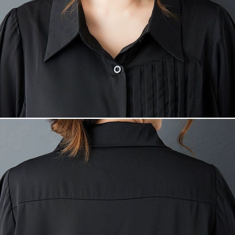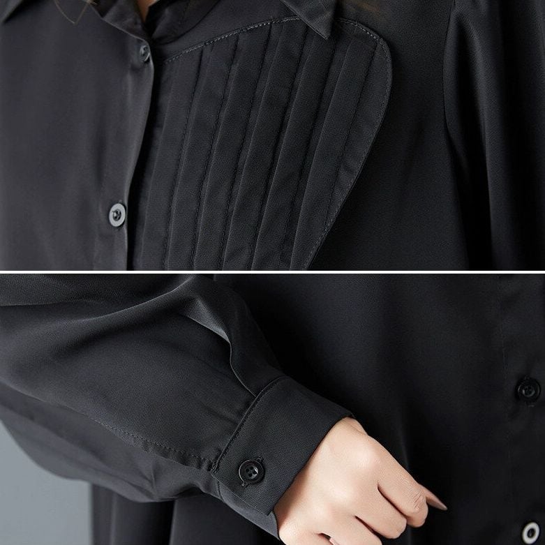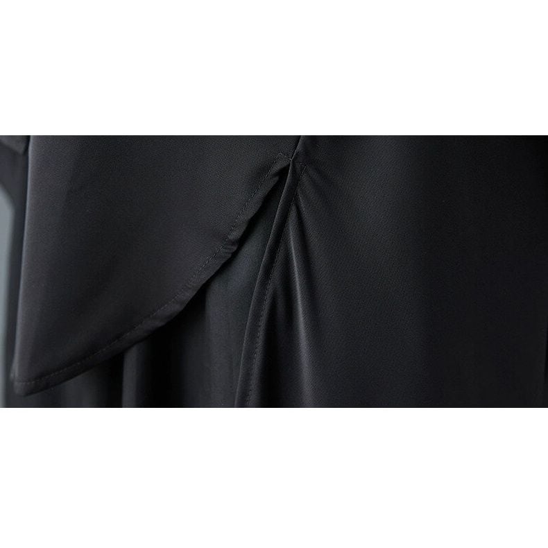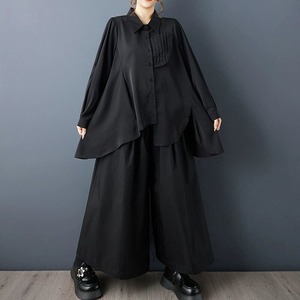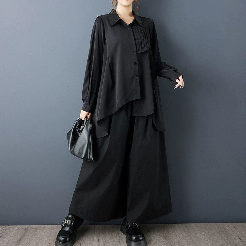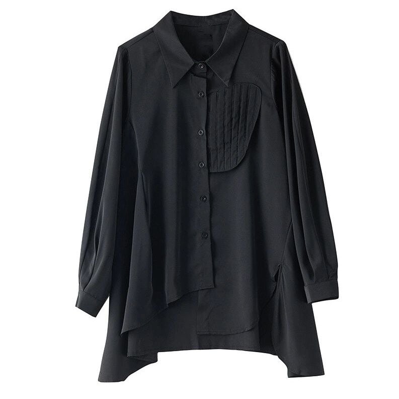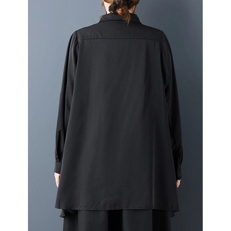 BLACK ASYSMMETRIC A-LINE TUNIC SHIRT 1color M-14846