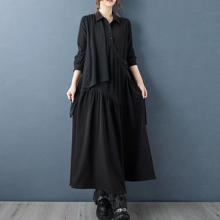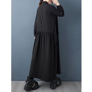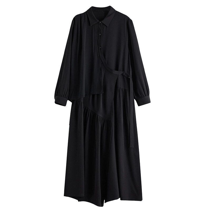 BLACK ASYMMETRIC DESIGN A-LINE LONG SHIRT DRESS 1color M-14849