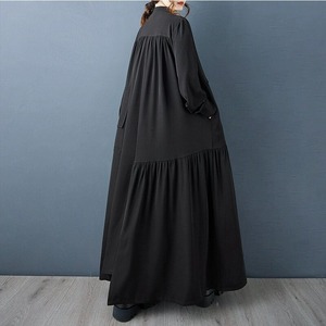 BLACK ASYMMETRIC A-LINE MAXI SHIRT DRESS 1color M-14854