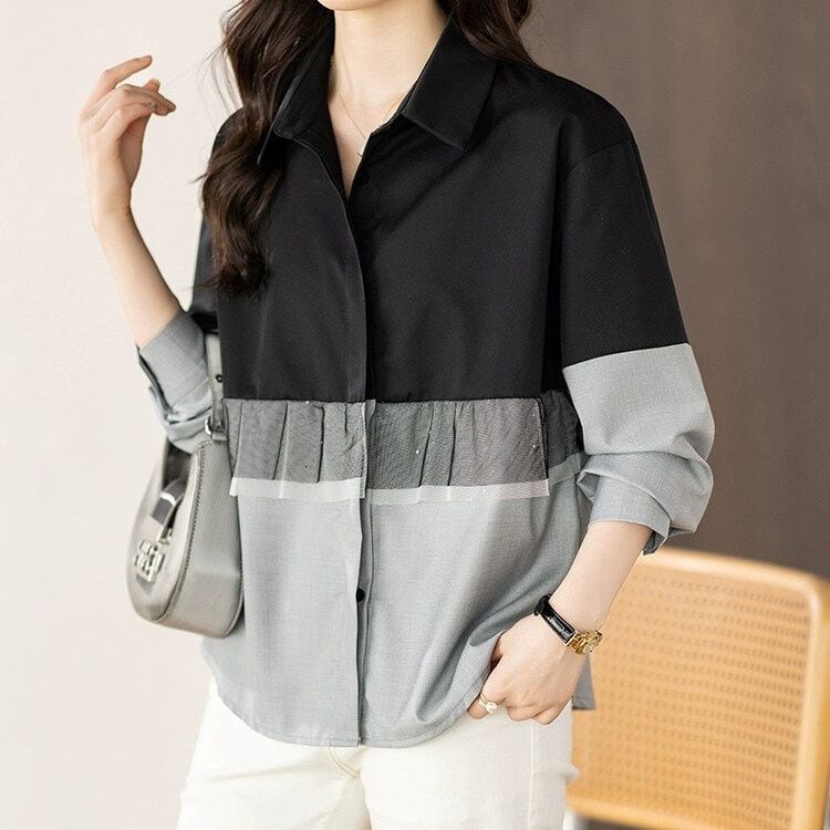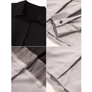 ブラックとグレーのコントラストにメッシュのフリルライン飾りがお洒落な、ポロ襟・長袖・ラウンドカットのデザインシャツです。丈が短めのシルエットが、クールで都会的な雰囲気のアイテムです。 SIZE:※測り方によって2-3cmの差が生じる場合がございます。 【S】バスト98cm 肩幅45cm 袖丈51cm 袖幅21cm ウエスト98cm 着丈62cm 【M】バスト102cm 肩幅46cm 袖丈52cm 袖幅22cm ウエスト102cm 着丈63cm 【L】バスト106cm 肩幅47cm 袖丈53cm 袖幅23cm ウエスト106cm 着丈64cm 【XL】バスト110cm 肩幅48cm 袖丈54cm 袖幅24cm ウエスト110cm 着丈65cm 【2XL】バスト114cm 肩幅49cm 袖丈55cm 袖幅25cm ウエスト114cm 着丈66cm 【3XL】バスト118cm 肩幅50cm 袖丈56cm 袖幅26cm ウエスト118cm 着丈67cm 【4XL】バスト122cm 肩幅51cm 袖丈57cm 袖幅27cm ウエスト122cm 着丈68cm COLOR:Black 素材:ポリエステル、その他 モデル情報:身長165cm 体重45kg STYLE CALENDAR:春◎ 夏〇 秋〇 冬〇 お届けについて こちらの商品は海外店舗より直接発送となる為、 ご決済から到着までは、多くの場合【10日-2週間前後】でお届けしております。 ※在庫状況や輸送の混雑により、4週間前後かかる場合がございます。 注意事項 ・商品在庫切れにより注文キャンセルとさせていただく恐れもございますので、予めご了承くださいませ。 ・仕入れ工場を変えることがあるため、記載サイズと若干異なる場合がございます。 ・商品の色味は、お手持ちのスマートフォンの画面によって実物と若干異なる場合がございます。 ・イメージ違いやサイズ交換等、お客さまご都合による交換・返品はご遠慮ください。 送料について 全国一律580円。ただし10,000円以上のご注文で送料無料となります。 お支払い方法について ・クレジットカード決済(VISA/Mastercard/JCB/アメリカン・エクスプレス/ Diners Club) ・コンビニ決済/Pay-easy ※前払いのお支払い方法 ・Pay ID あと払い(コンビニ払い、口座振替) ※あと払いのお支払い方法 ・キャリア決済(d払い/au PAY(auかんたん決済)/ソフトバンク・ワイモバイルまとめて支払い) 管理番号:M-14855