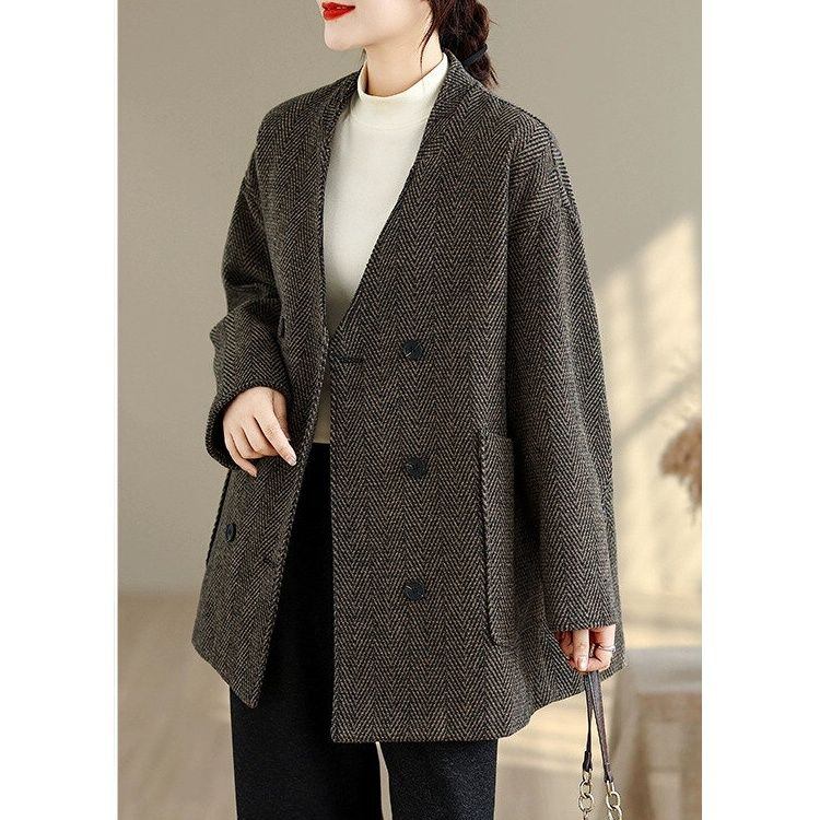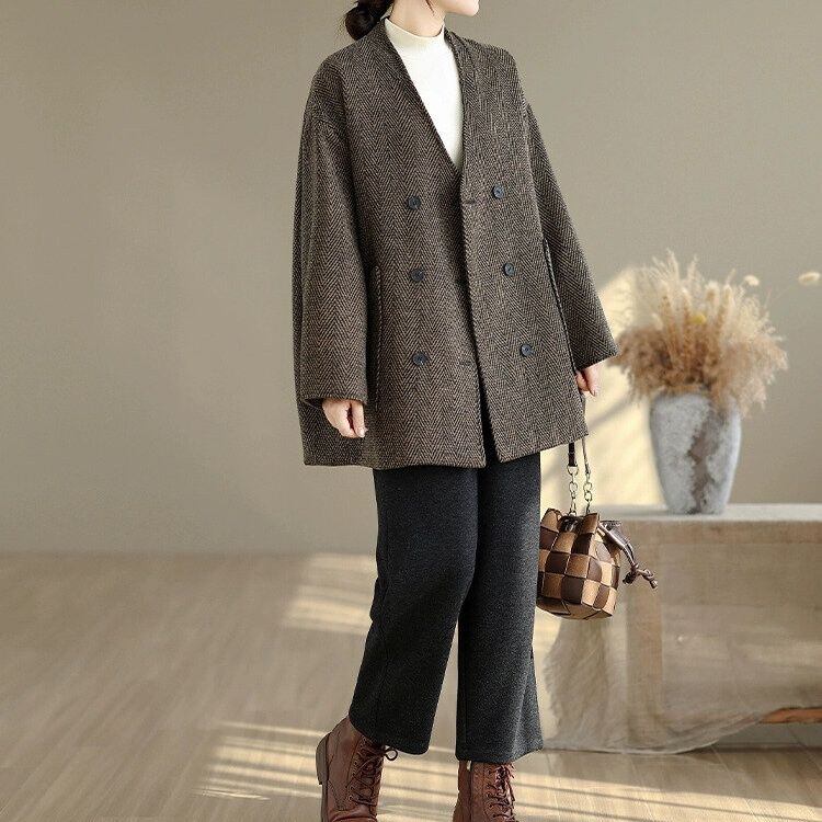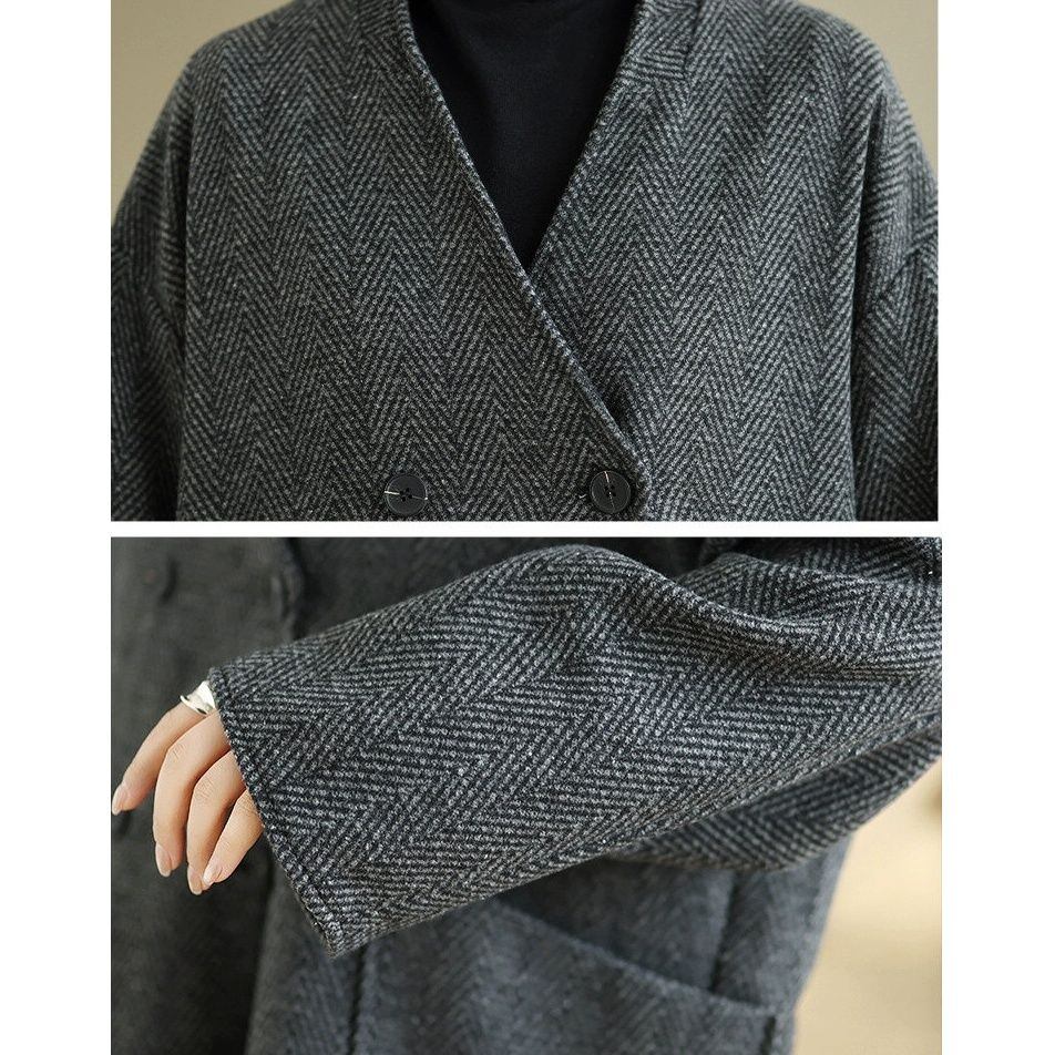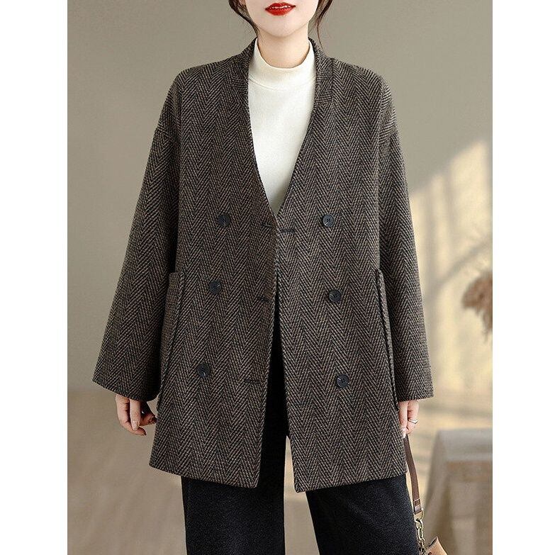 レトロなツイード素材がお洒落な、襟なしVネック・長袖・ダブルブレストのジャケットコートです。ゆったりとしたシルエットと落ち着いた色味で合わせやすい、オンでもオフでも使えるアイテムです。色は2色から選べます。 SIZE:※測り方によって2-3cmの差が生じる場合がございます。 【L】バスト128cm 肩幅58cm 袖丈62cm 着丈78cm 【XL】バスト133cm 肩幅59cm 袖丈63cm 着丈79cm 【2XL】バスト138cm 肩幅60cm 袖丈64cm 着丈80cm COLOR:Gray、Brown 素材:ポリエステル、その他 モデル着用サイズ:L モデル情報:身長161cm 体重49kg STYLE CALENDAR:春〇 夏△ 秋◎ 冬◎ お届けについて こちらの商品は海外店舗より直接発送となる為、 ご決済から到着までは、多くの場合【10日-2週間前後】でお届けしております。 ※在庫状況や輸送の混雑により、4週間前後かかる場合がございます。 注意事項 ・商品在庫切れにより注文キャンセルとさせていただく恐れもございますので、予めご了承くださいませ。 ・仕入れ工場を変えることがあるため、記載サイズと若干異なる場合がございます。 ・商品の色味は、お手持ちのスマートフォンの画面によって実物と若干異なる場合がございます。 ・イメージ違いやサイズ交換等、お客さまご都合による交換・返品はご遠慮ください。 送料について 全国一律580円。ただし10,000円以上のご注文で送料無料となります。 お支払い方法について ・クレジットカード決済(VISA/Mastercard/JCB/アメリカン・エクスプレス/ Diners Club) ・コンビニ決済/Pay-easy ※前払いのお支払い方法 ・Pay ID あと払い(コンビニ払い、口座振替) ※あと払いのお支払い方法 ・キャリア決済(d払い/au PAY(auかんたん決済)/ソフトバンク・ワイモバイルまとめて支払い) 管理番号:M-14857